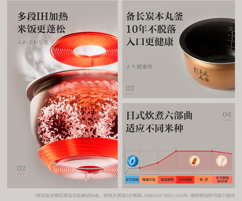 Toshiba staatliche Subvention neues Produkt Xiaobailu Pro Vakuum-Reiskocher importierte Binchotan-Holzkohle-Auskleidung mehrstufige IH-Heizung 3-6 Personen 4 Liter Energieeffizienz der ersten Stufe Xiaobai Pro Reiskocher 4L