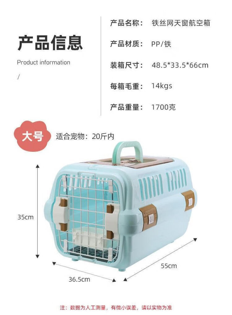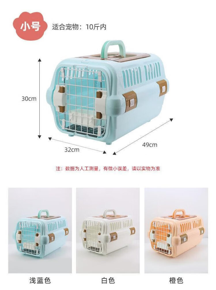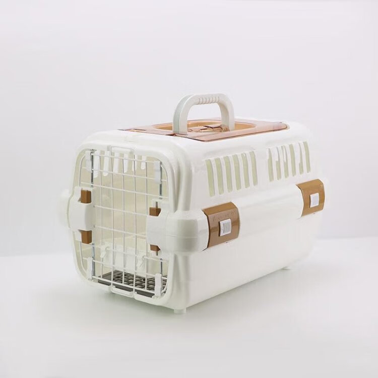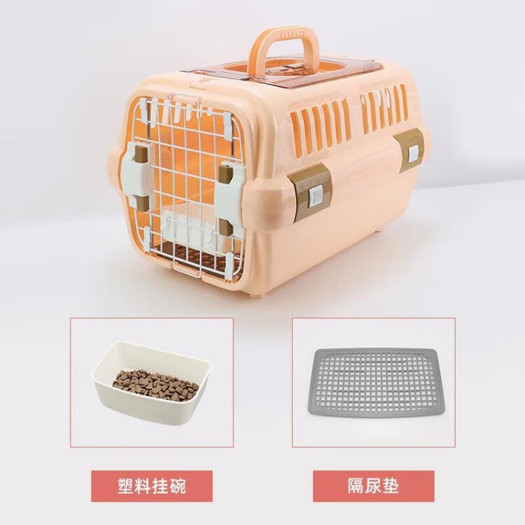 PINQUROME宠物新款猫咪航空箱外出便携通用猫笼可拆洗猫狗托运运输箱猫包 小号白色+挂碗+隔尿垫