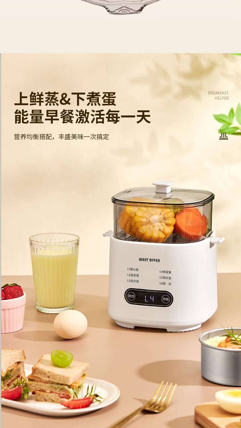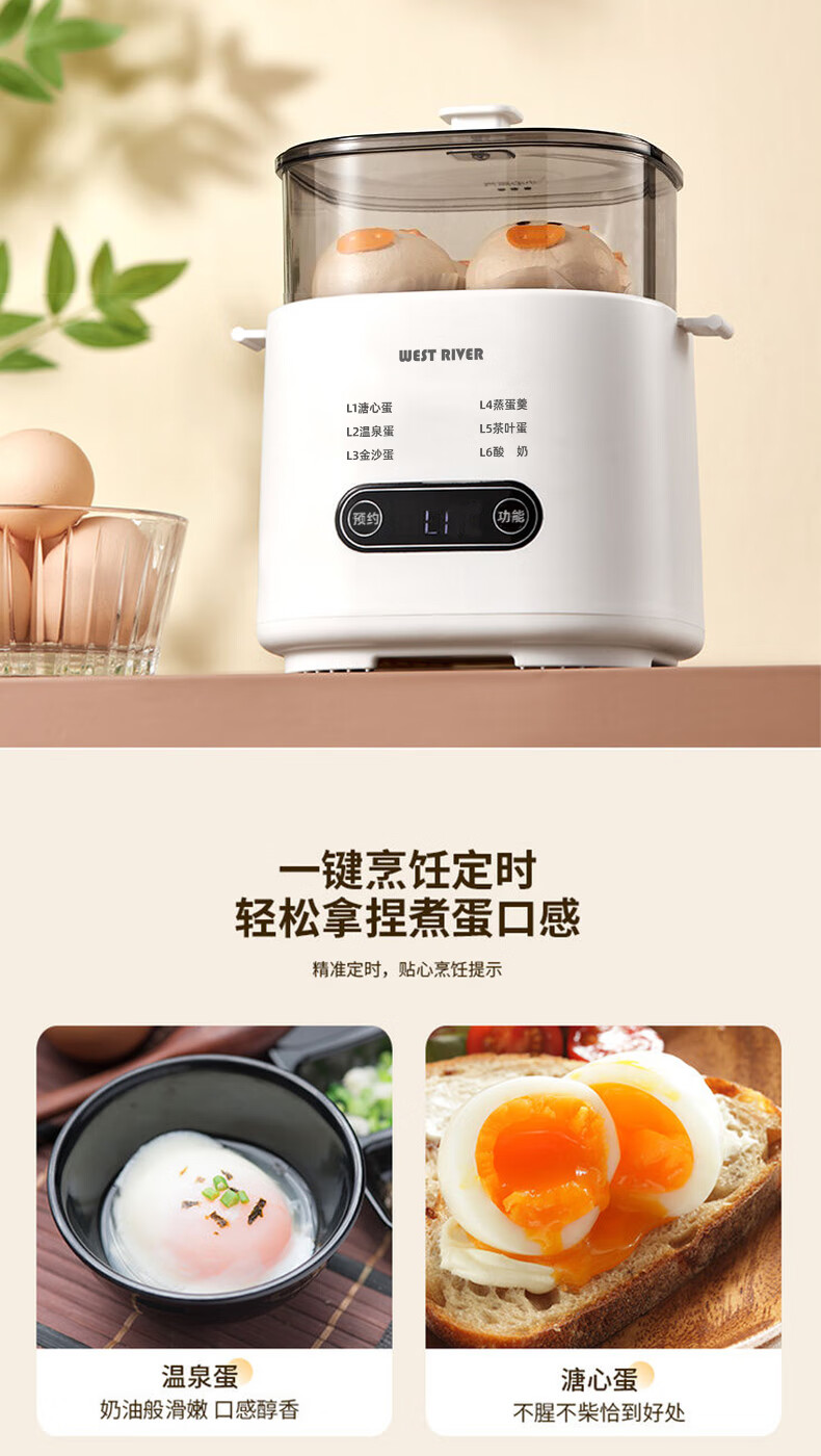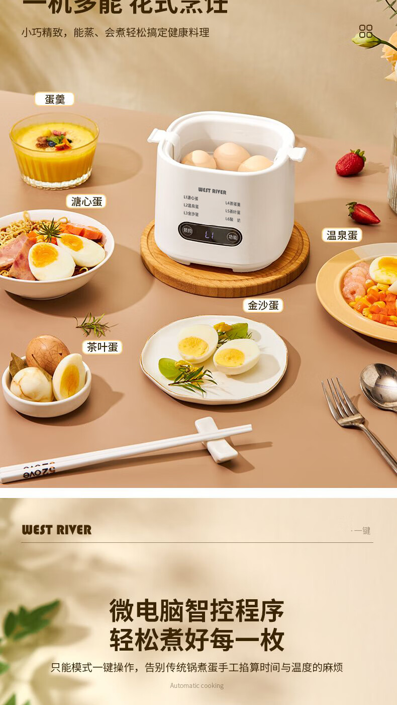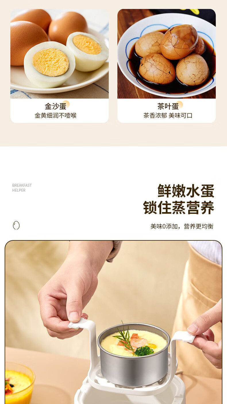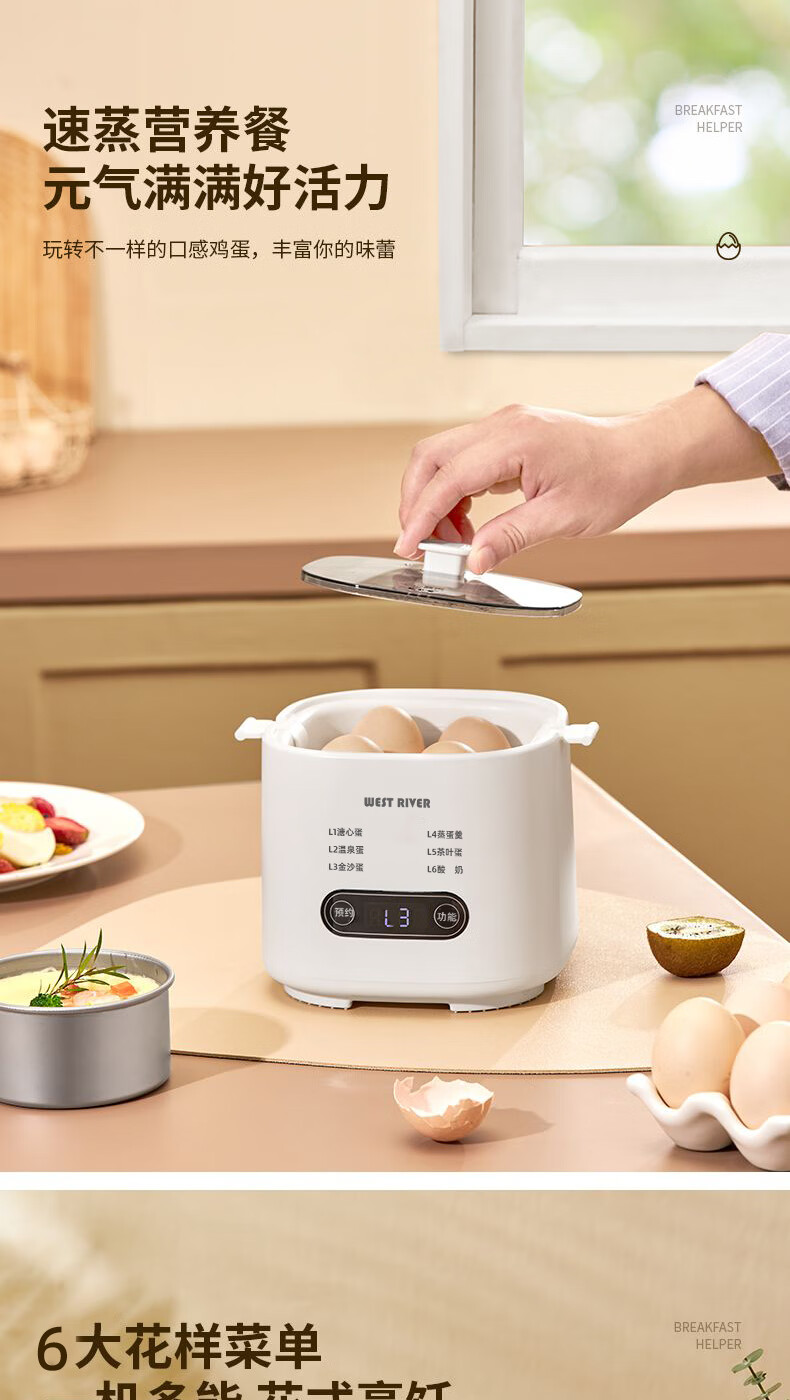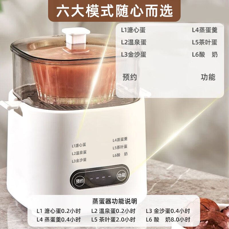 Egg cooker, steamer, electric steamer, small stewing and steaming all-in-one small steamer, omelette pot, small steamed egg artifact, household dormitory electric frying pan, small appliance, small electric cooker, double layer, with steamed egg rack + stainless steel custard bowl, 6 major functions