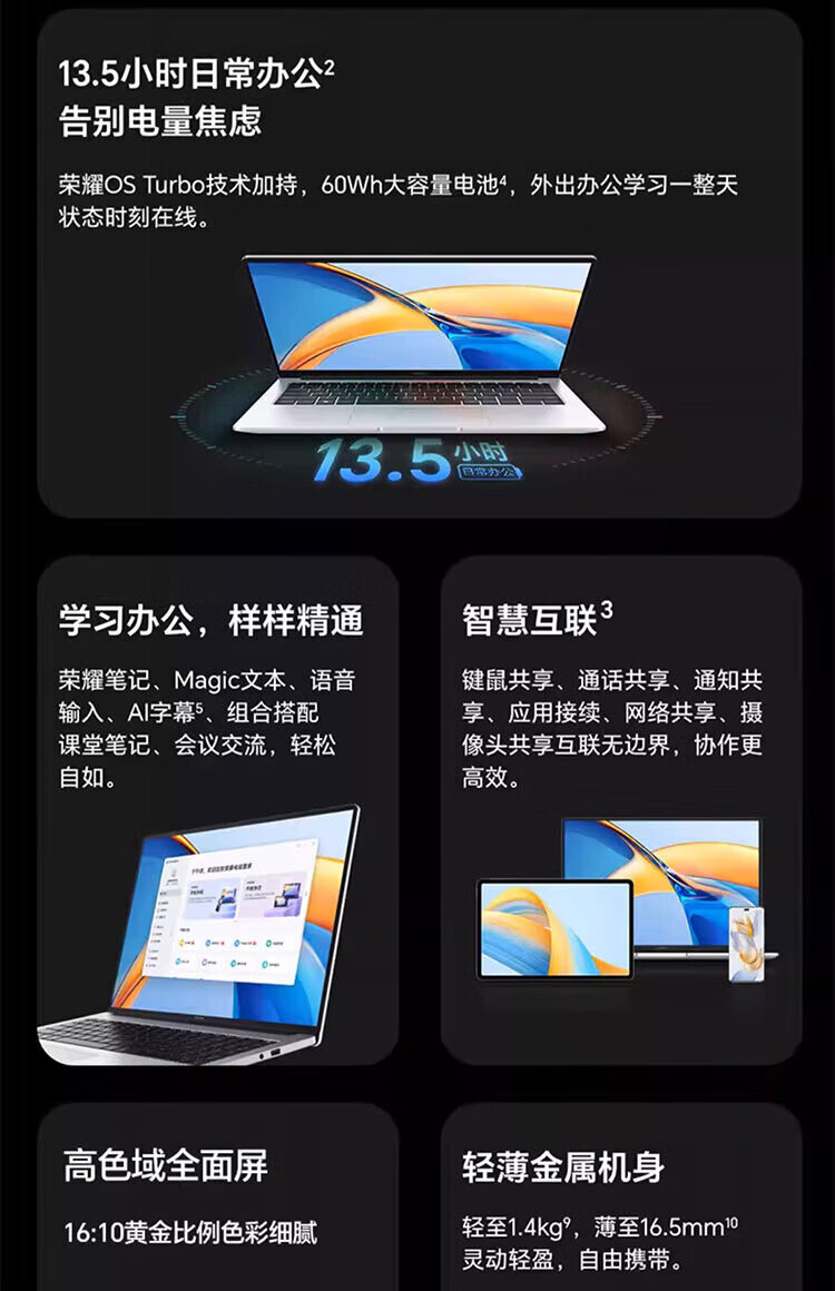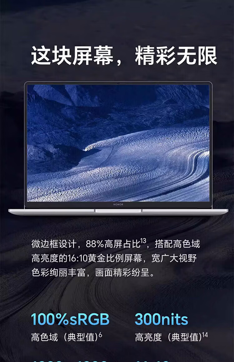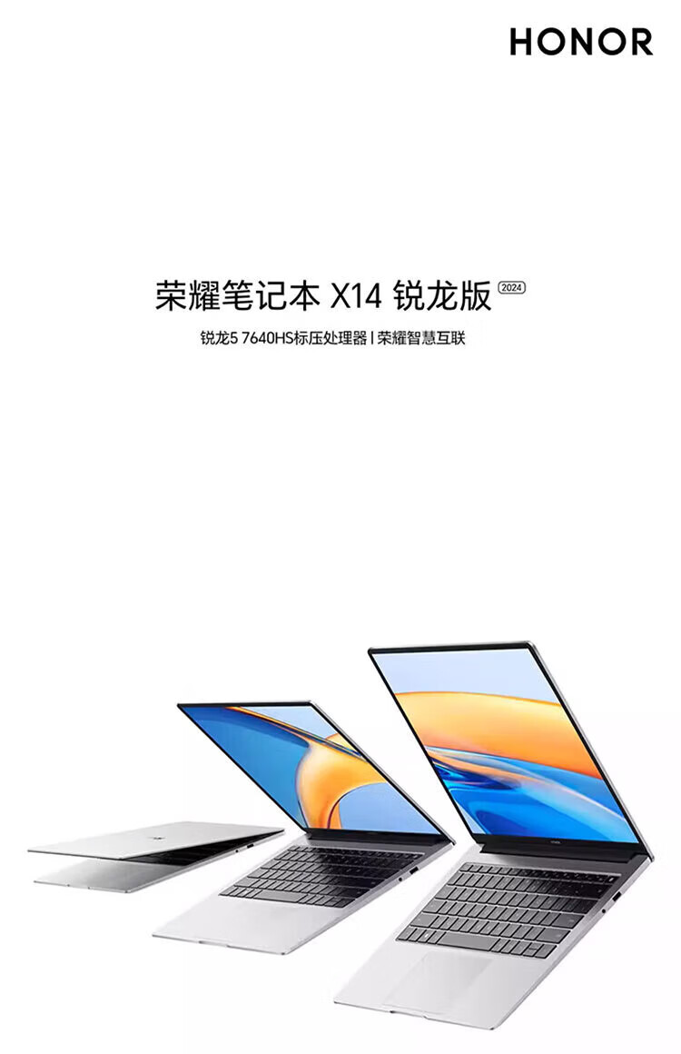 HONOR laptop x14 Ryzen version AI all-round notebook high performance R5-7640HS business portable office thin and light notebook high color gamut screen student home computer 16G+1T | Store manager customized 14 inches 100%RGB