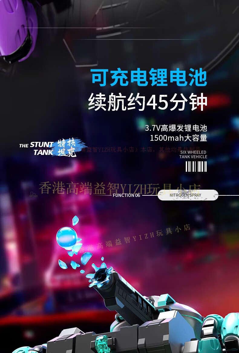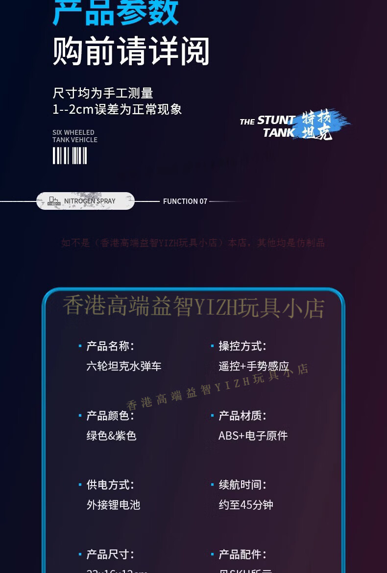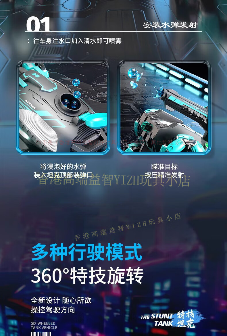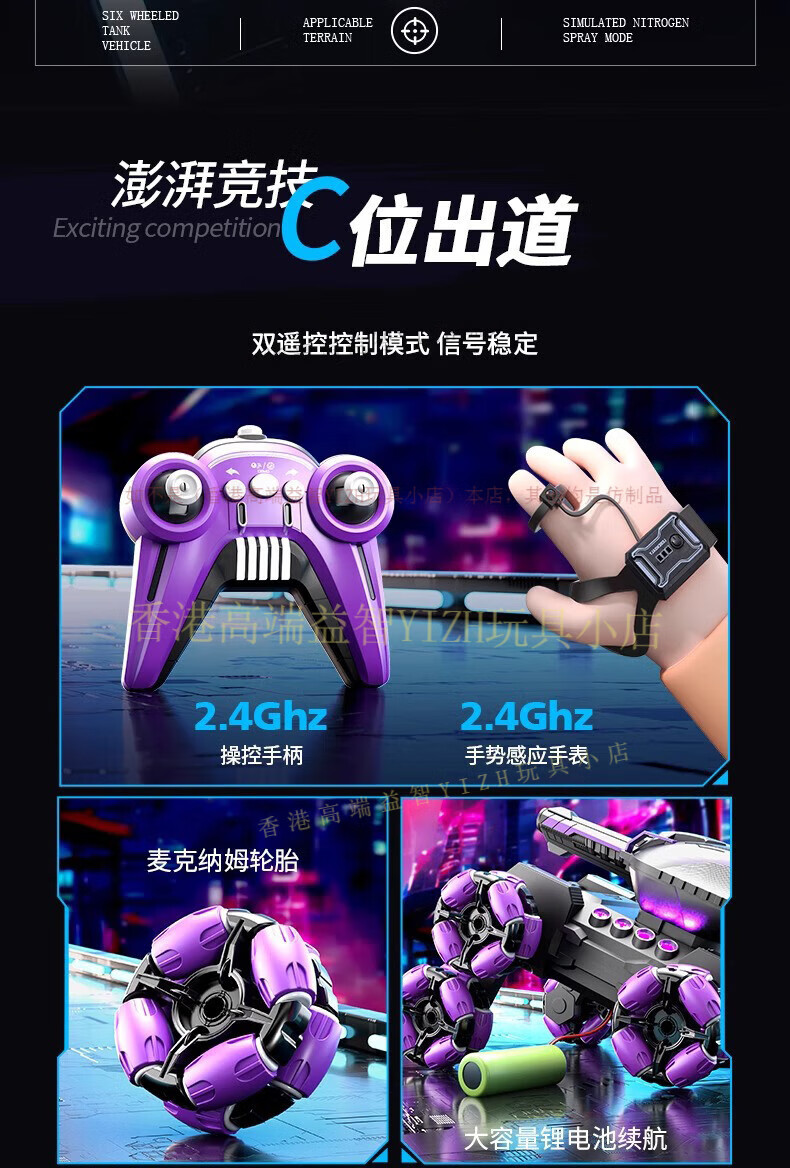 HTI children's gesture sensor six-wheel remote control tank car toy can fire water bombs four-wheel drive off-road vehicle boy dual remote control/handle + watch dark green