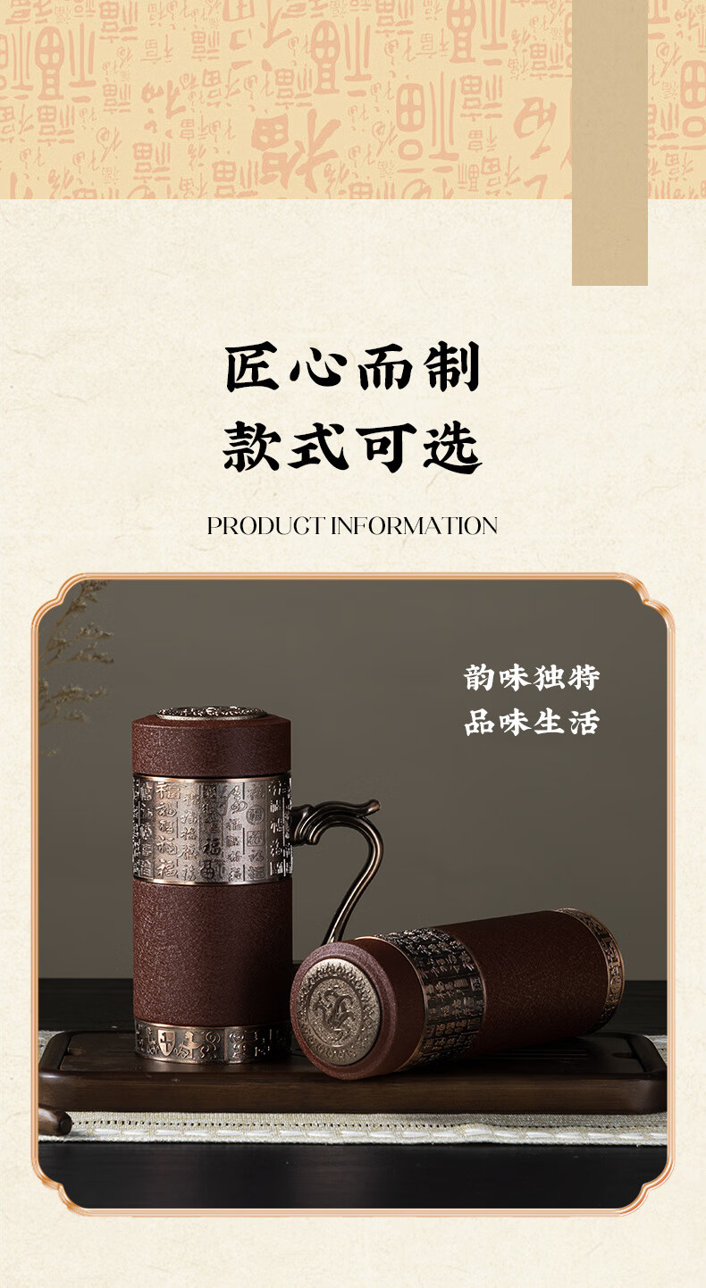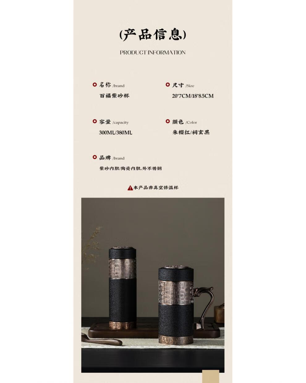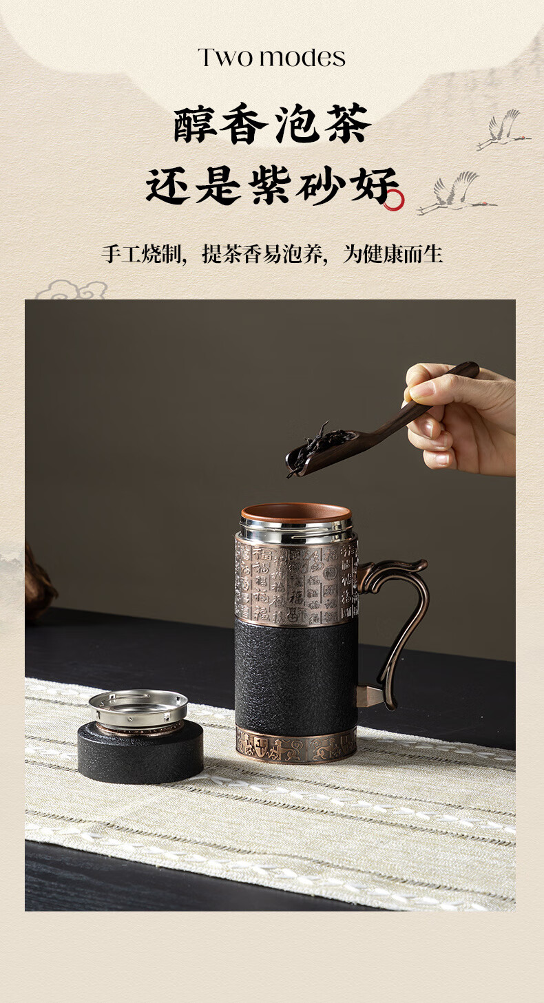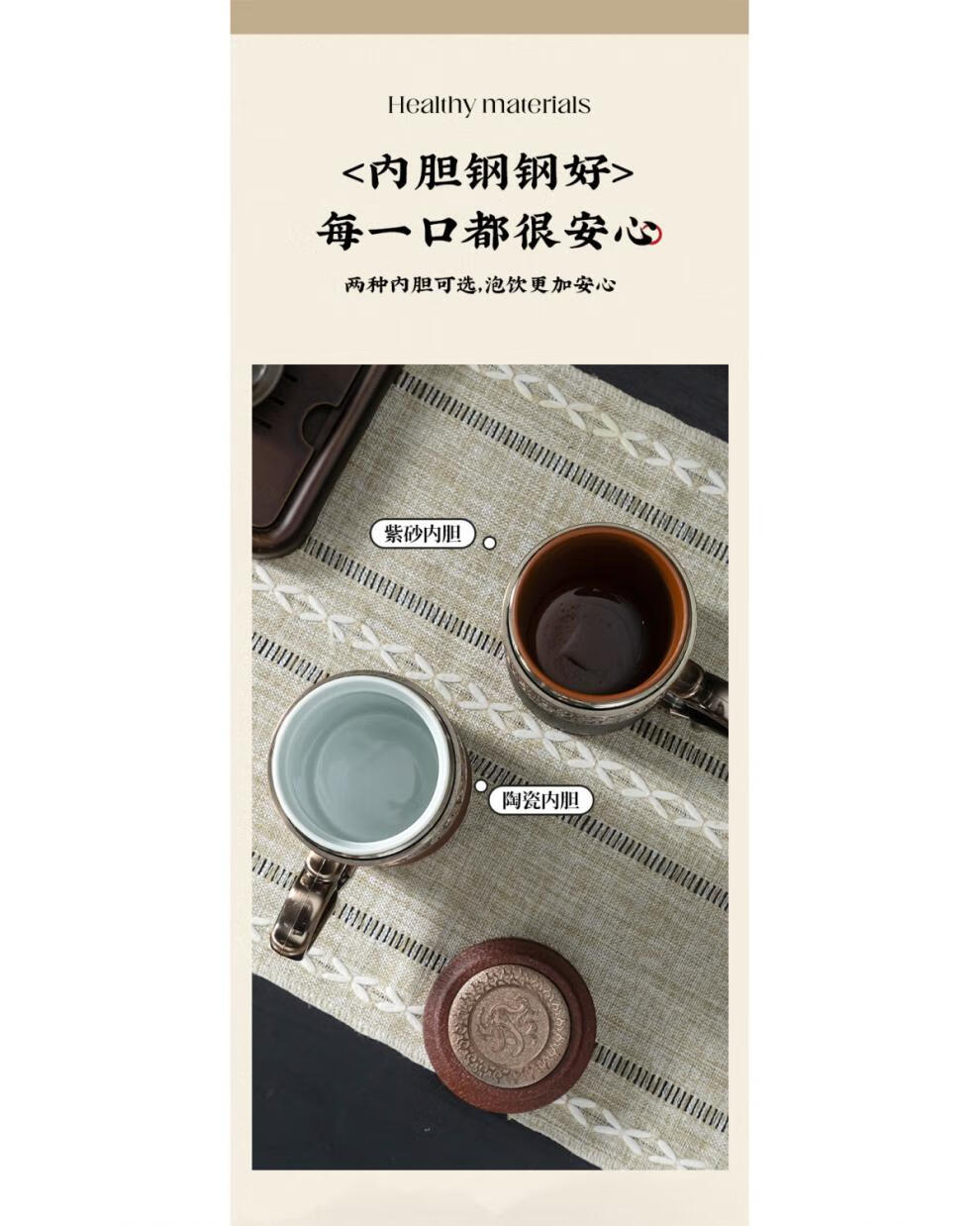 Fat Donglai's same style Yixing purple clay liner thermos cup large capacity office cup with handle men's tea cup gift customization Baifu purple clay cup red set of 2 pieces No Specifications