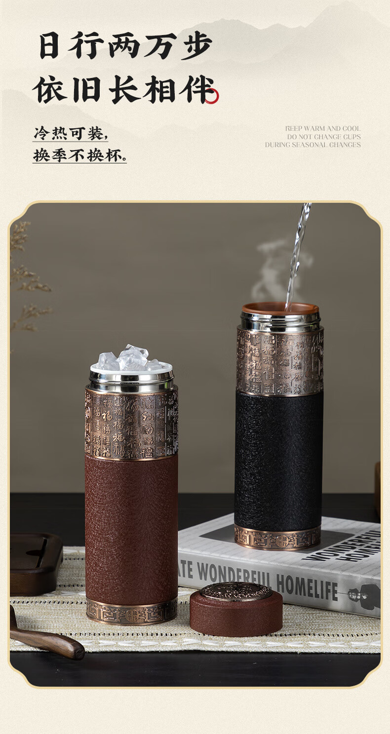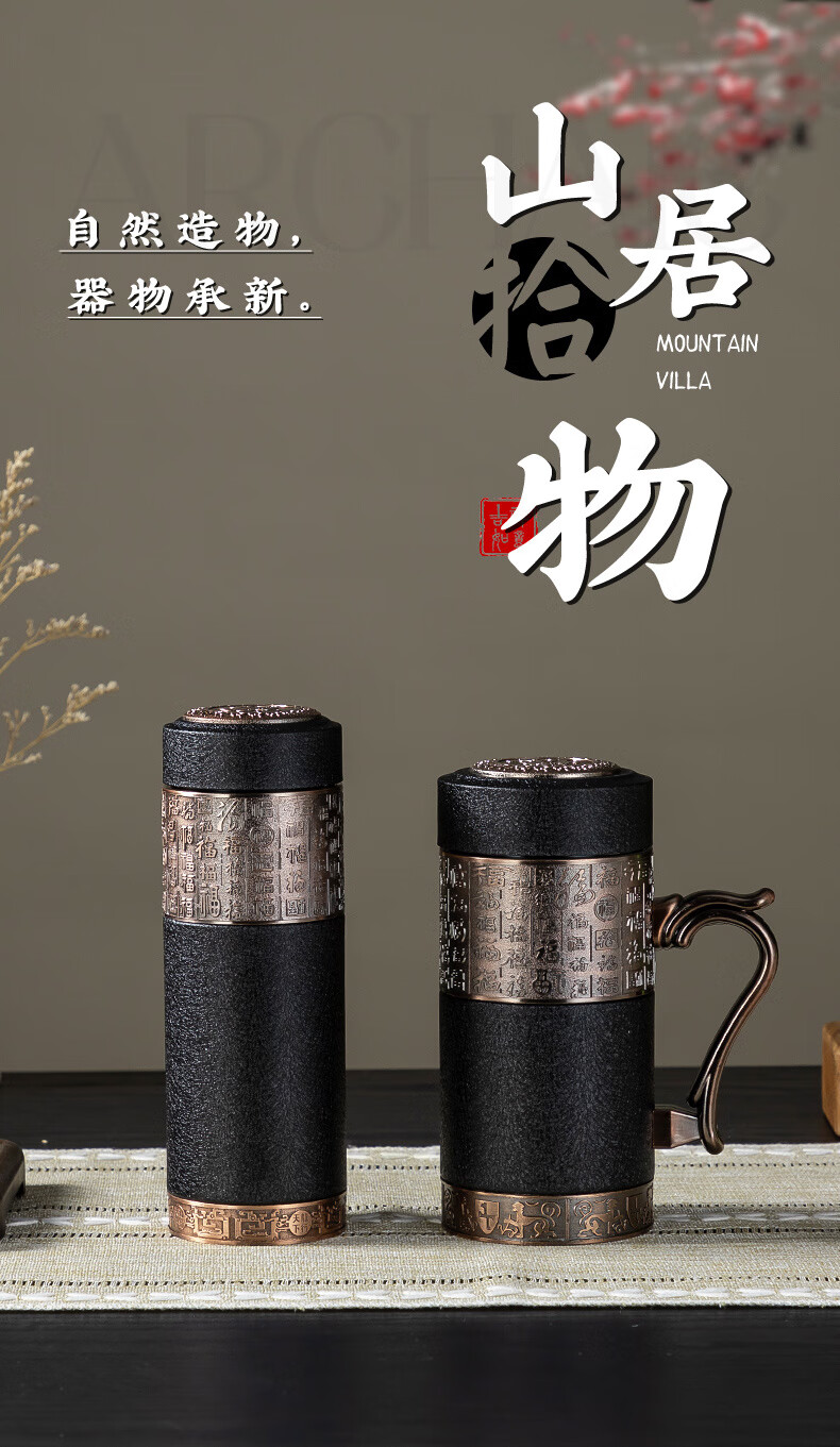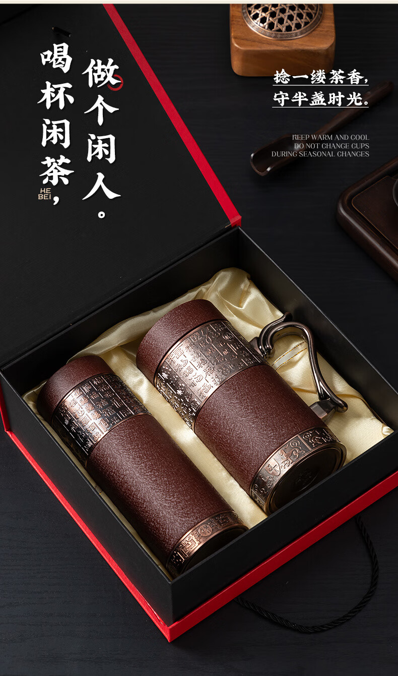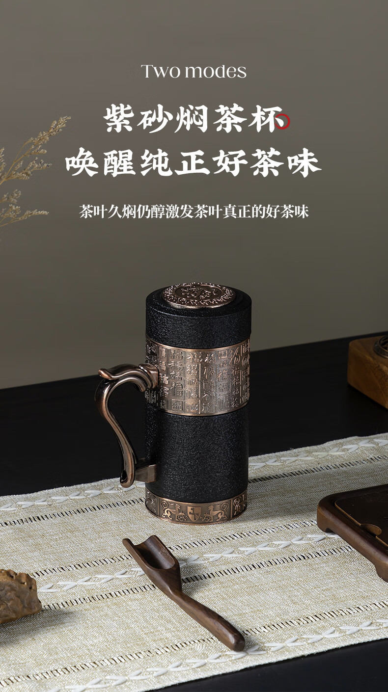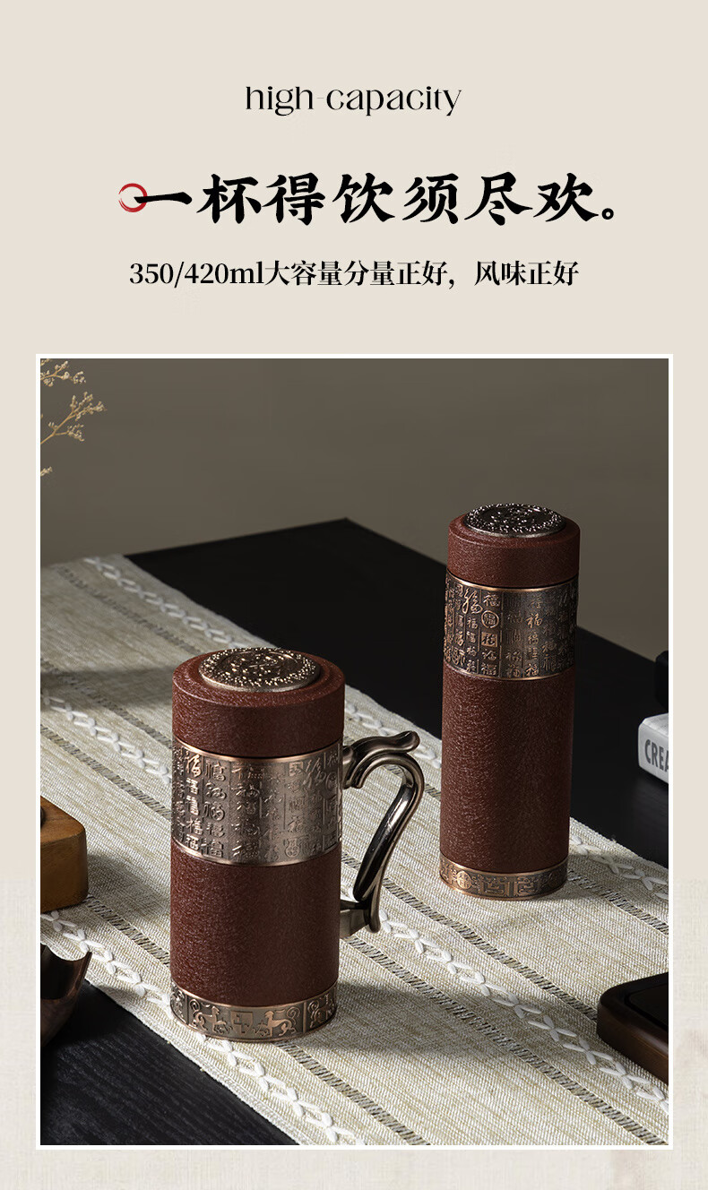 Fat Donglai's same style Yixing purple clay liner thermos cup large capacity office cup with handle men's tea cup gift customization Baifu purple clay cup red set of 2 pieces No Specifications