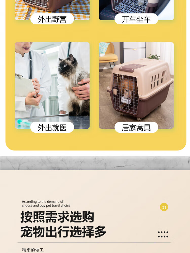TYZAYR日本宠物航空箱猫咪托运箱狗狗外出便携车载猫笼子中小型犬国 新款【巧克力棕】宽提手【送隔尿板+碗】 1号外出便携 抗磨耐压