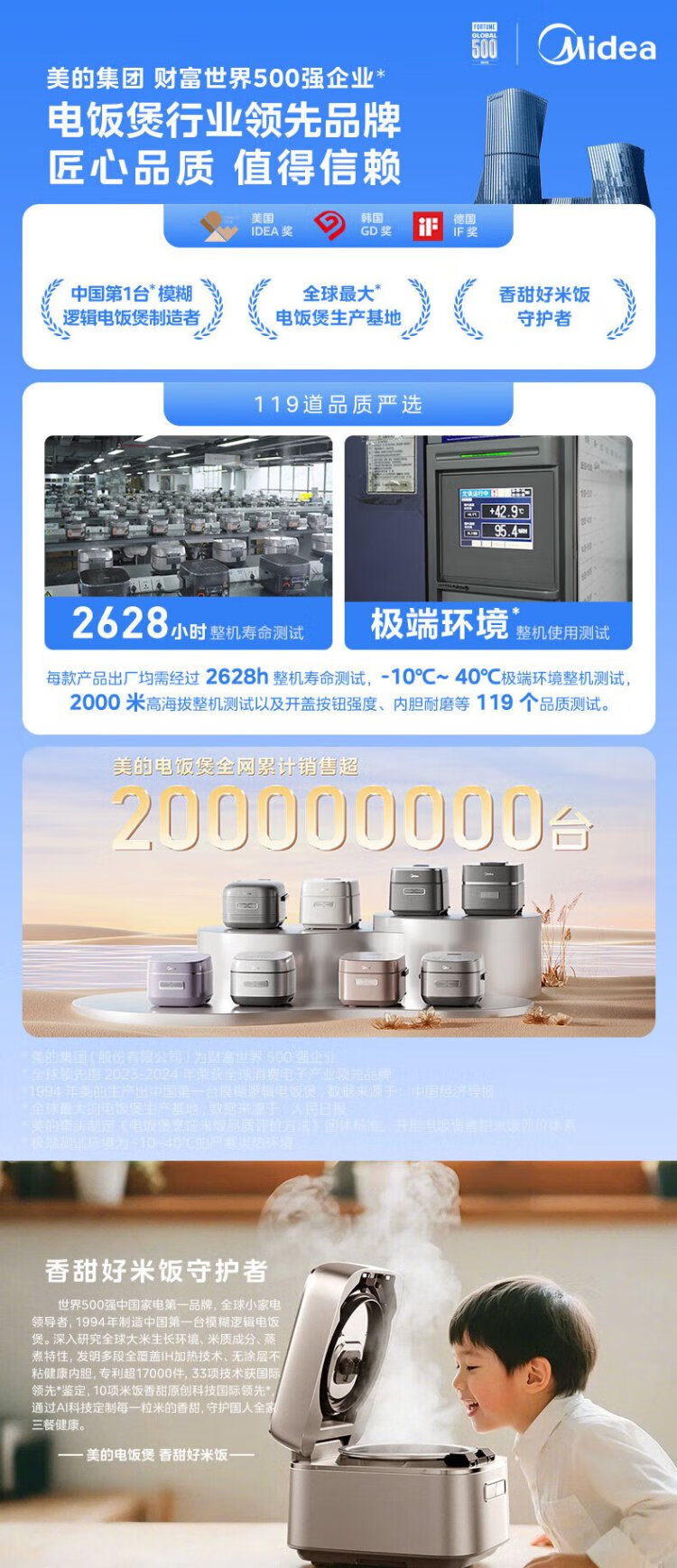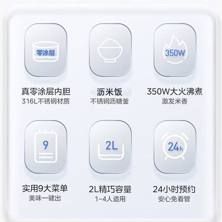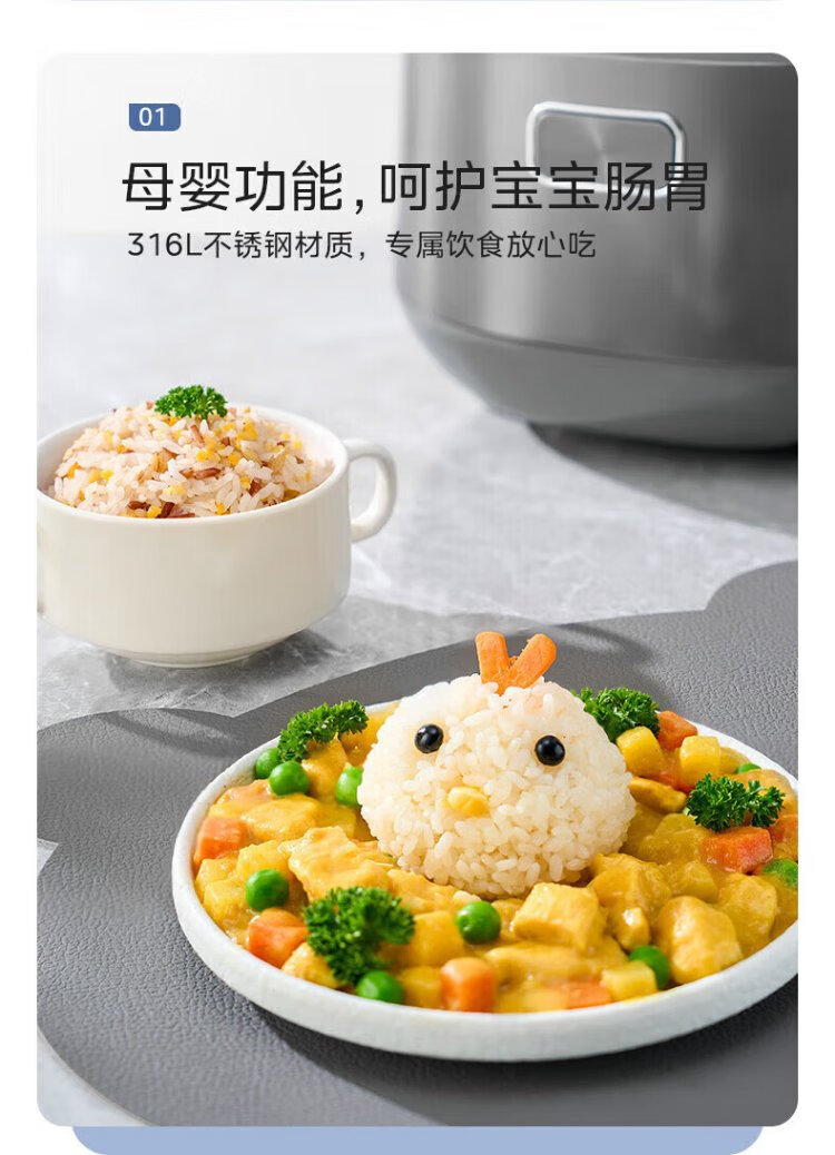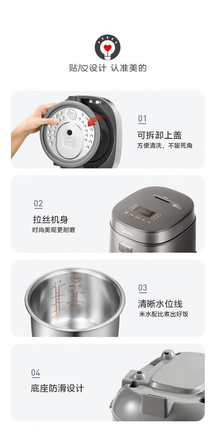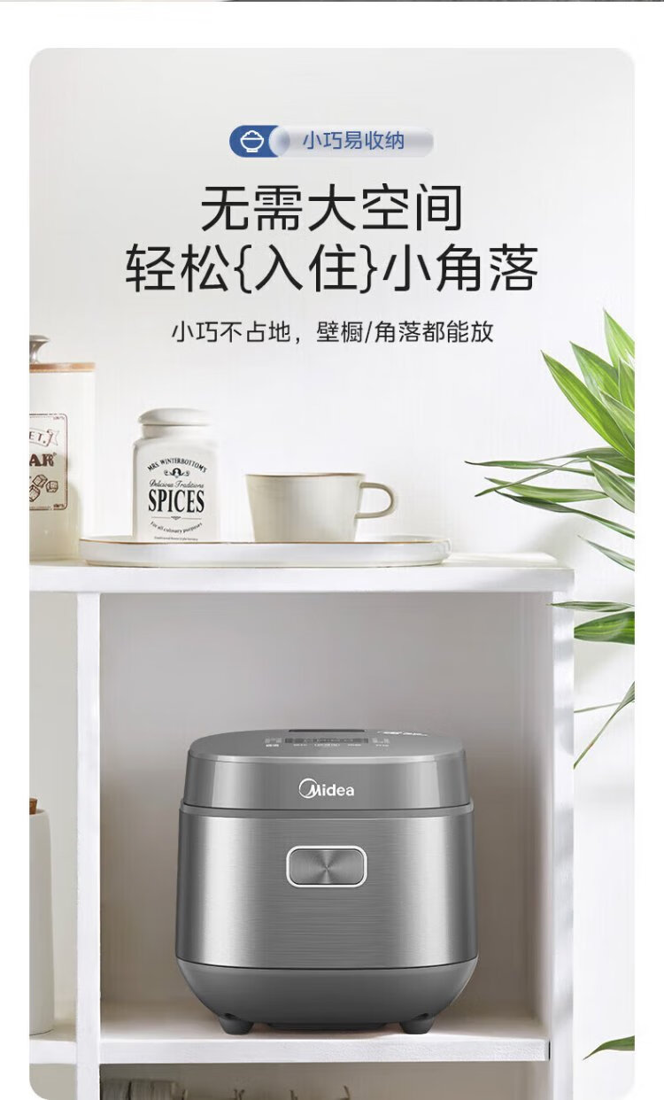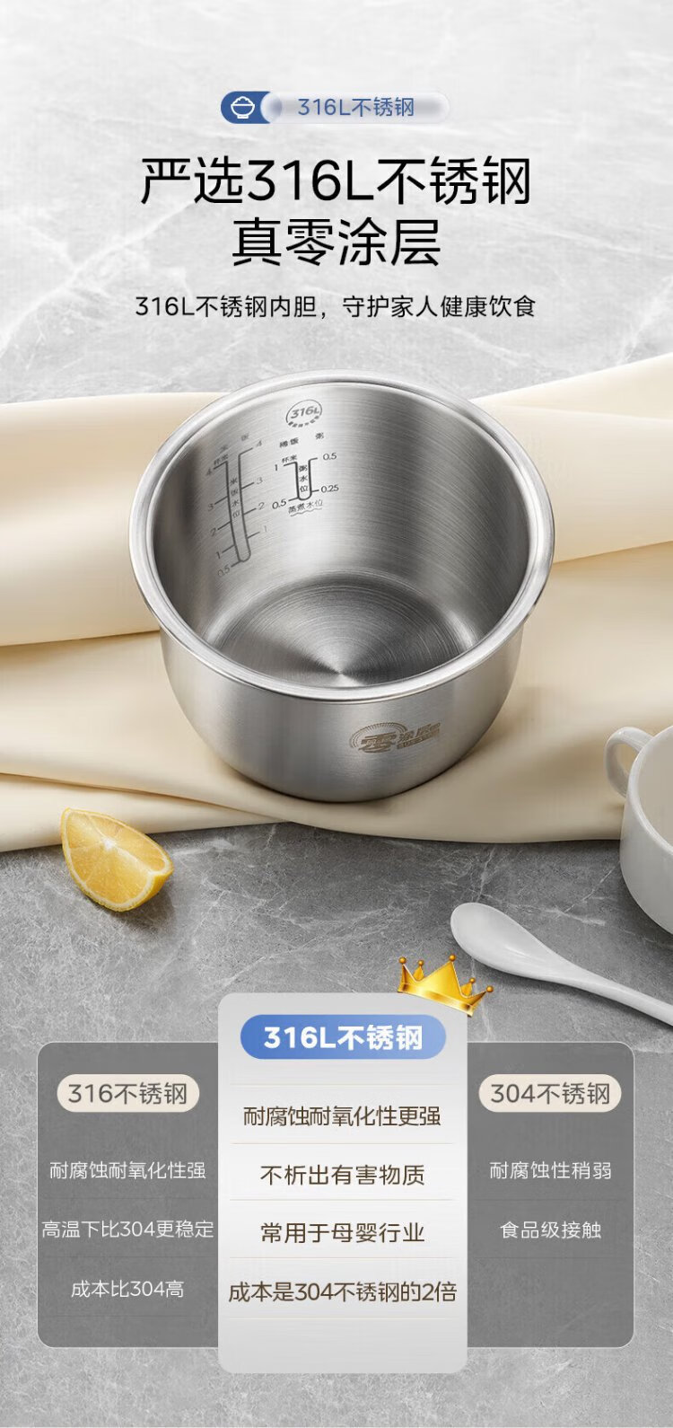 Midea mini rice cooker 2 liters, household use for 1-2-3 people, 0-coated 316L maternal and infant grade stainless steel inner pot, low-sugar rice, firewood rice, micro-pressure rice cooker 2L MB-AFB2022LS rice cooker