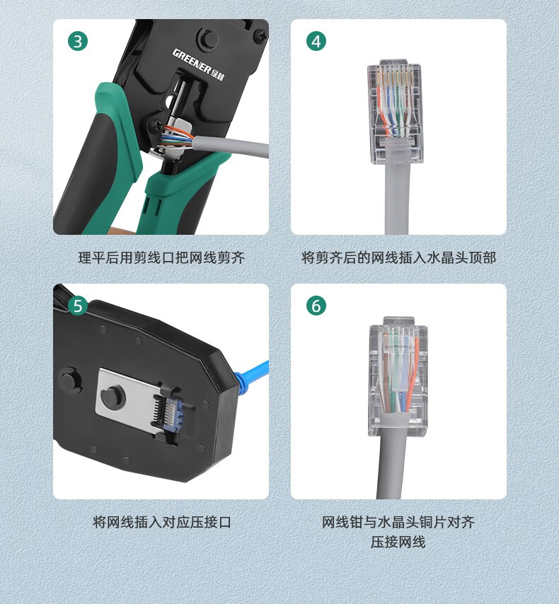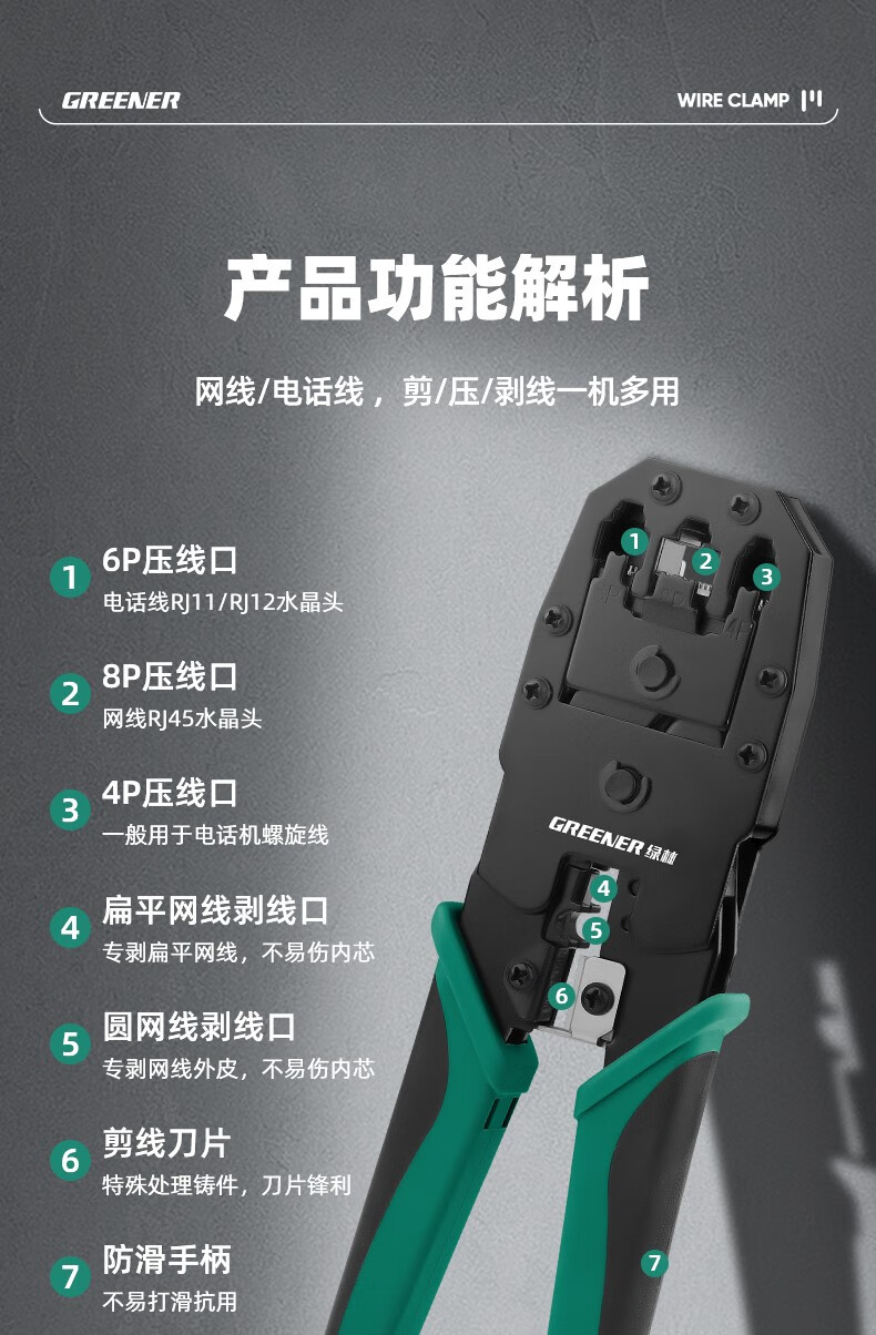 常绿林绿林网线钳水晶头压线接线级多功能通用超五六七类网络钳子 级三用网线钳3件套