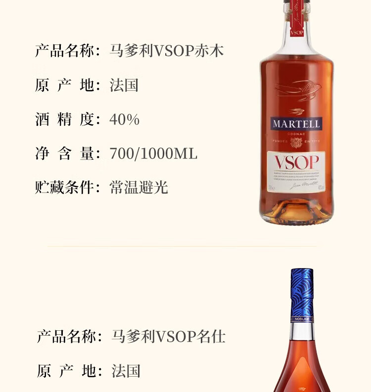 马爹利名仕VSOP 马爹利赤木 洋酒 法国原装进口 白兰地 干邑 礼盒装 马爹利名仕 700mL 2瓶