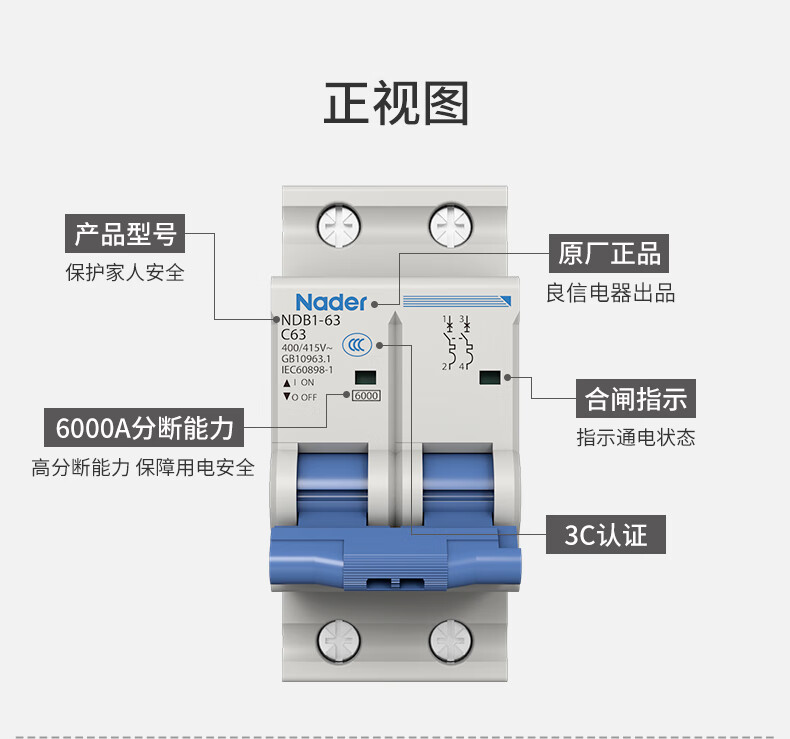 Liangxin NDB1-63 1PNader Shanghai Liangxin eléctrico 3P4P micro-rotura pequeño disyuntor 32A63A interruptor de aire NDB1-63 1P C16