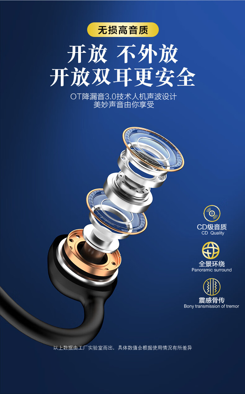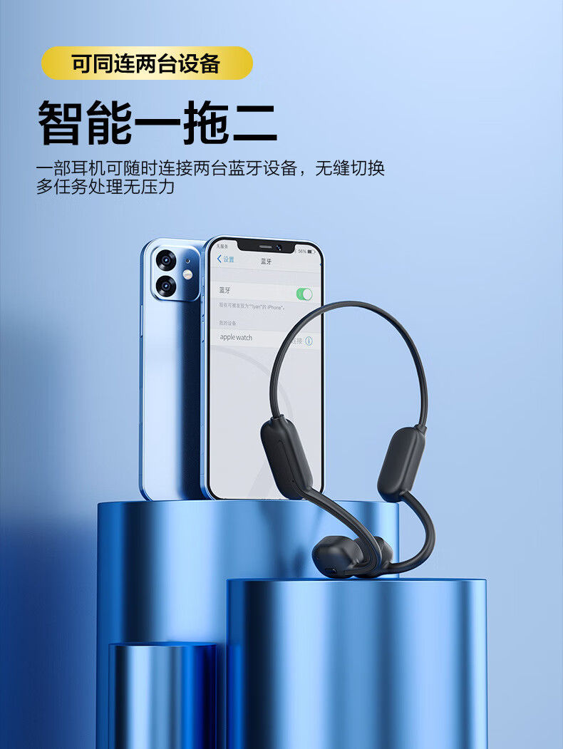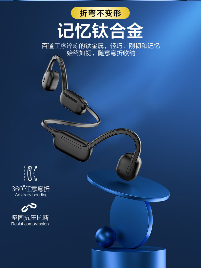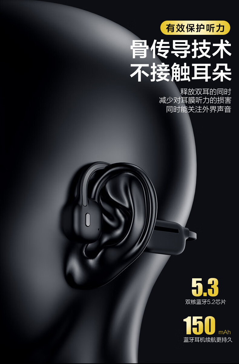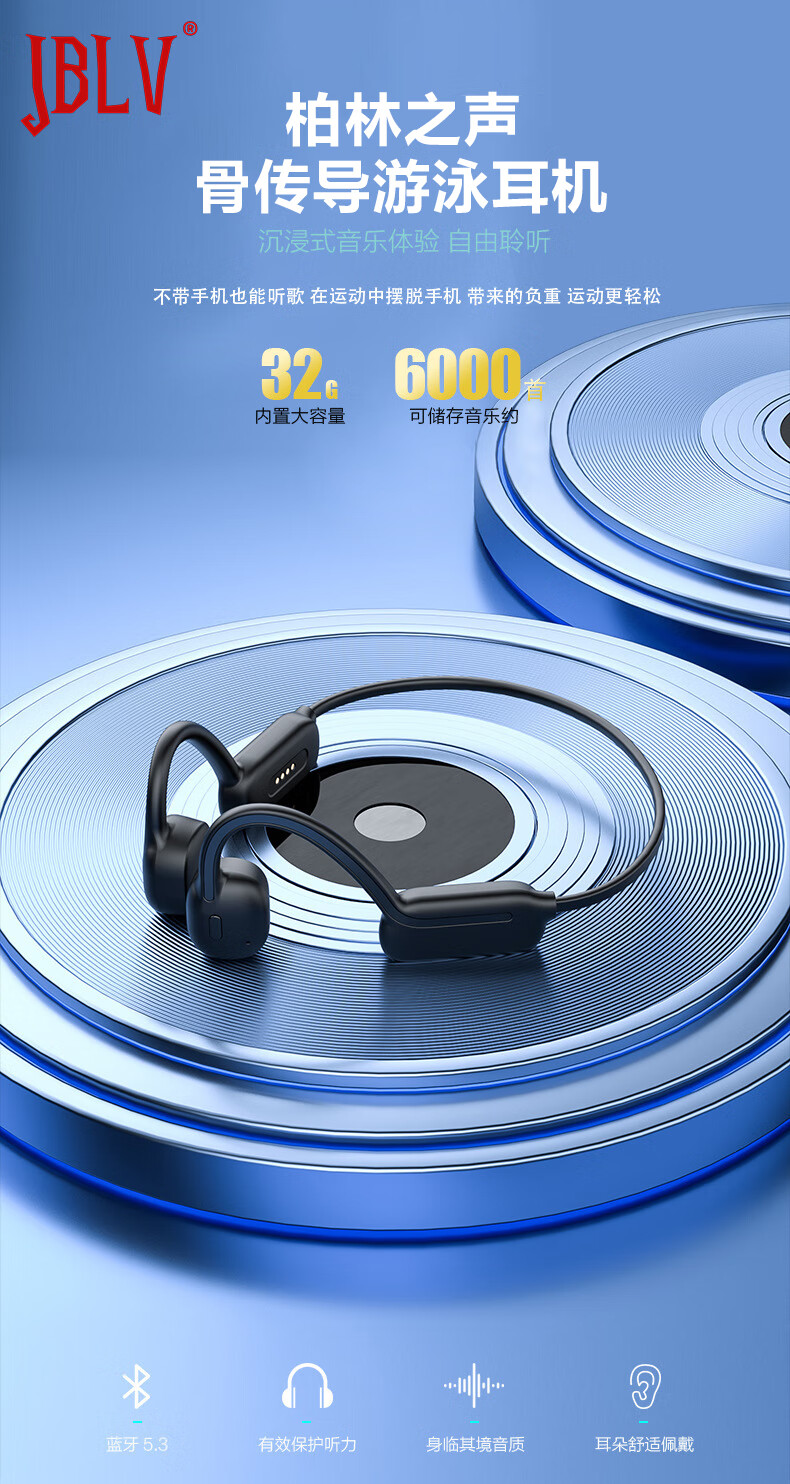 JBLV柏林之声骨游泳传导蓝牙环绕耳机挂耳式跑步运动型不入耳骨传感无线持久续航力磁吸充电双边立体声 镜夜黑