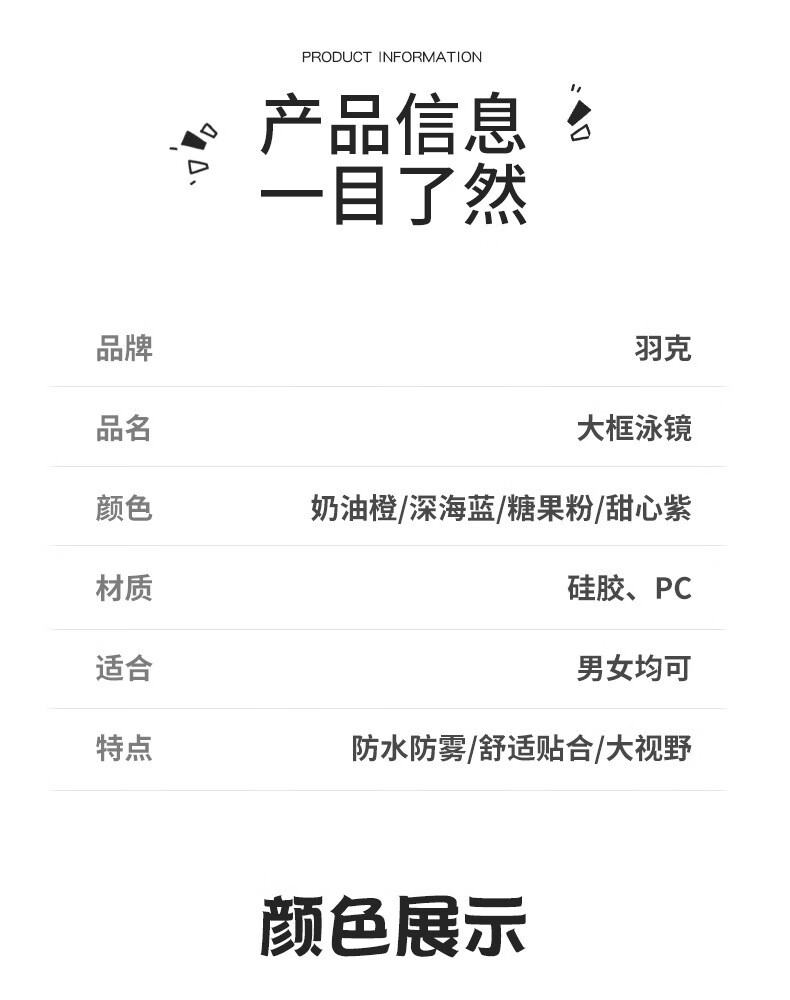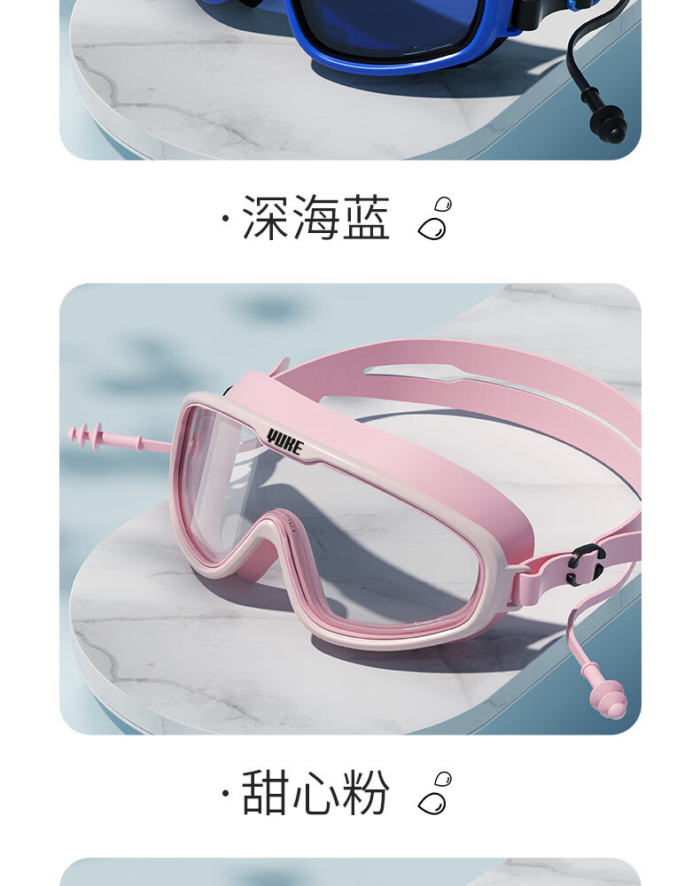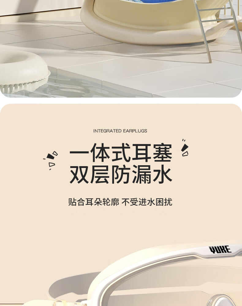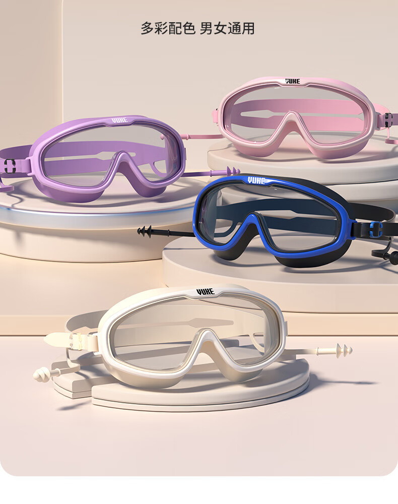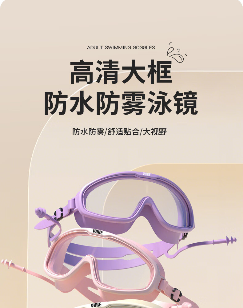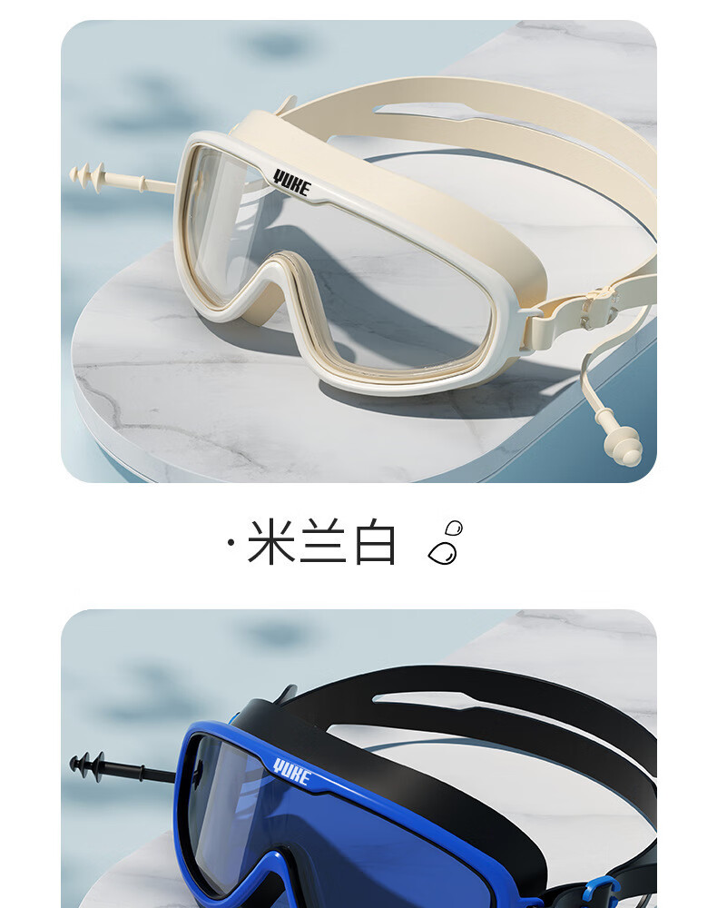 羽克游泳镜男女士高清防水防雾专业训练成人大框潜水游泳镜泳帽套装 米兰白套装