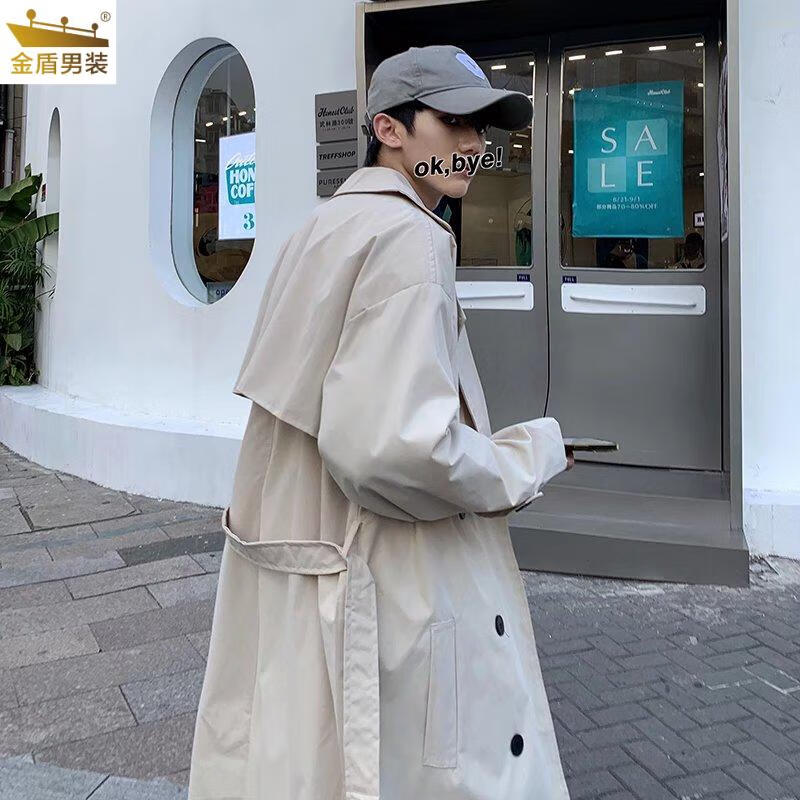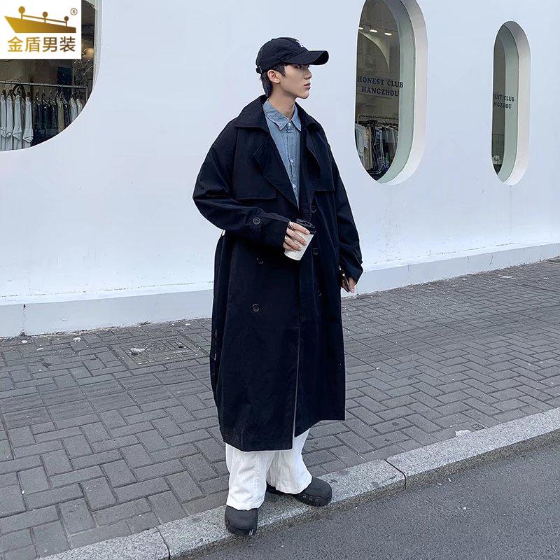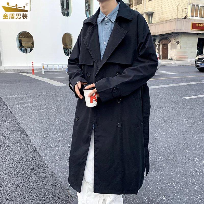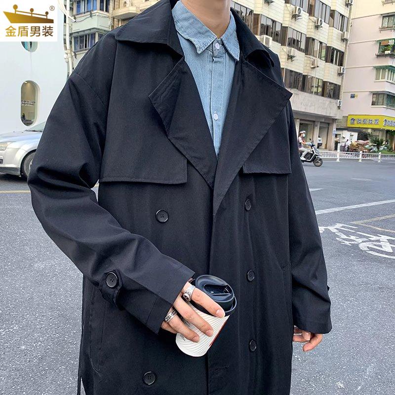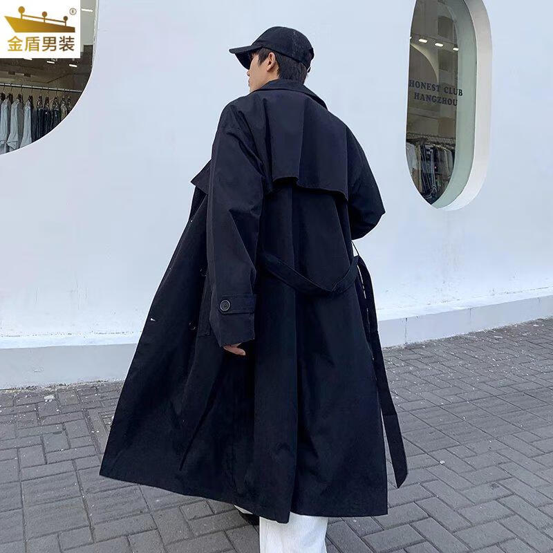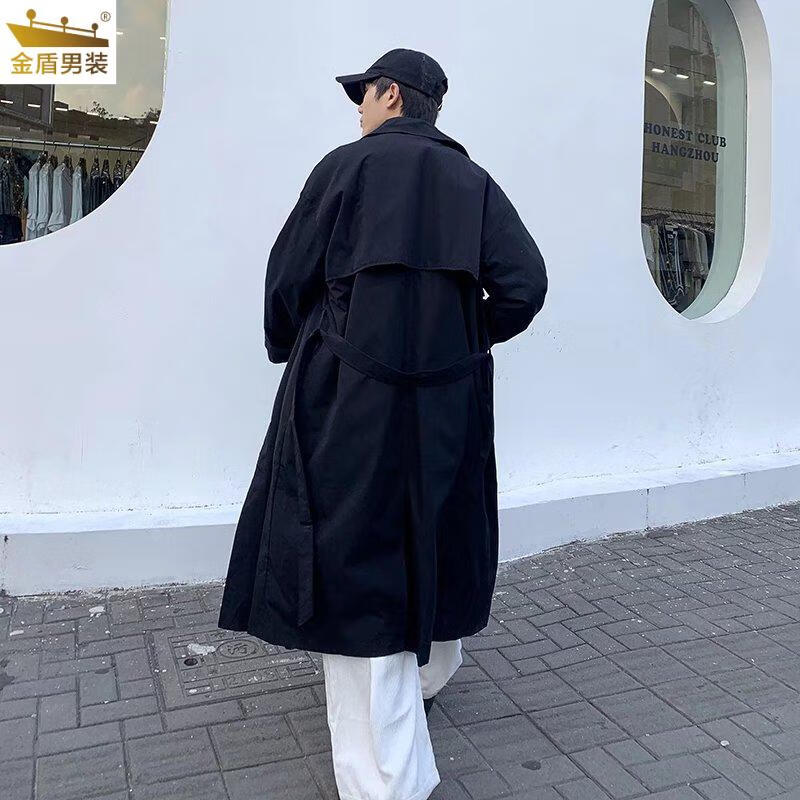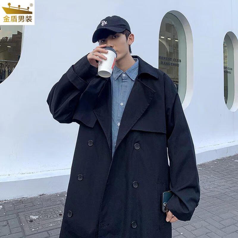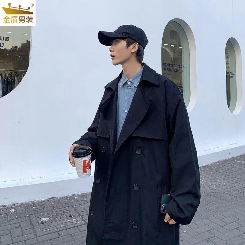 金盾春秋中长款风衣男夹克日系宽松英伦风韩版情侣潮流学生bf披风外套 黑色8872高端款 M