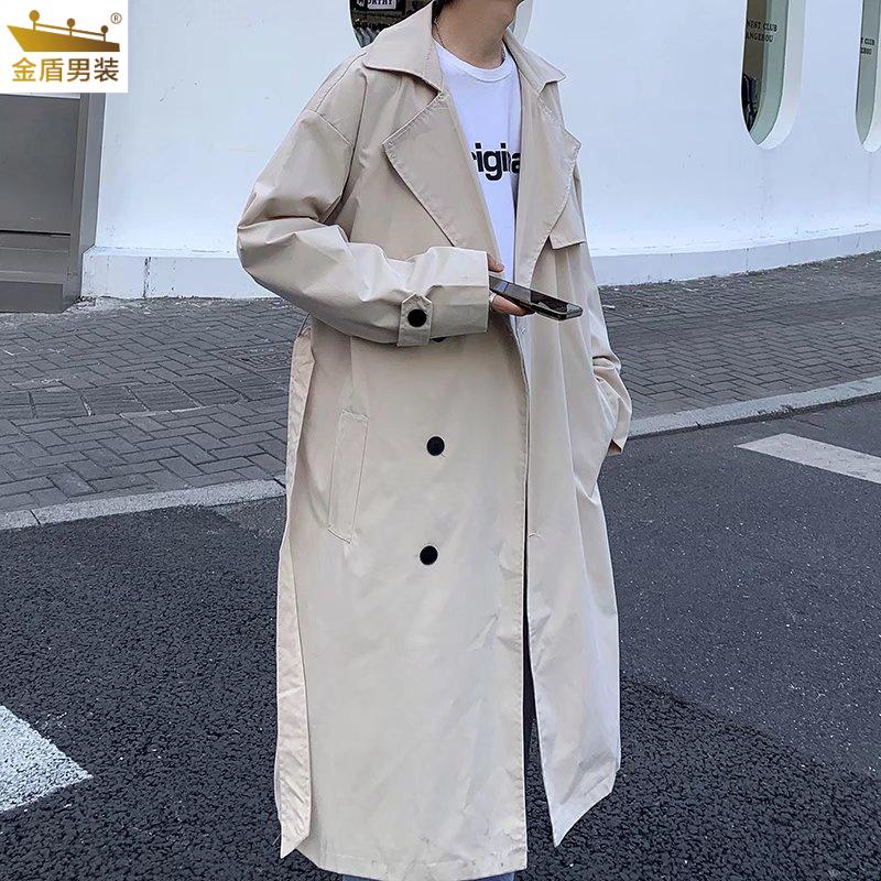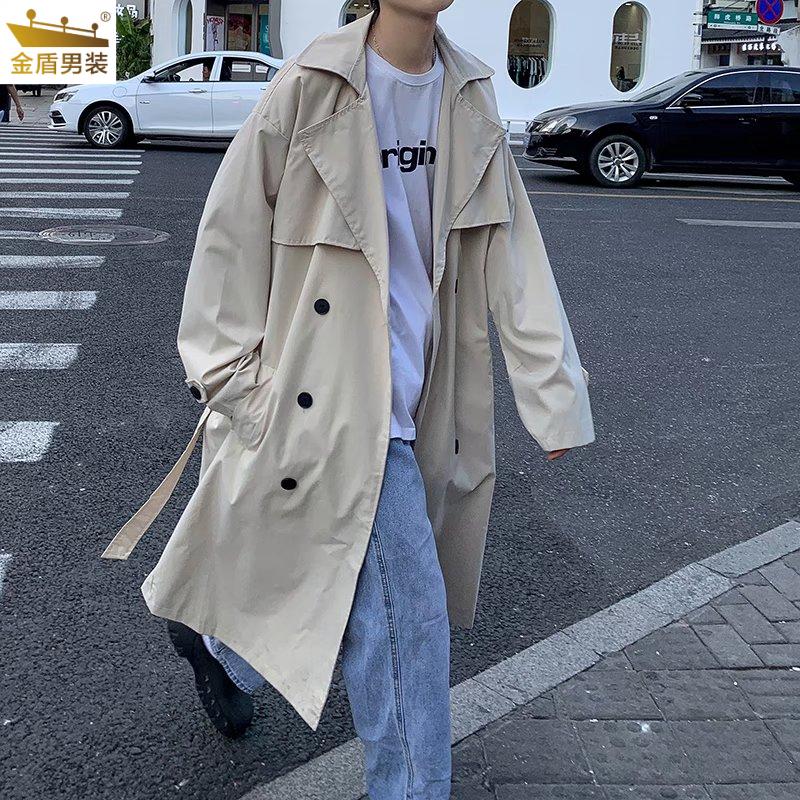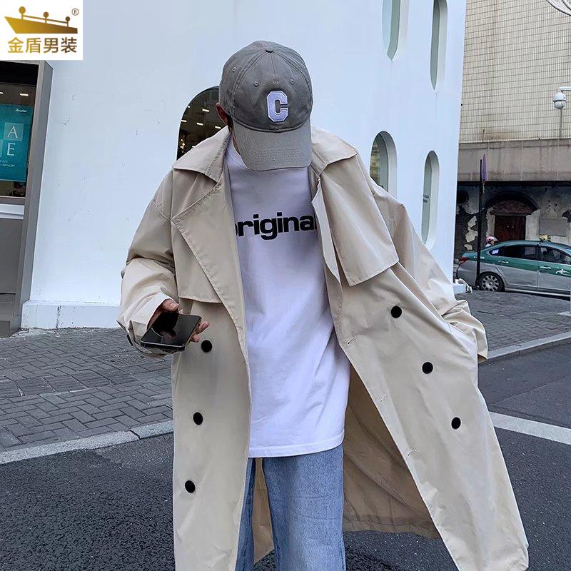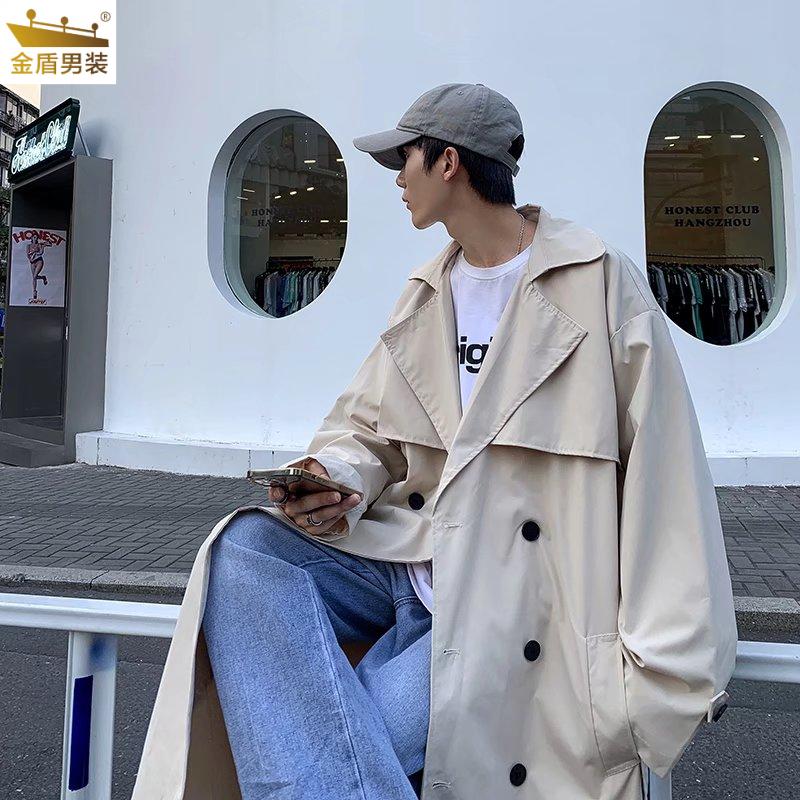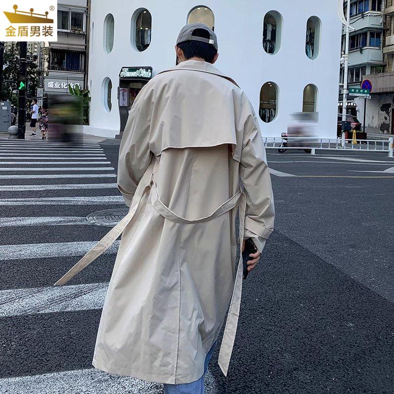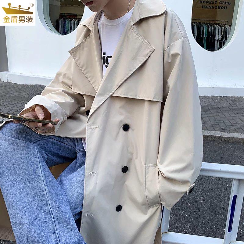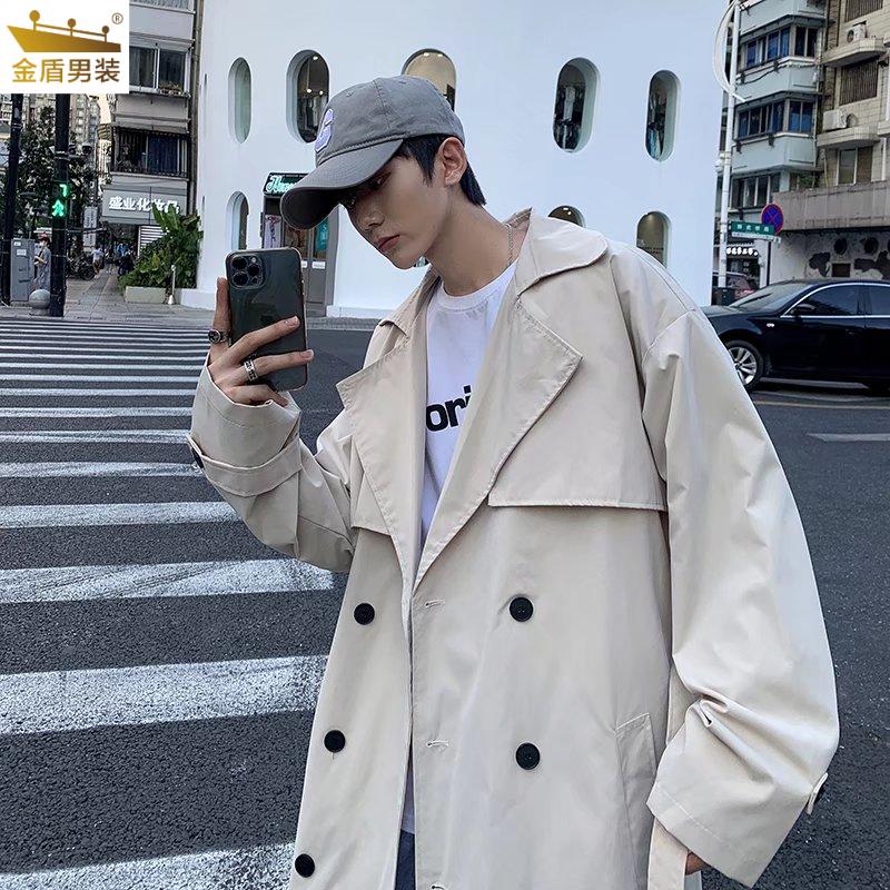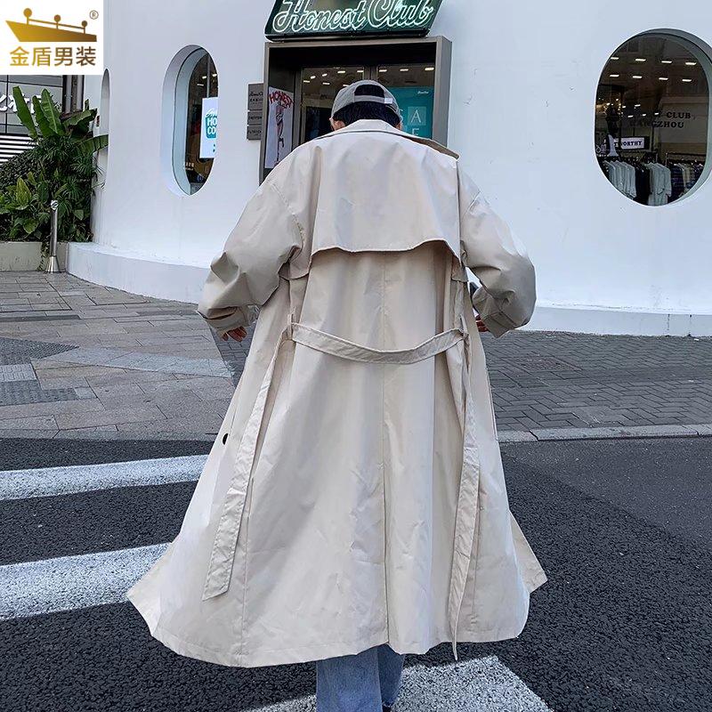 金盾春秋中长款风衣男夹克日系宽松英伦风韩版情侣潮流学生bf披风外套 黑色8872高端款 M