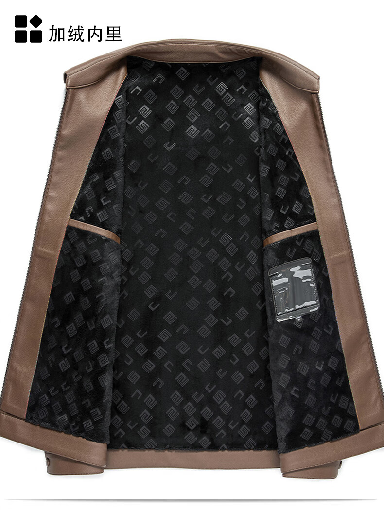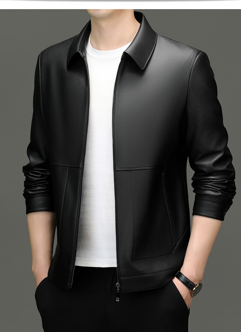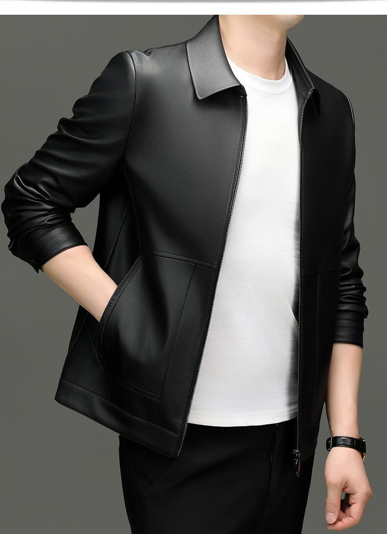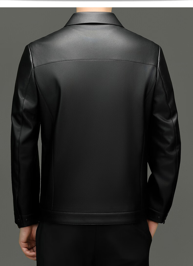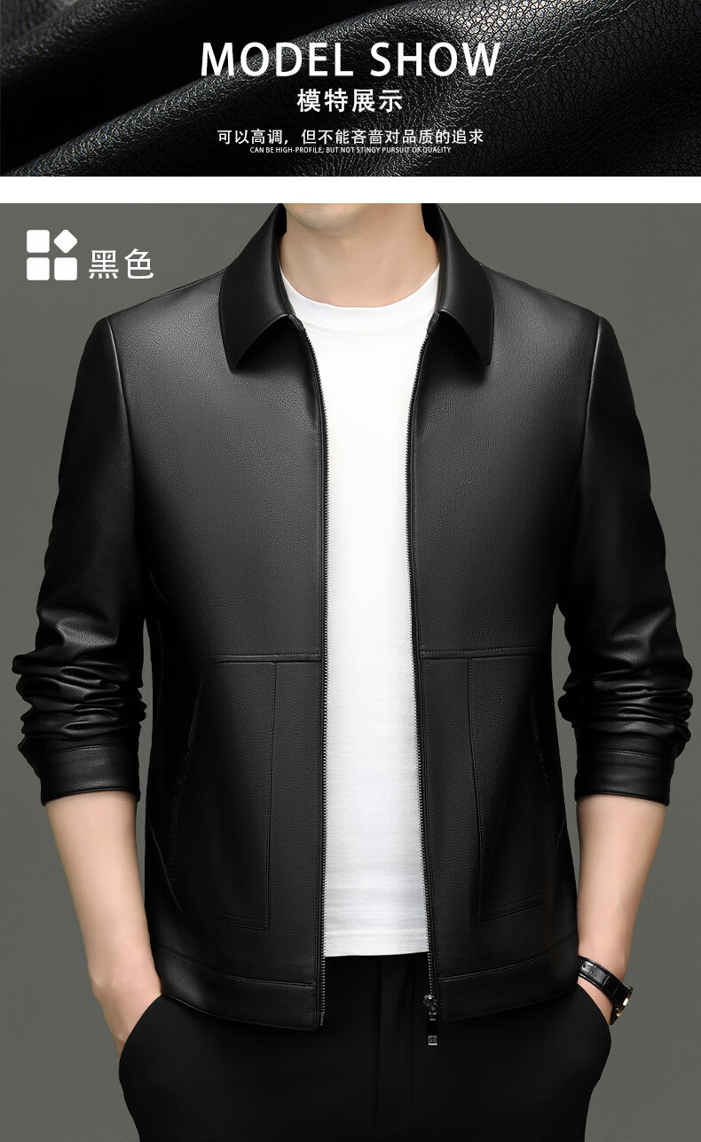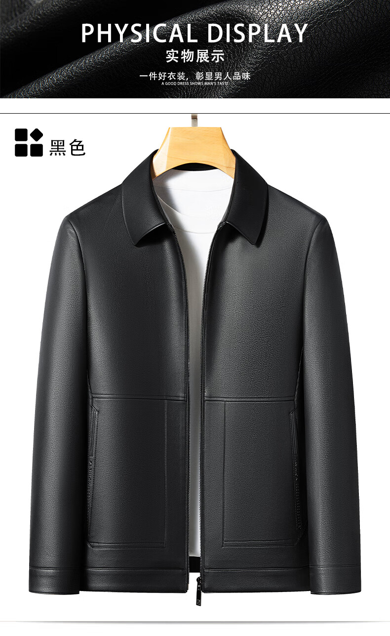 Hengyuanxiang Dad Leather Jacket Men's 2025 New Autumn and Winter Lapel Business Casual Velvet Leather Jacket for Middle-aged and Elderly Men Black Lapel Thin L 175 Suitable for 110-125 Jin Jin equals 0.5 kg