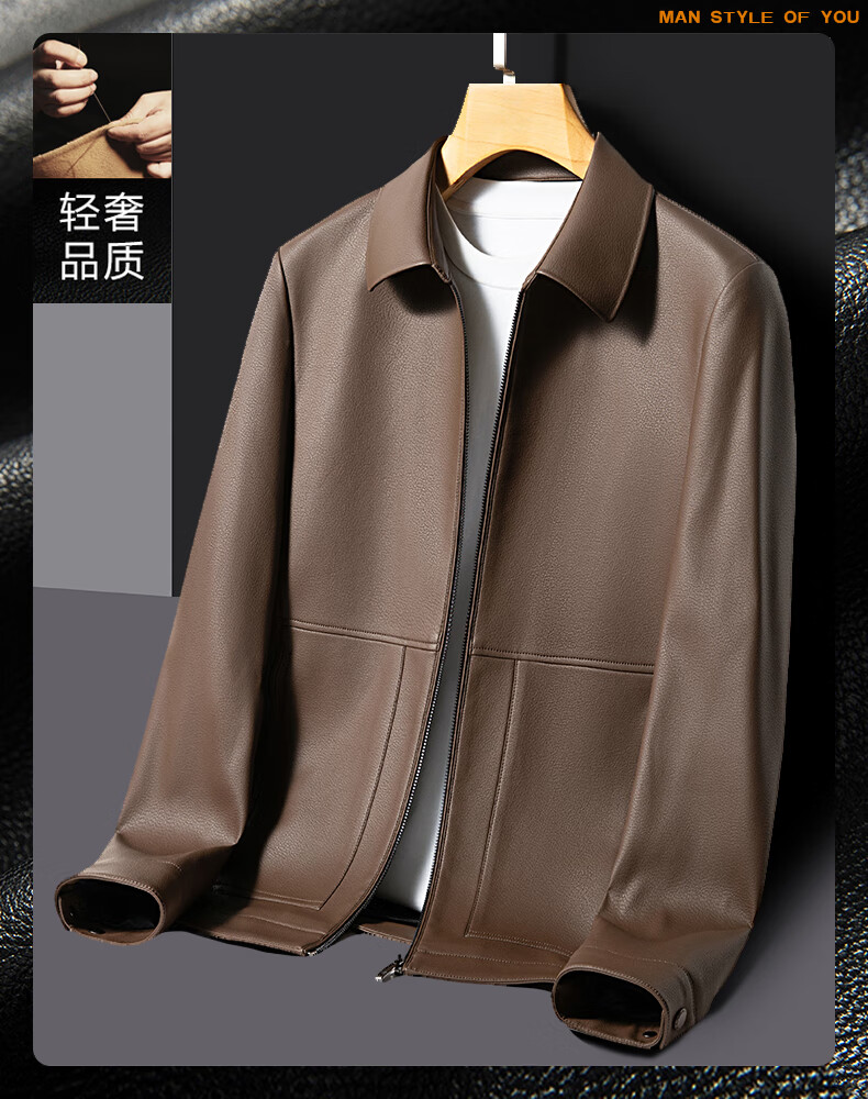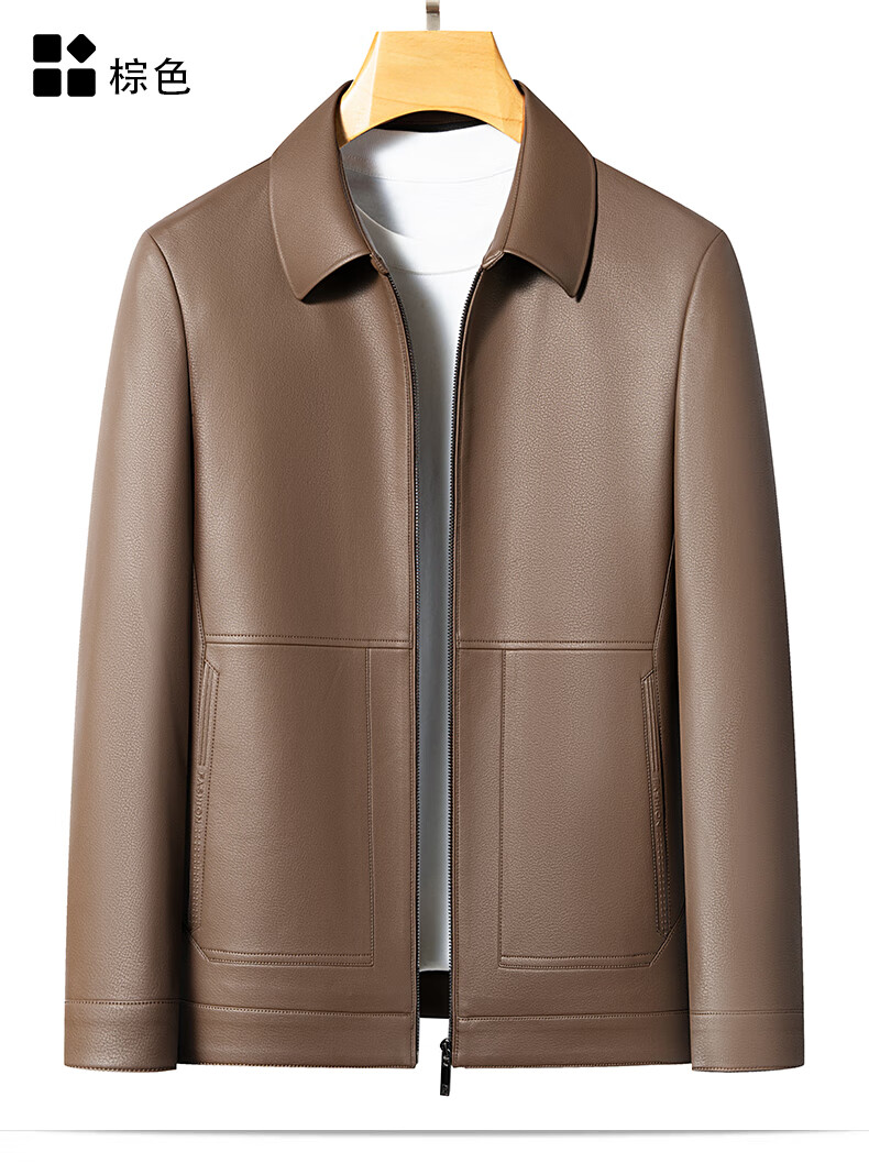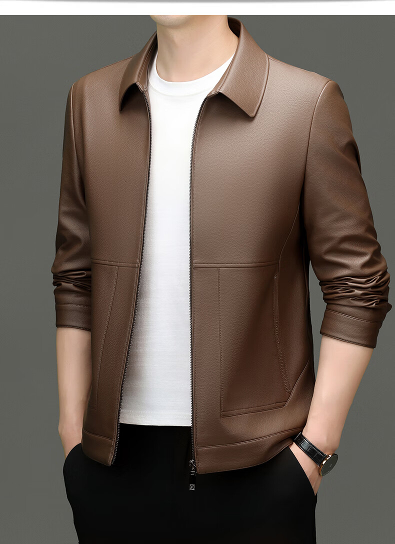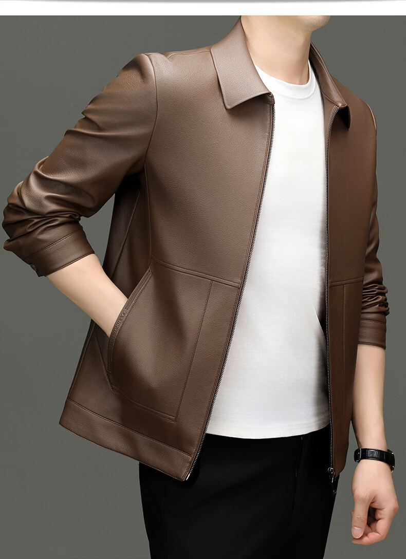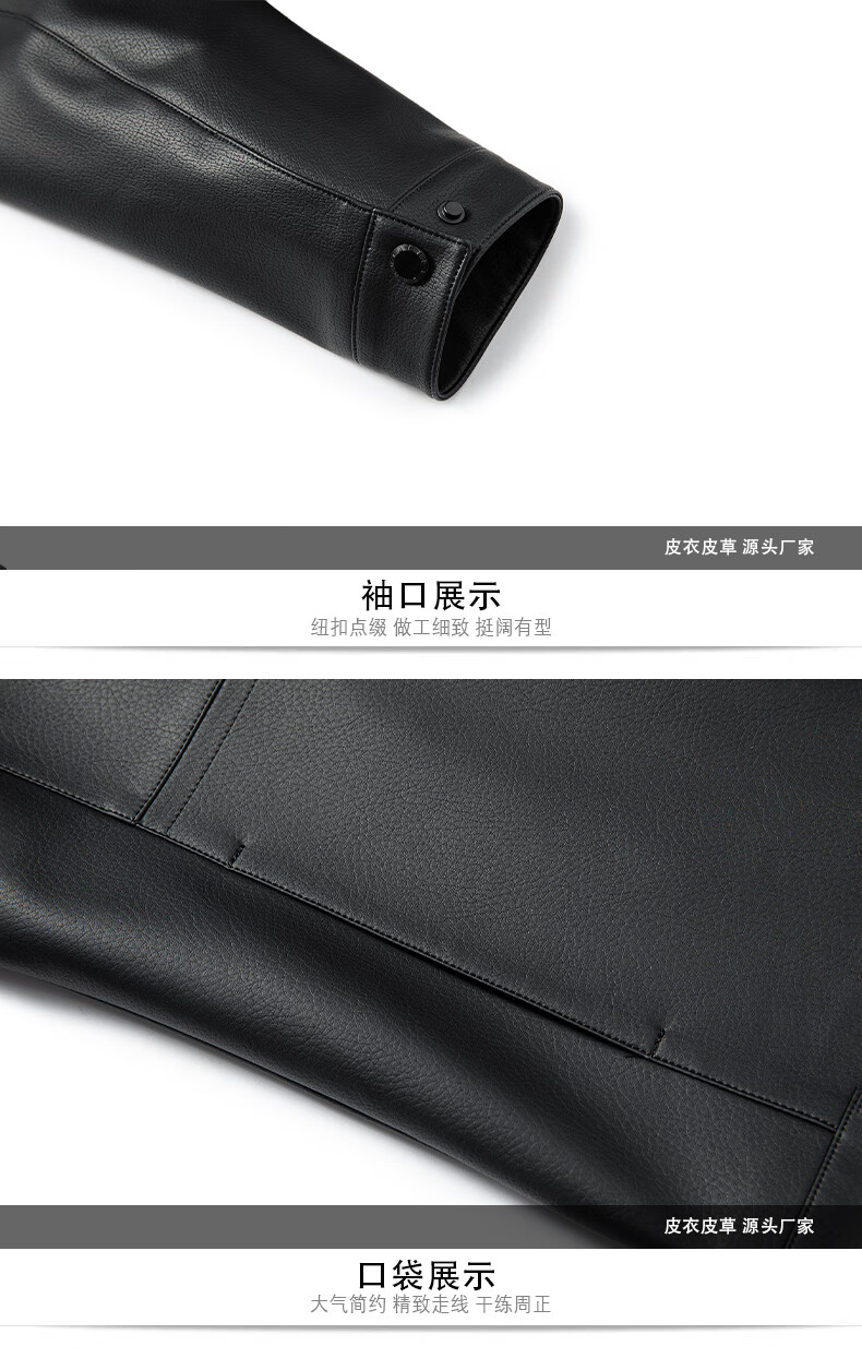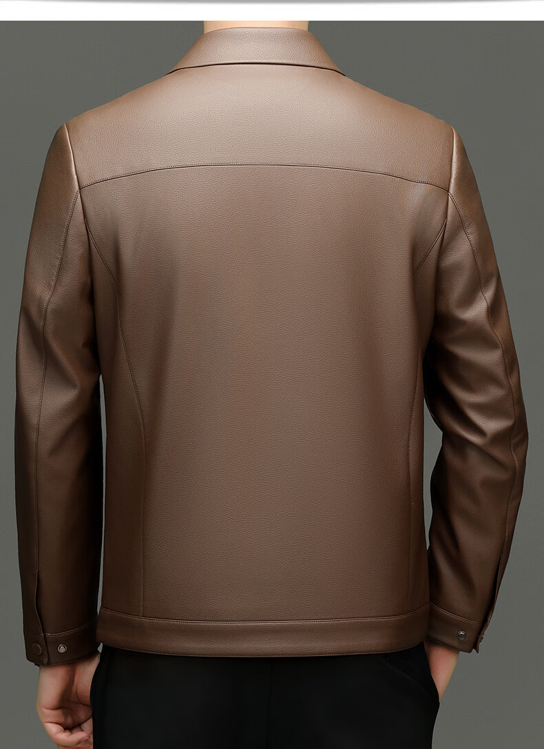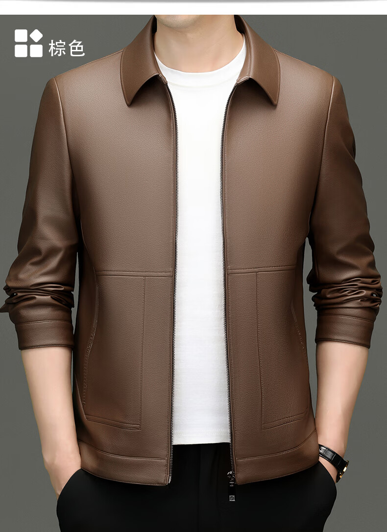 Hengyuanxiang Dad Leather Jacket Men's 2025 New Autumn and Winter Lapel Business Casual Velvet Leather Jacket for Middle-aged and Elderly Men Black Lapel Thin L 175 Suitable for 110-125 Jin Jin equals 0.5 kg