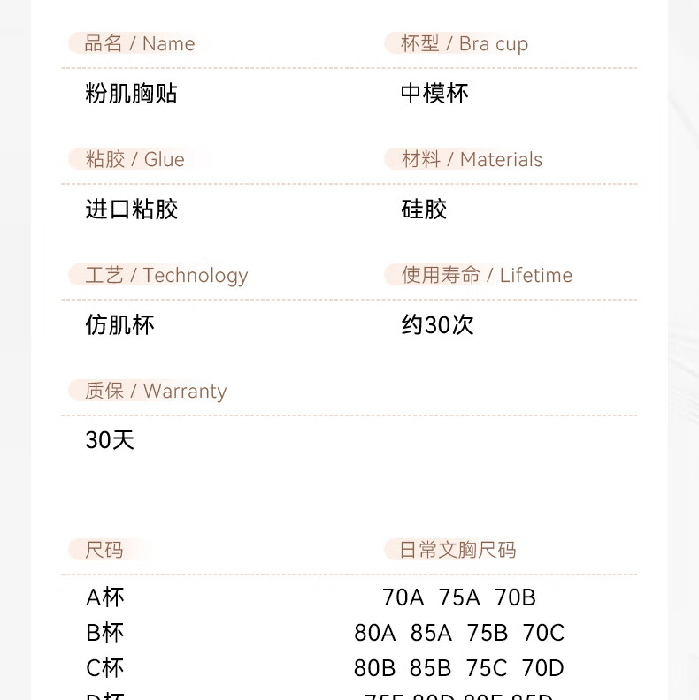 vcn粉肌胸贴-版硅胶乳贴女婚纱用小胸显大聚拢隐形内衣 A杯