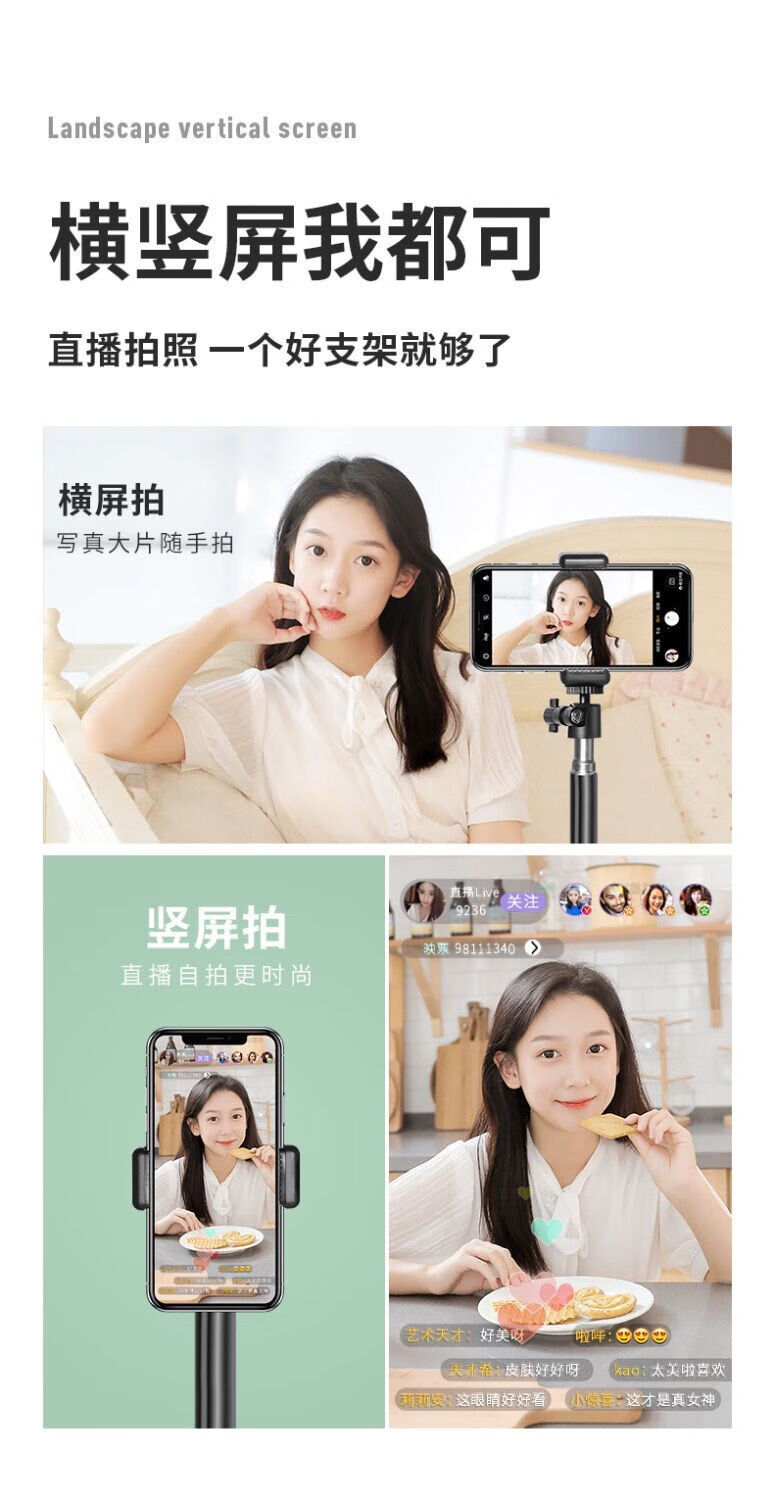 优米帕巡影手机支架多功能直播三脚架落地主播拍照拍摄补光灯自拍杆直播 单机位 【尺寸慎拍】0.32米