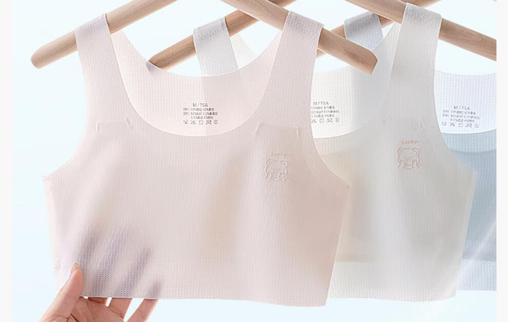 Yitangduo girls underwear anti-bulge thin girl bra 12-year-old children's first stage of development period primary school student vest white + pink M (recommended weight 45-65Jin Jin equals 0.5kg) 7A antibacterial