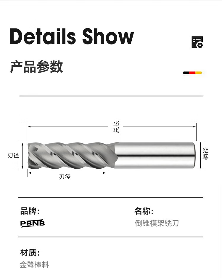 仁聚益70度钨钢倒锥模架铣刀4刃加长硬质合金CNC数控模框立铣刀D10D12 【模架刀】D10-30H-D10-75L