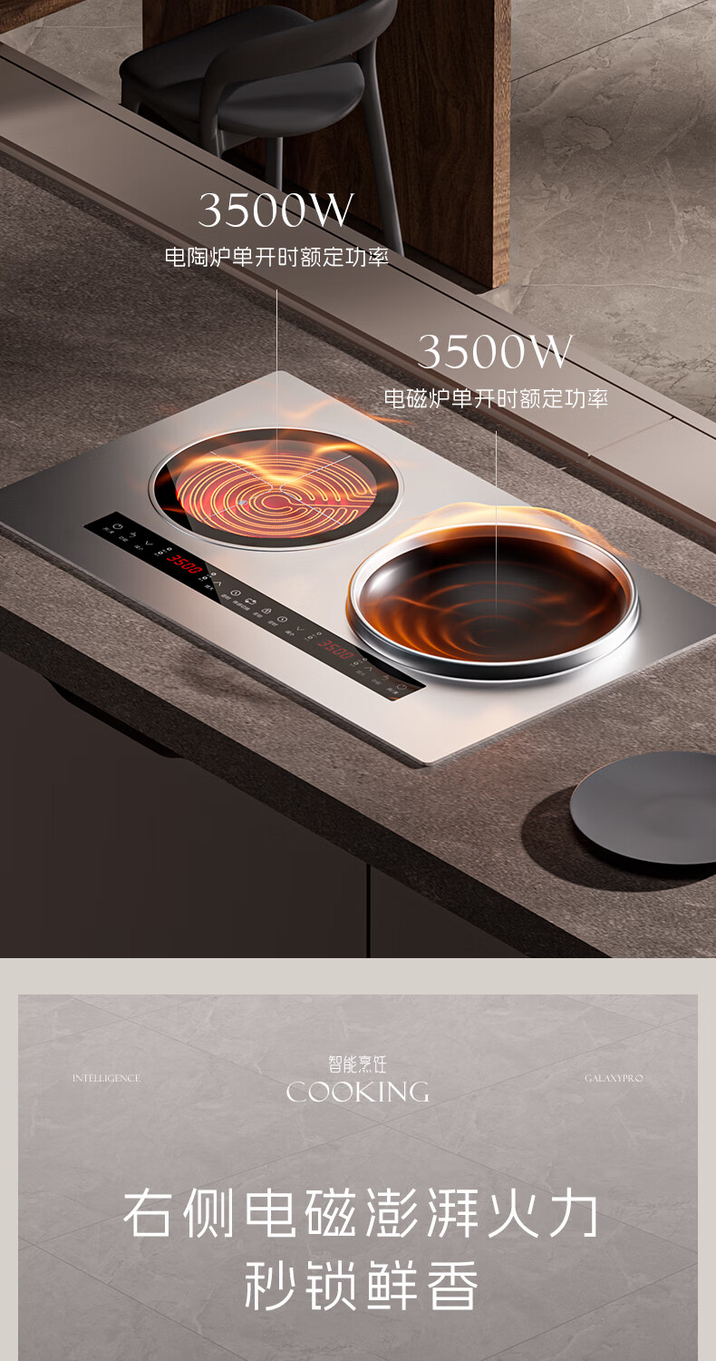 Enthousiaste Good Wife 4400W haute puissance féroce feu tuile détection du corps intelligent interaction homme-machine maison plat concave double tête cuisinière à induction électrique céramique intégrée cuisinière incrustée avec sauté intégré contrôle de l'espace économie d'énergie en acier inoxydable - gauche concave électromagnétique 3500W droite plat électrique céramique 3500W détection intelligente du corps (contrôle mutuel 4400W)
