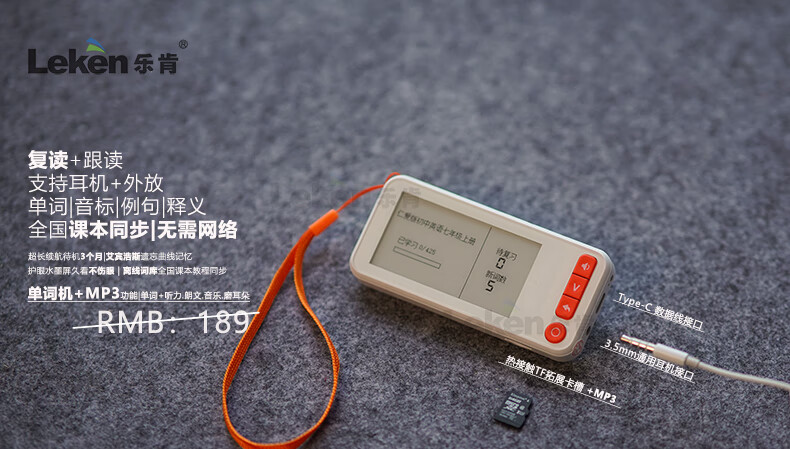 Leken English word machine electronic word card learning machine real-person voice ink screen English recitation word artifact primary school junior high school high school card 3500 university new concept IELTS S11 new upgrade - pink