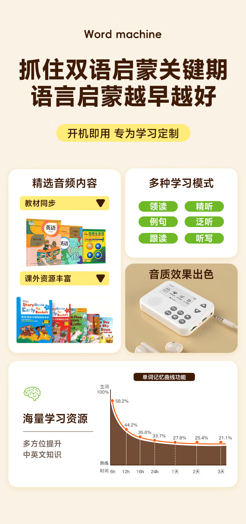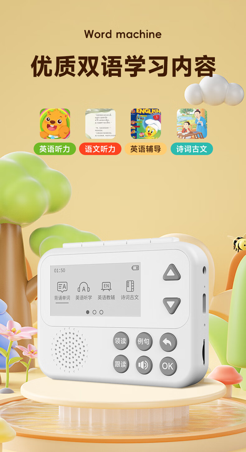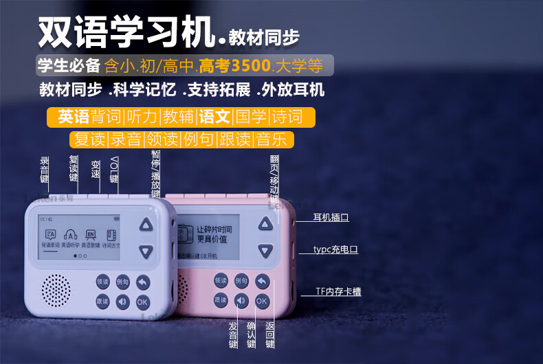 乐肯单词机听力宝小学初高中英语听力单词机复读机 磨耳朵神器新课改英语语文国学学习机 【新品旗舰】S11双语版-粉色32G