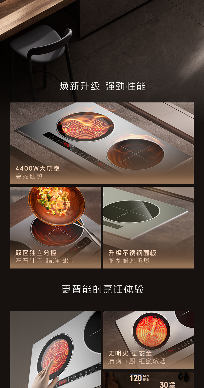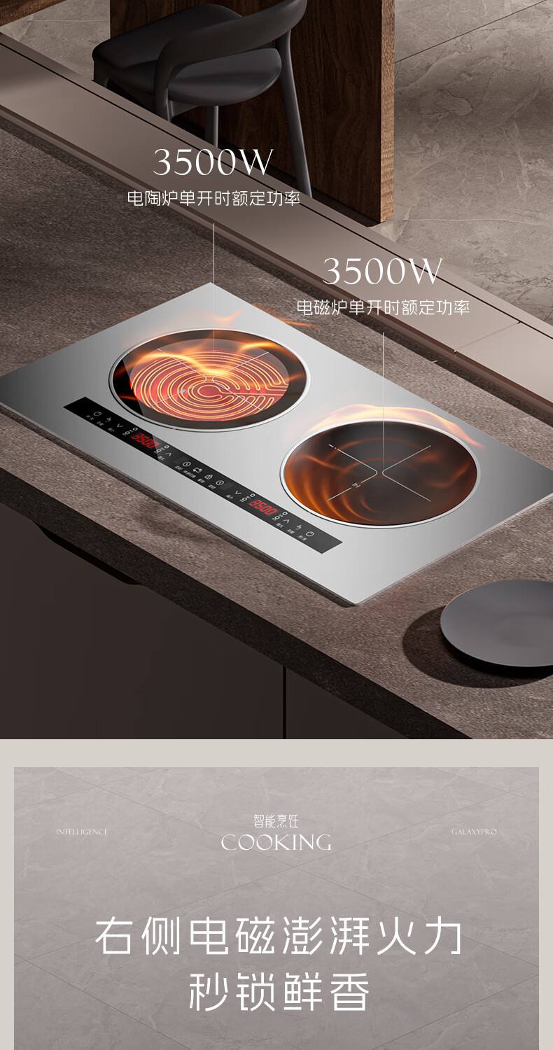 Entusiasta buena esposa Acero inoxidable 4400W Alta potencia Feroz Cocina de inducción plana de doble cabezal Estufa de cerámica eléctrica Freír en el hogar Escritorio Estufa integrada integrada Interacción inteligente persona-computadora Ahorro de energía Paquete de acero inoxidable - Izquierda Plana Electromagnética 3500W Derecha Plana Eléctrica Cerámica 3500W Somatosensorial inteligente (Control mutuo 4400W)