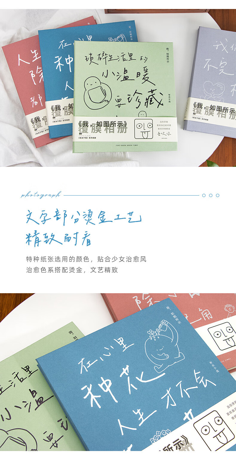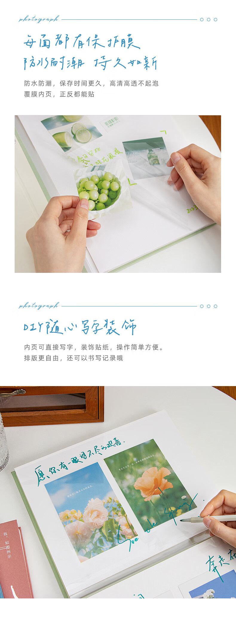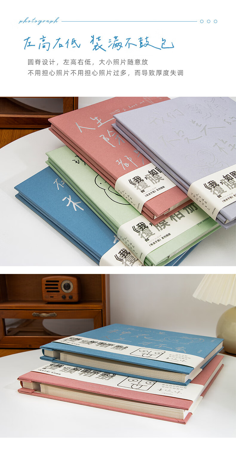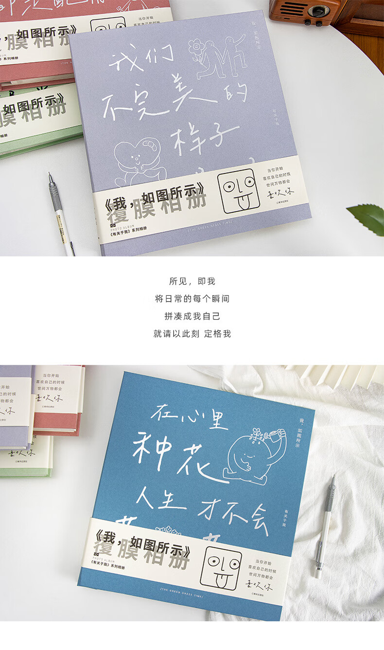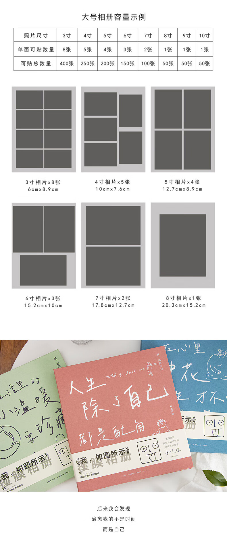 ZOCO相册收纳册火车票收纳册机票影集自粘式相册本覆膜毕业情侣家庭纪念册儿童宝宝成长影集相簿本收纳 轻盈绿【3-10寸50-400张照片】 【我,如图所示-系列相册】