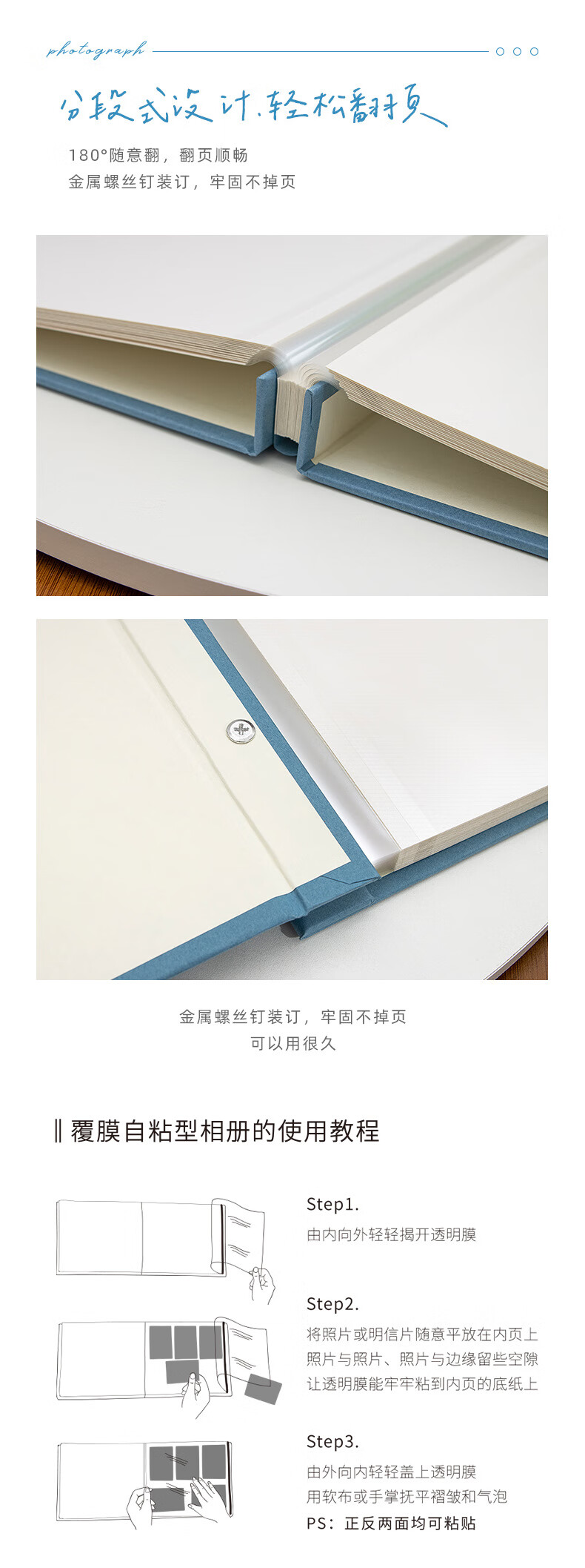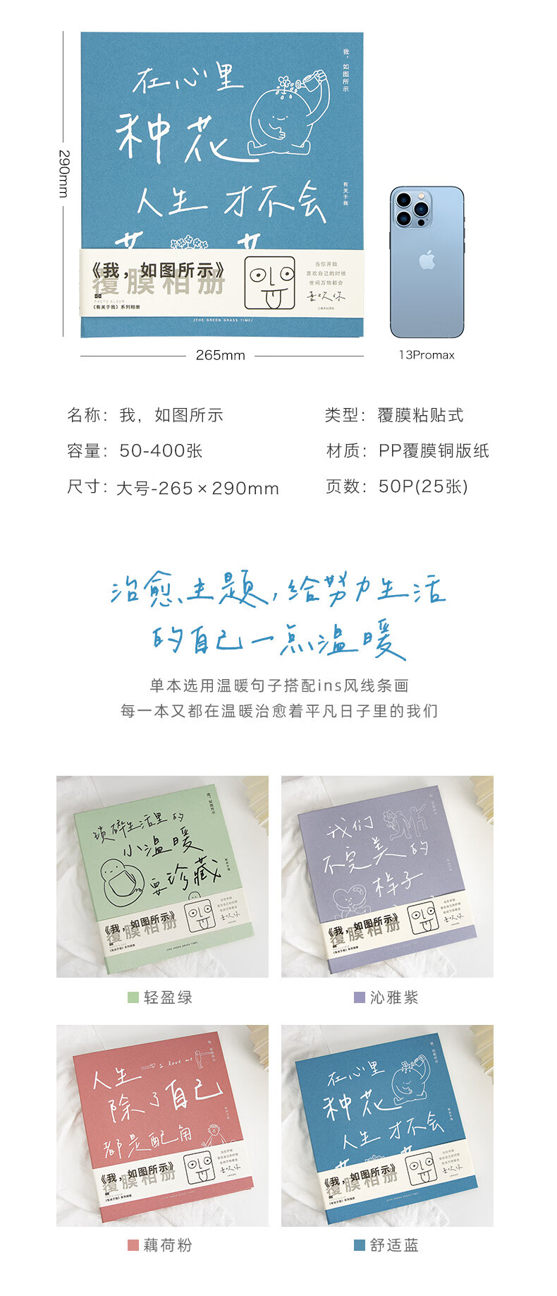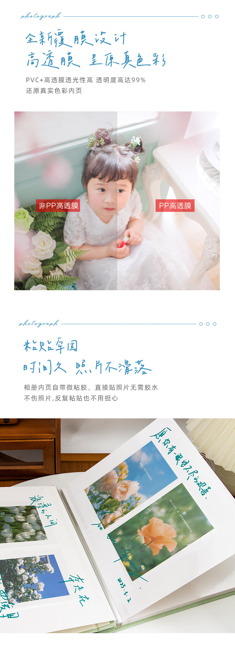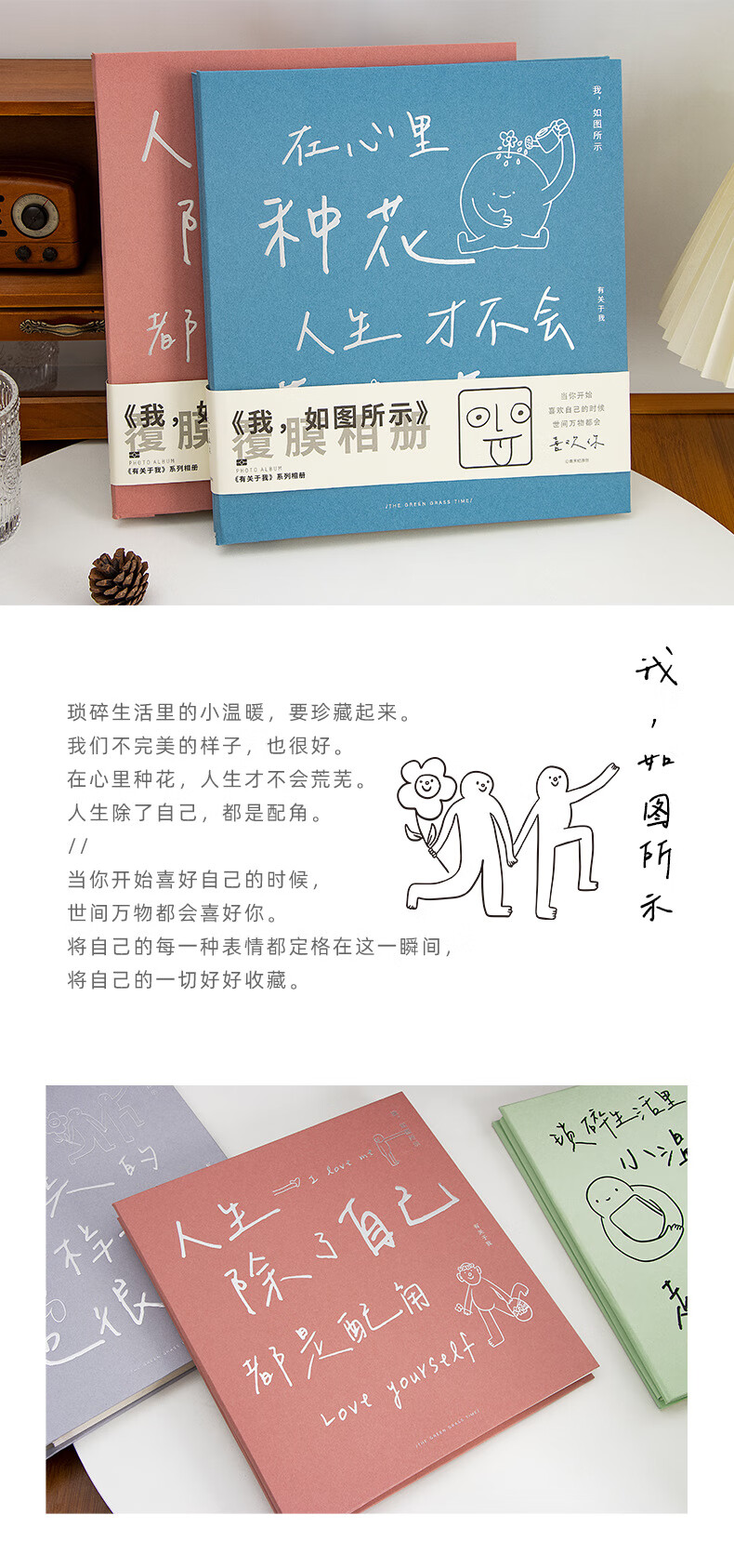 ZOCO相册收纳册火车票收纳册机票影集自粘式相册本覆膜毕业情侣家庭纪念册儿童宝宝成长影集相簿本收纳 轻盈绿【3-10寸50-400张照片】 【我,如图所示-系列相册】