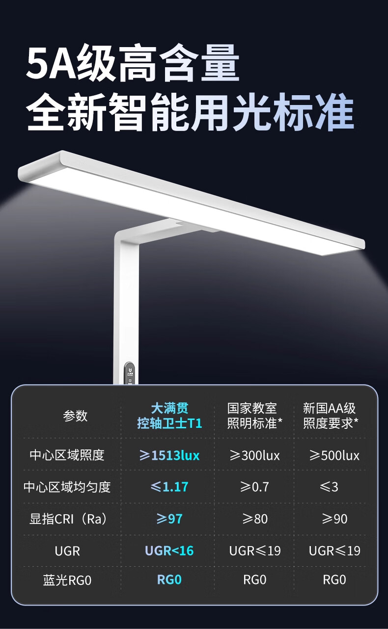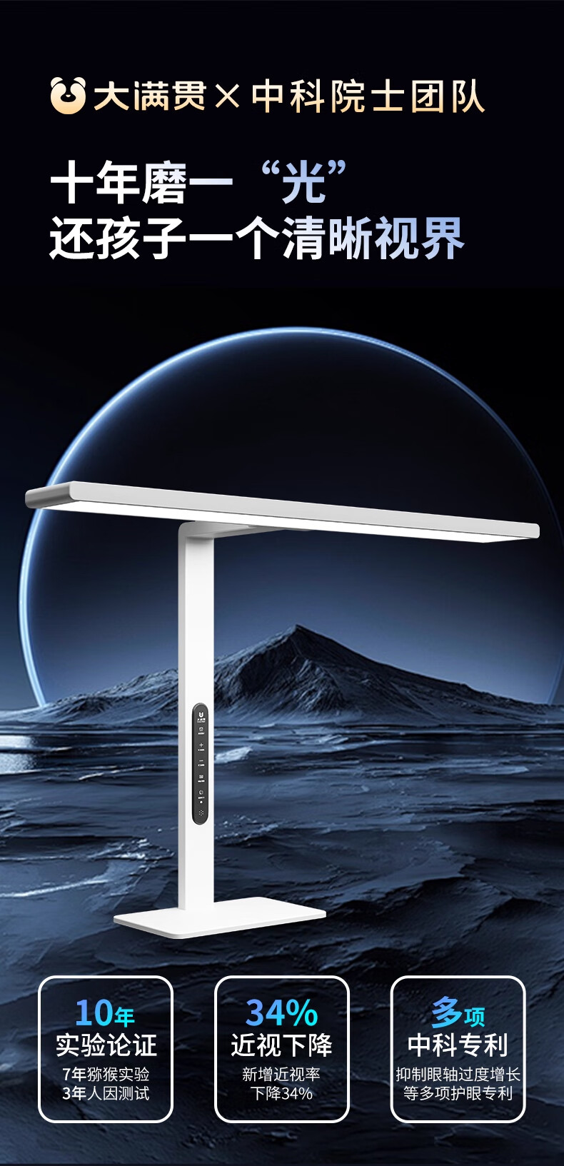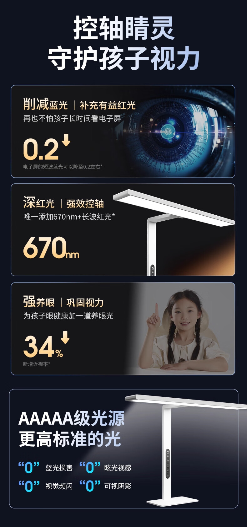 大满贯控轴卫士全光谱护眼桌面灯学生台灯护眼学习专用儿童防近视护眼灯 控轴卫士T1桌面大路灯