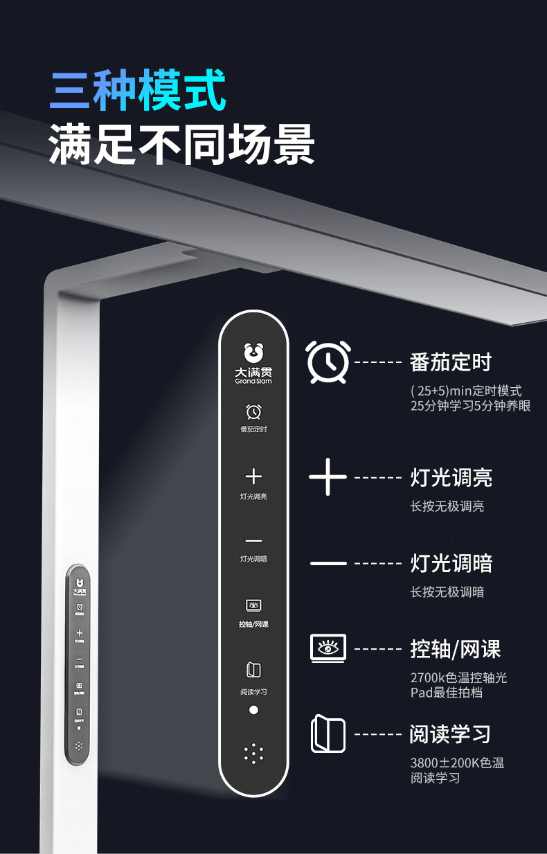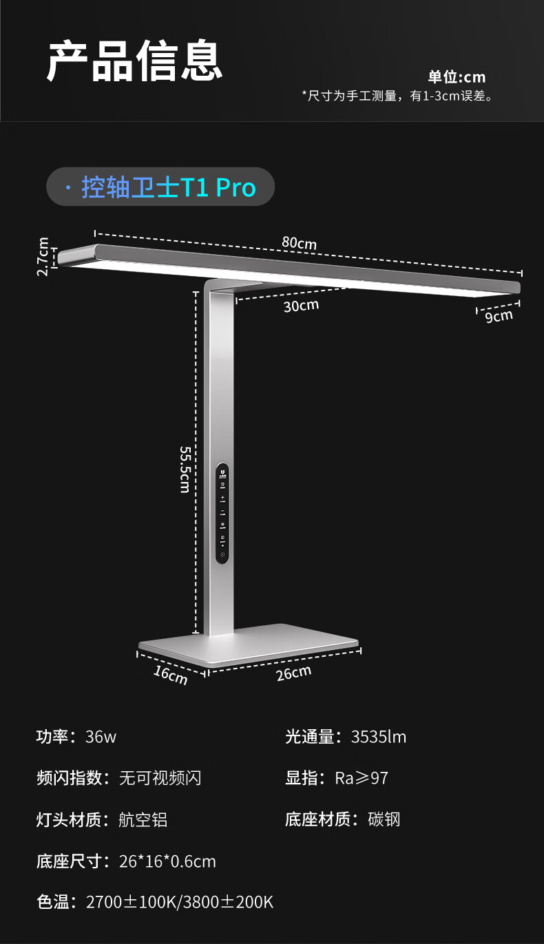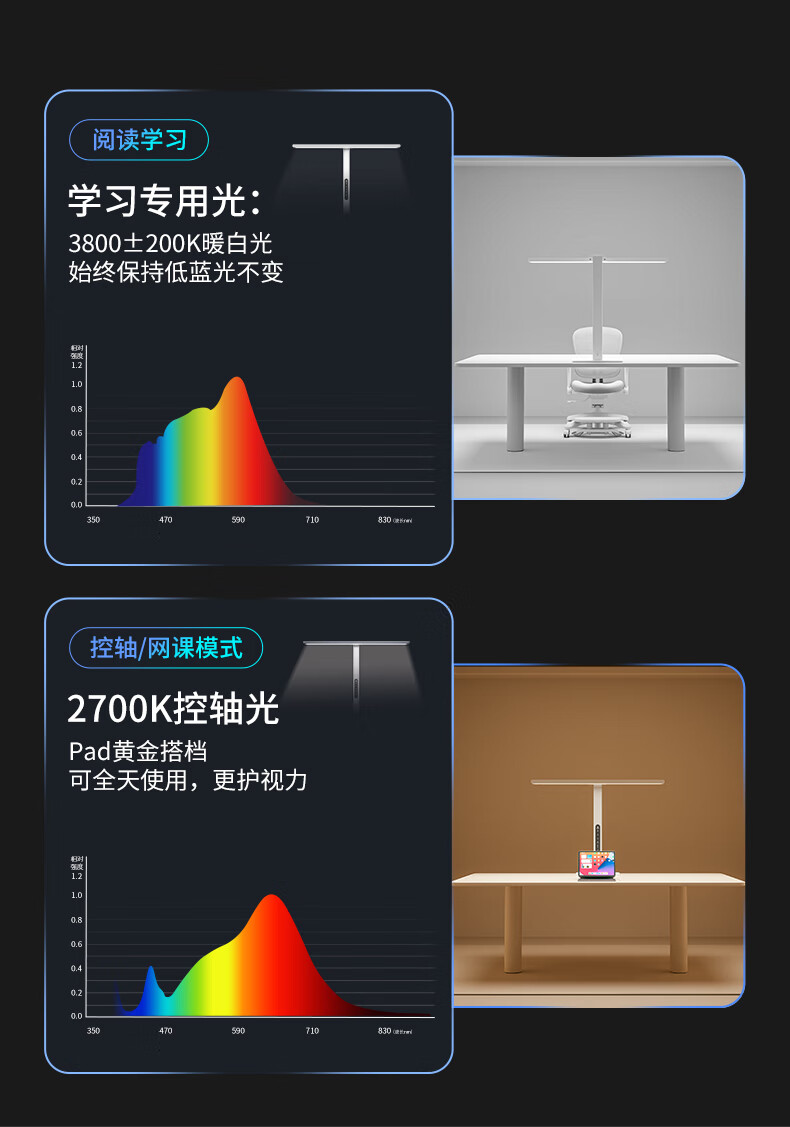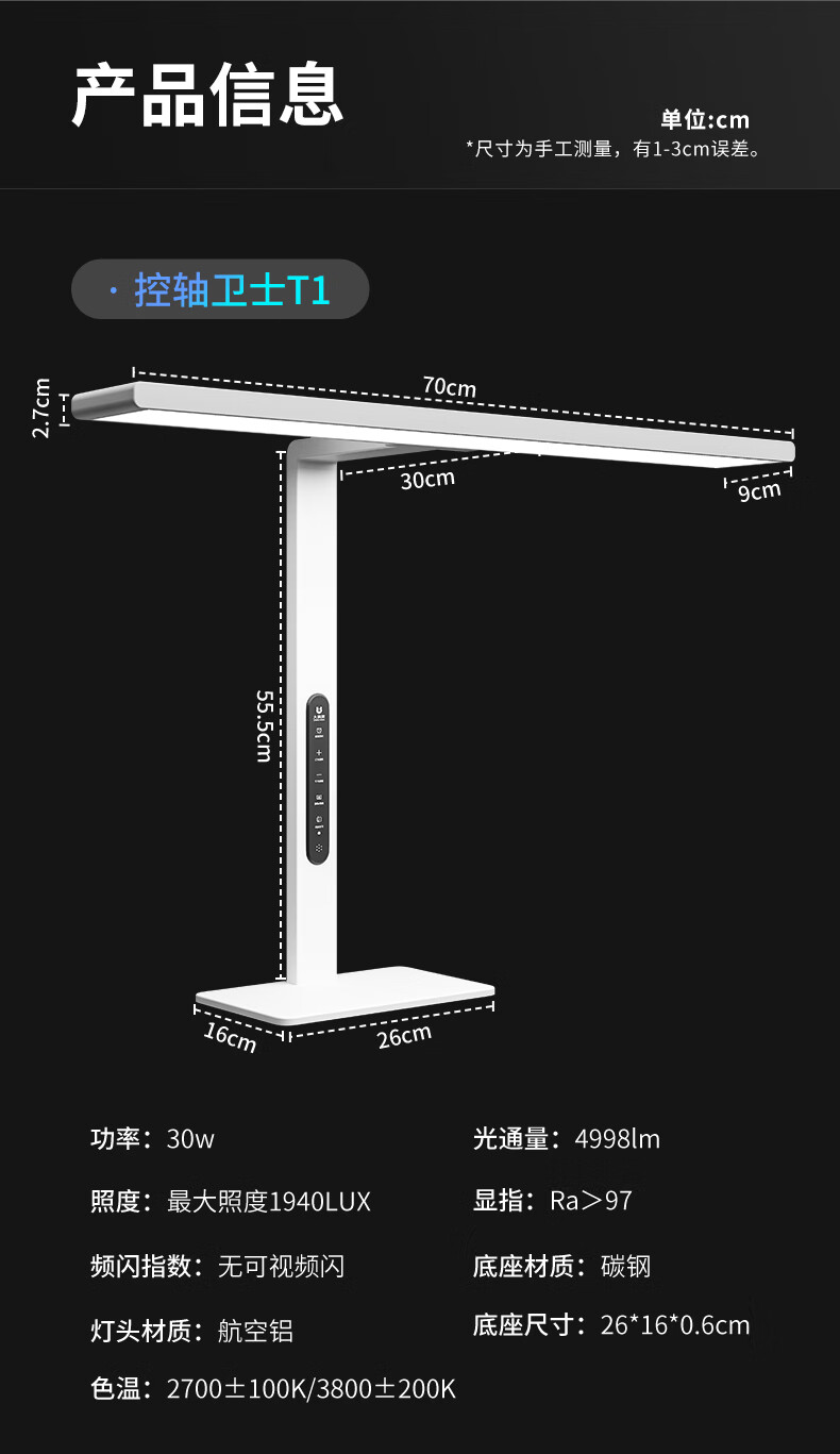 大满贯控轴卫士全光谱护眼桌面灯学生台灯护眼学习专用儿童防近视护眼灯 控轴卫士T1桌面大路灯