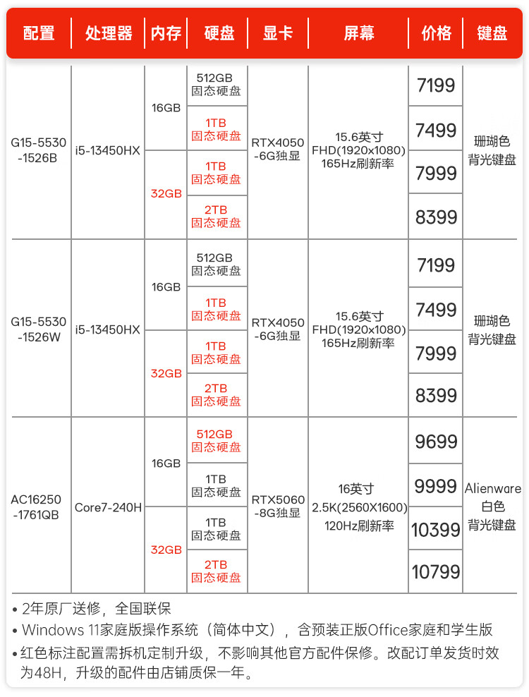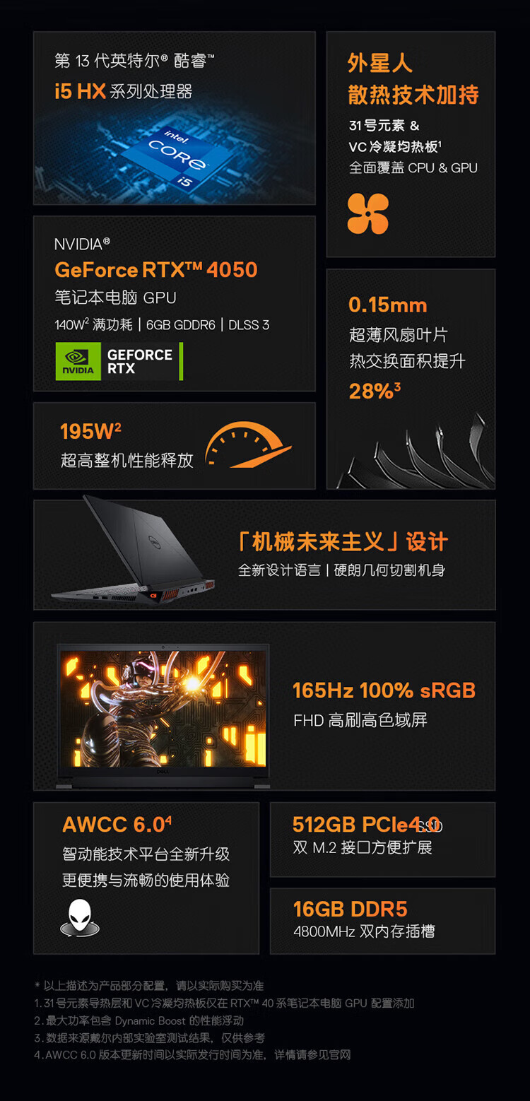 戴尔(DELL)游匣g15 15.6英寸酷睿7外星人高性能大学生电竞游戏本rtx5060独立显卡笔记本电脑设计师办公全能本 i5-13450HX RTX4050-6G 经典黑 16G DDR5内存 512G高速固态【独显】