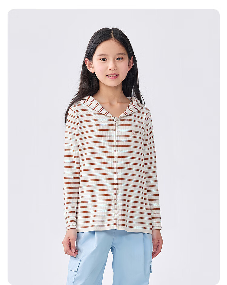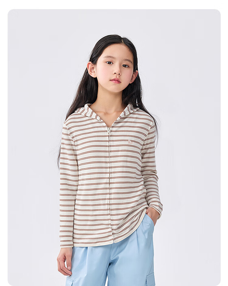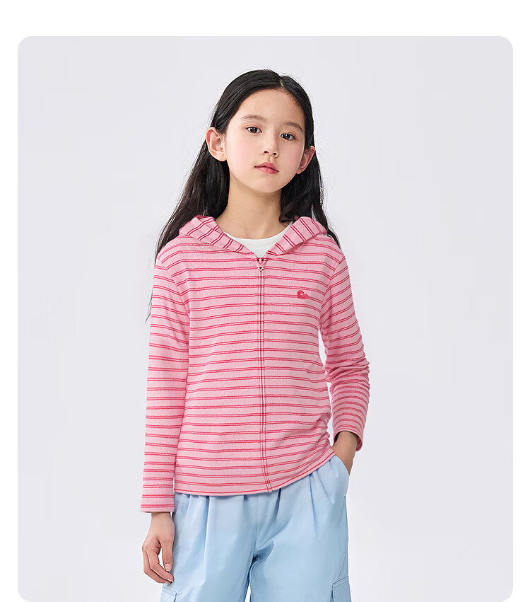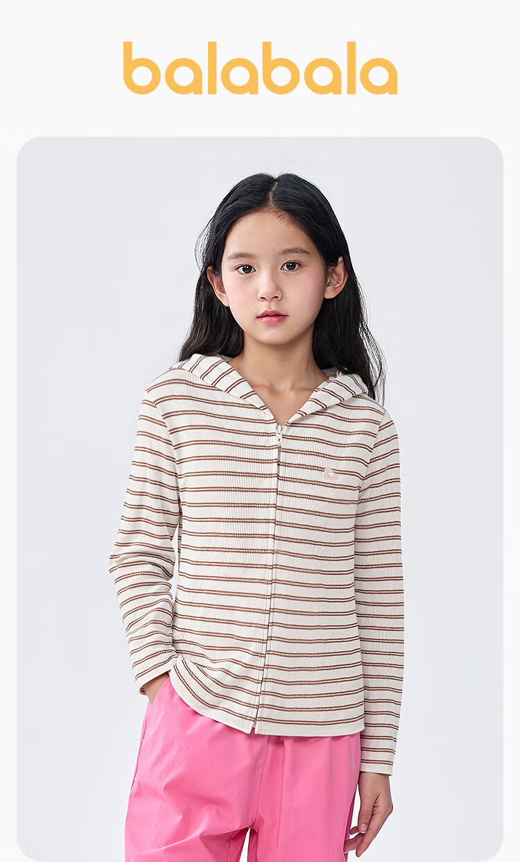 巴拉巴拉童装女童长袖t恤儿童2025新款秋装大童条纹开衫洋气上衣 白红色调00416 110