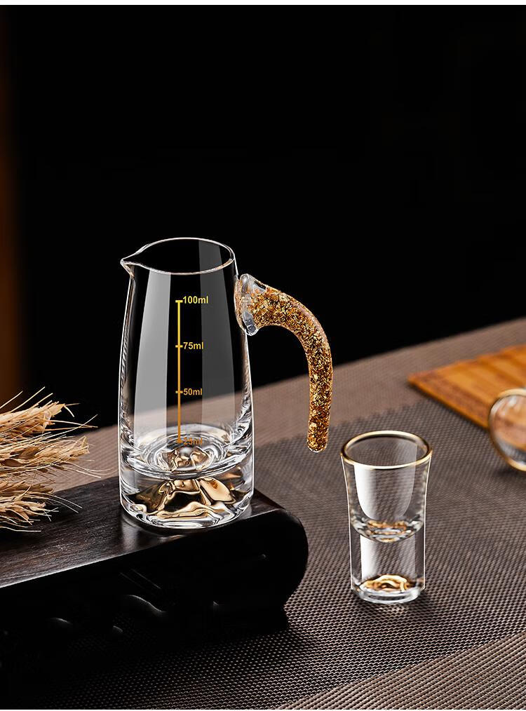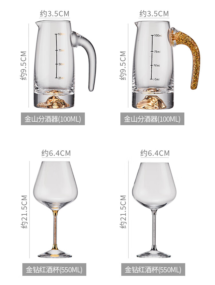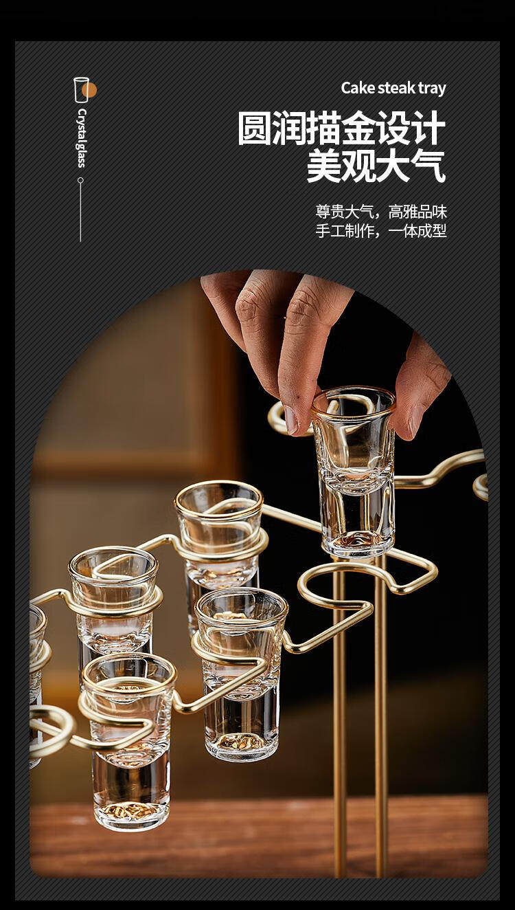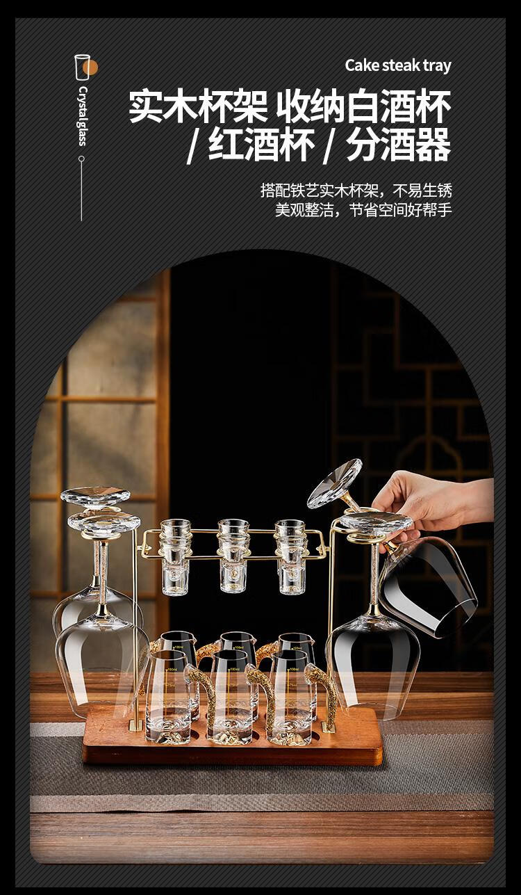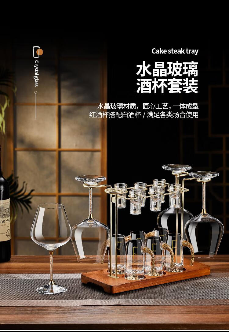 奇立彩白酒杯加红酒杯家用套装分酒器轻奢高档金箔金山架子倒挂高脚杯子 金钻红酒杯550mlX6+金箔金山白酒