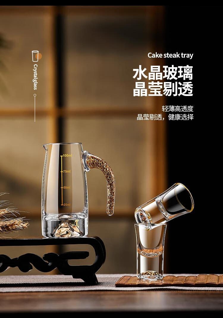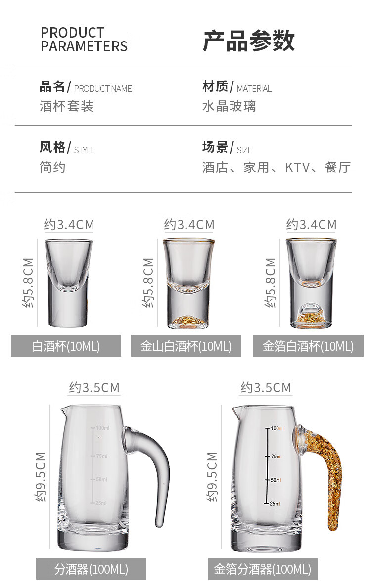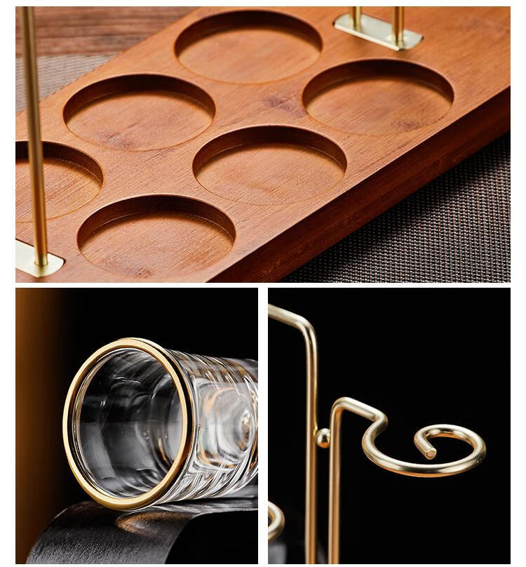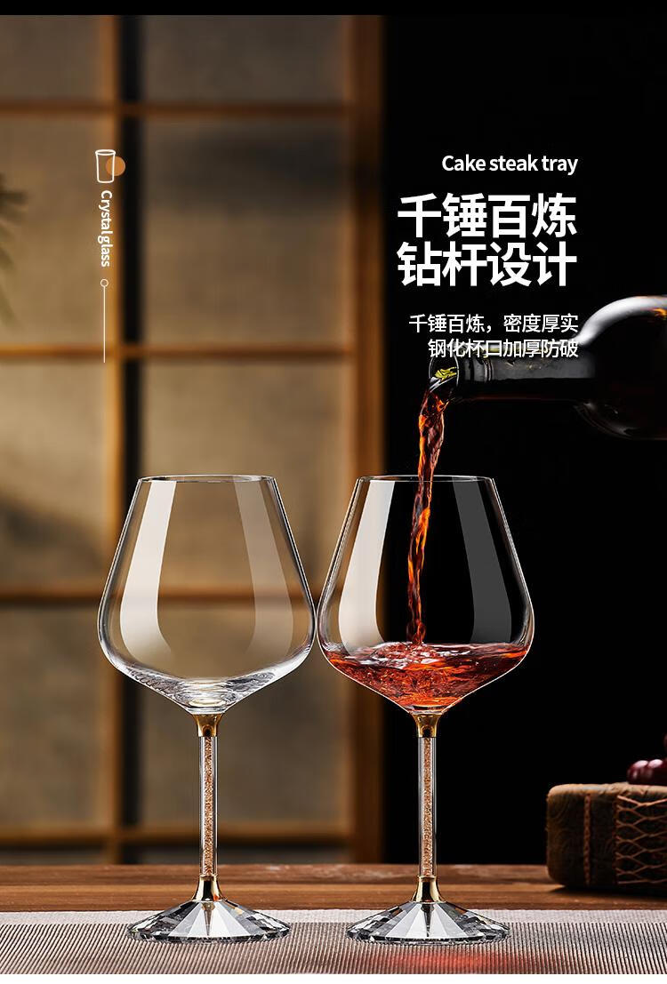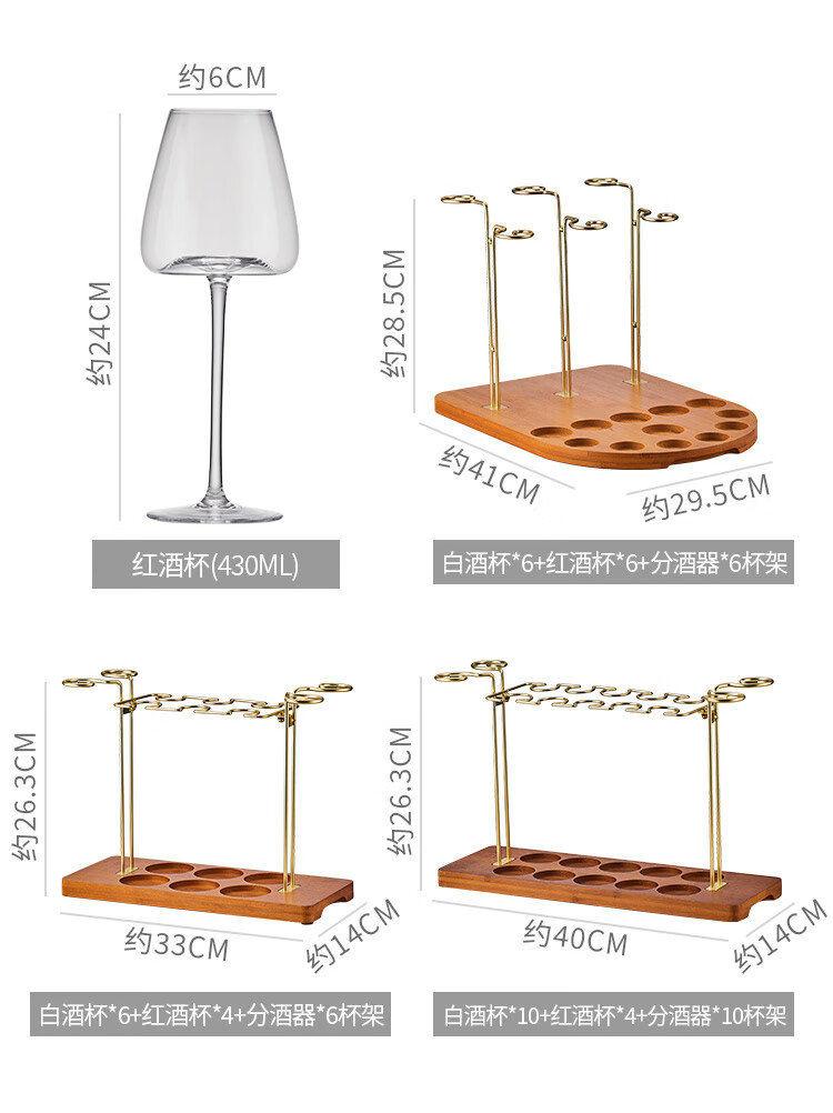 奇立彩白酒杯加红酒杯家用套装分酒器轻奢高档金箔金山架子倒挂高脚杯子 金钻红酒杯550mlX6+金箔金山白酒
