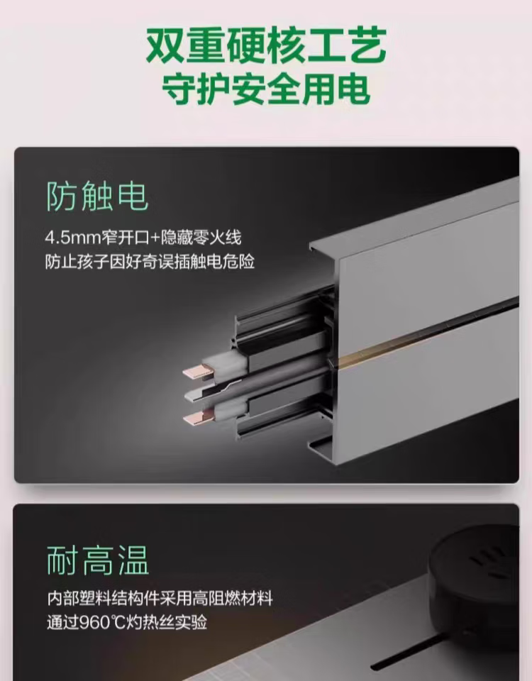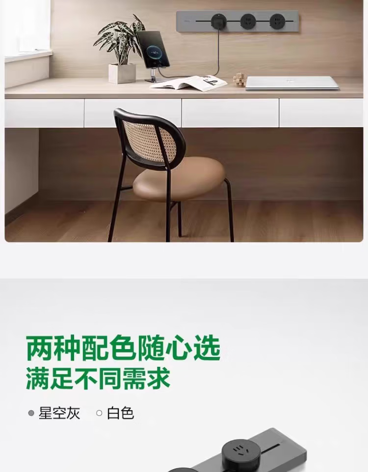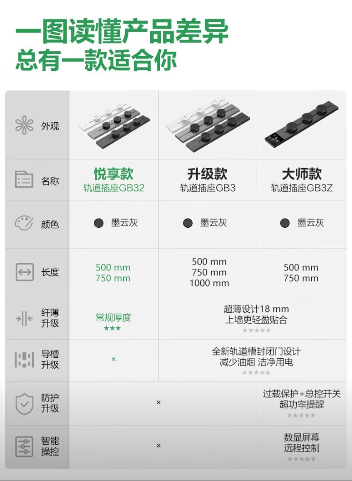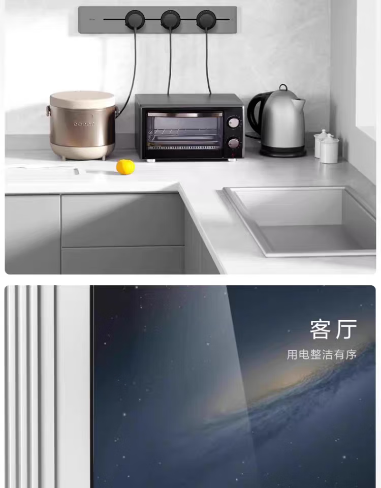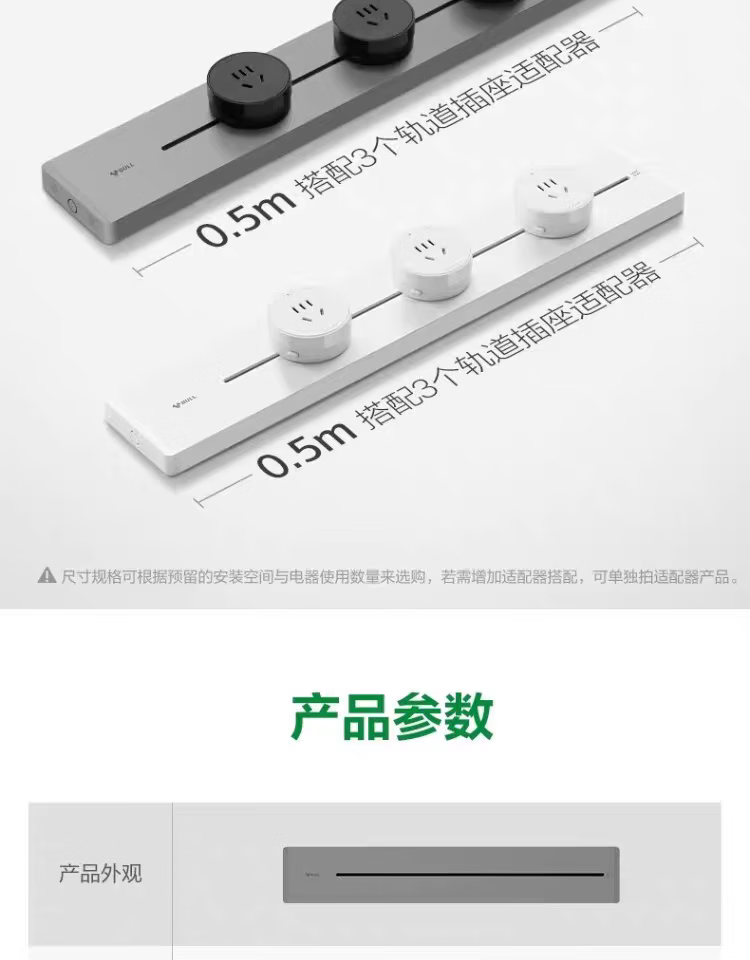 公牛GB32/GB3Z明装轨道插座可移动轨道插座电源厨房餐边柜轨道插 【公牛GB32】50cm+3个五孔墨云灰