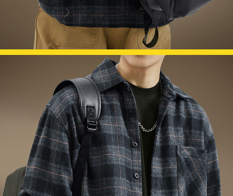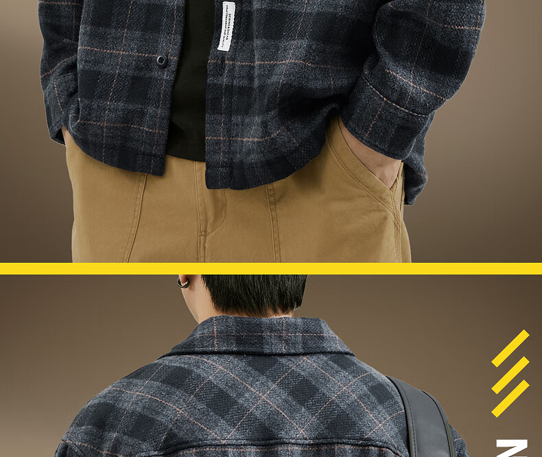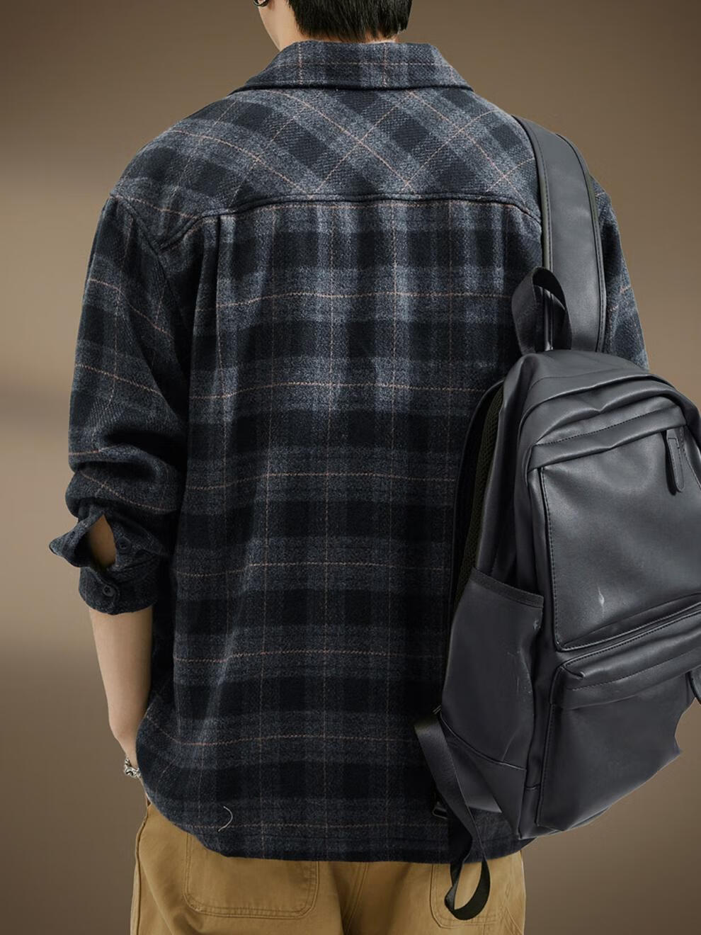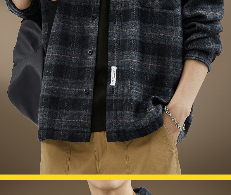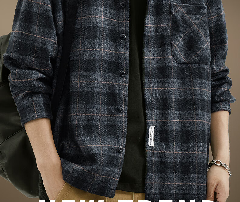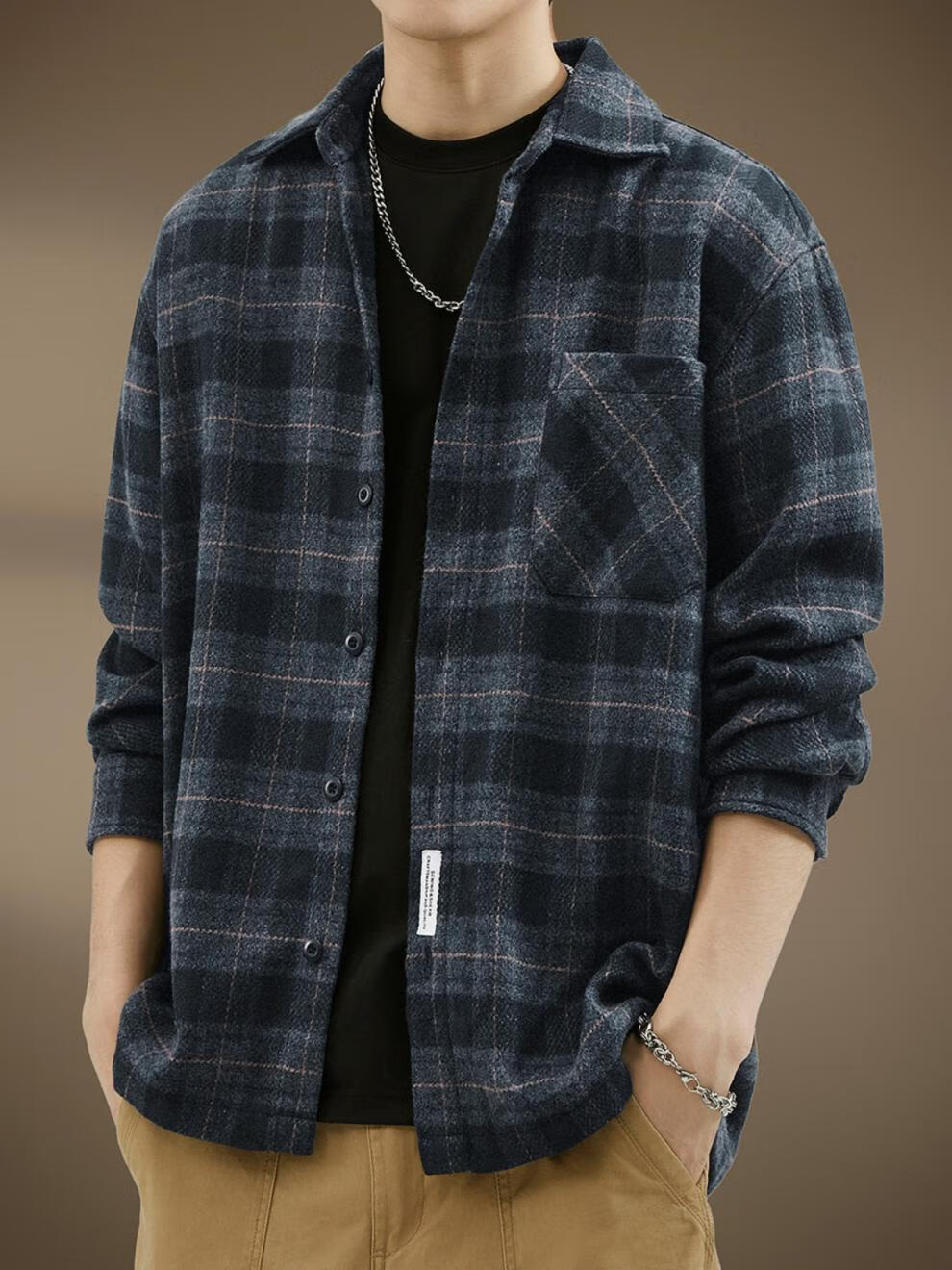 Yazhen high-end Japanese retro brushed plaid long-sleeved shirt men's spring and autumn casual loose heavyweight work shirt outer coffee color XL