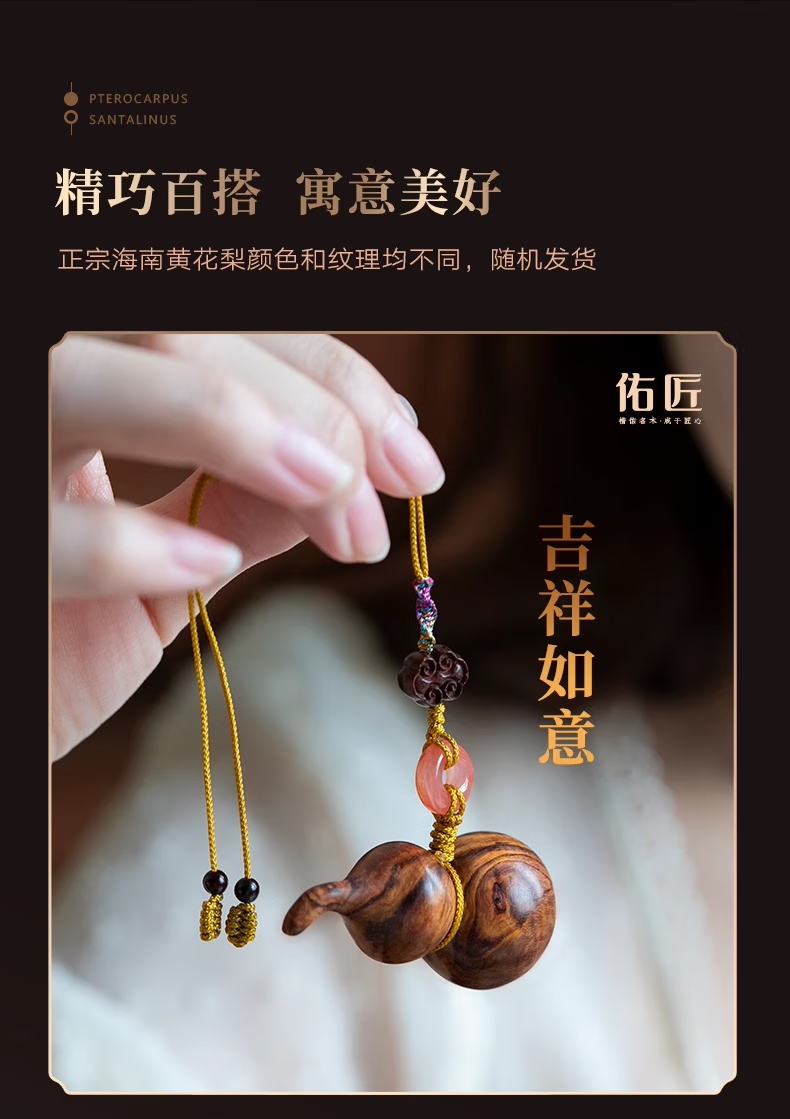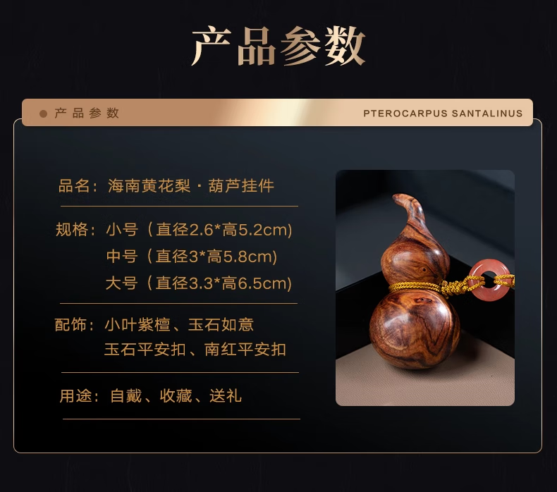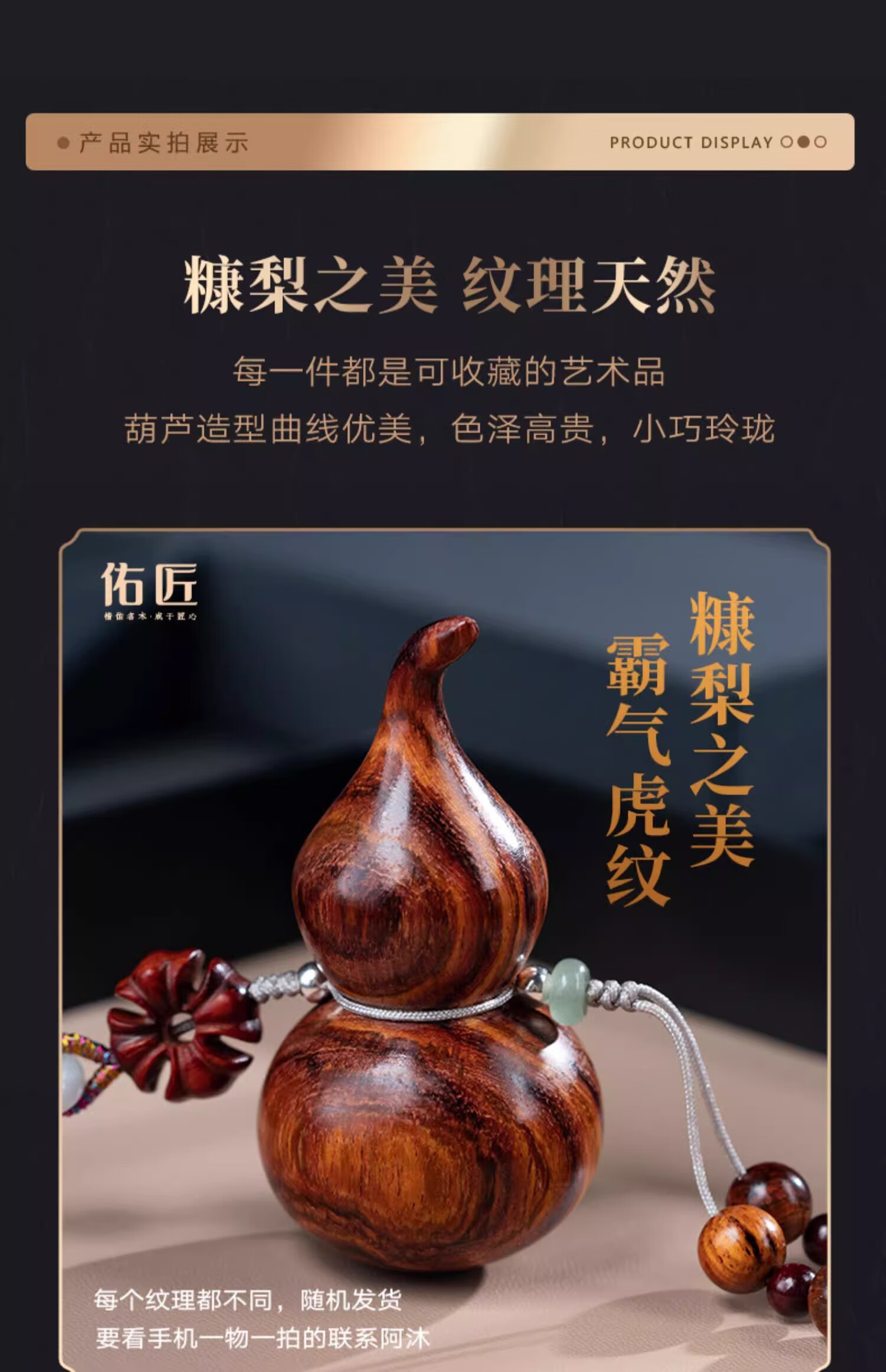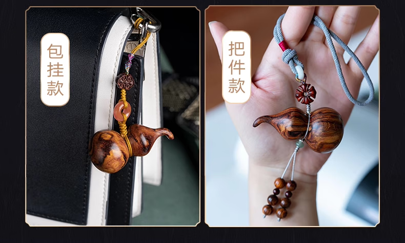 佑匠海南黄花梨葫芦手把件对眼鬼脸纹车挂包挂摆件文玩工艺品生日礼物 款式三(大号直径3.3*高6.5cm)