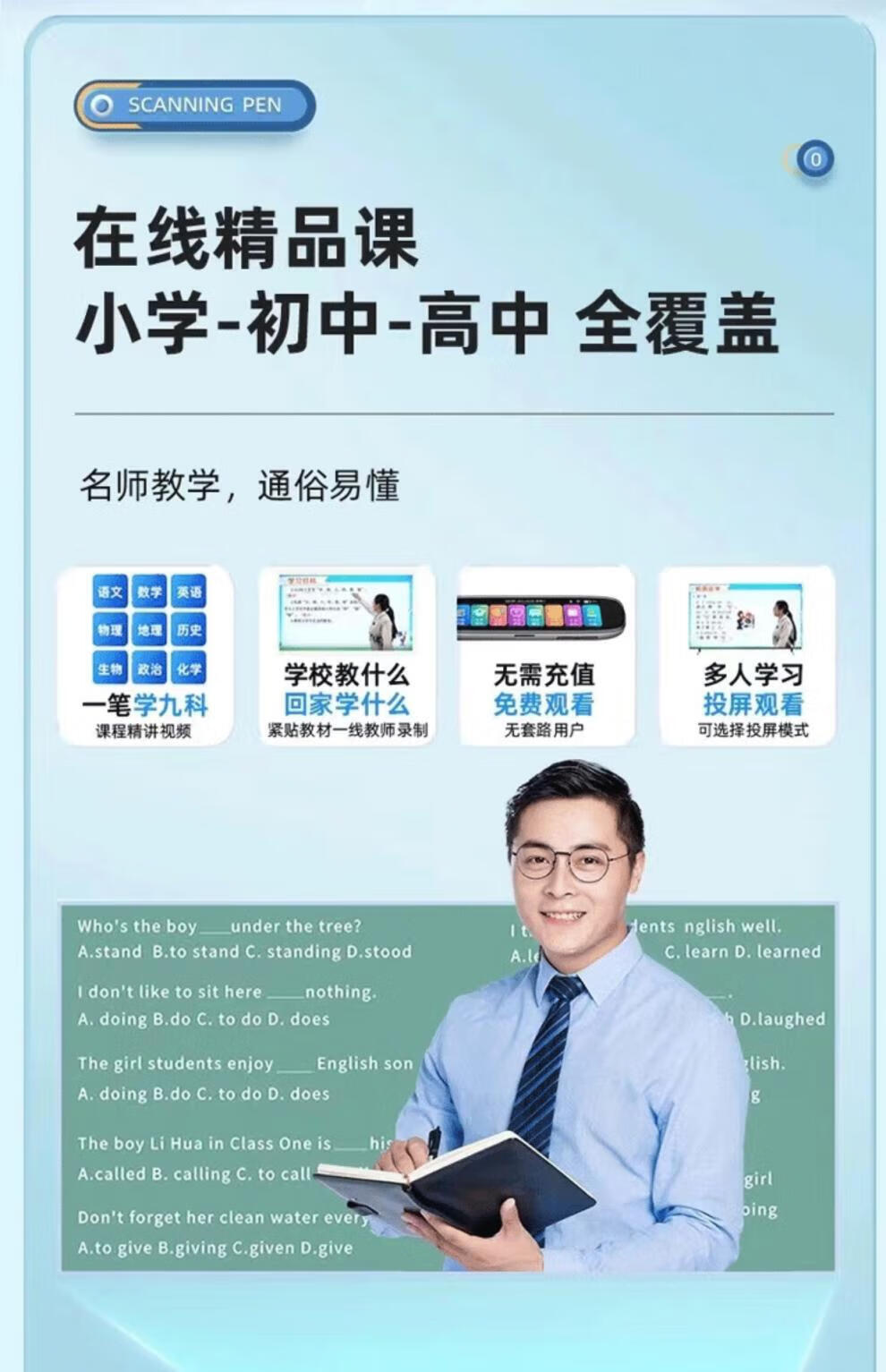 有道词典笔a6pro点读笔全科扫描笔小初高翻译笔通用英语学习神器 黑色3.69寸离线版/全科学习/不限书籍/全科课程