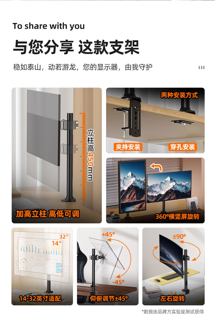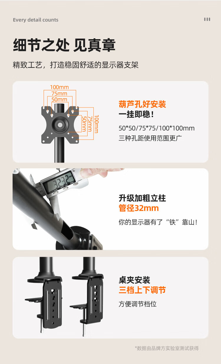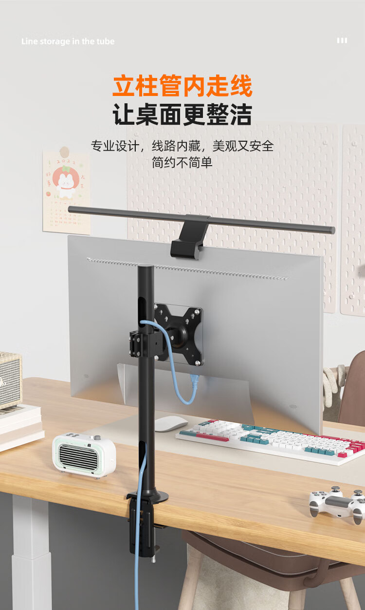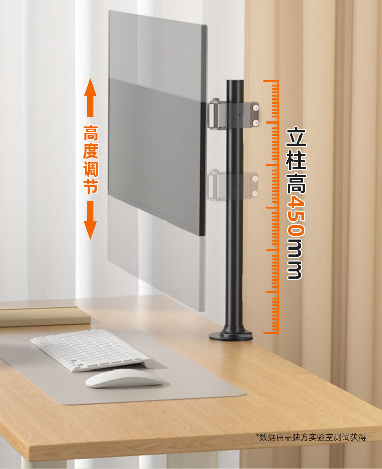 恒变通用显示器支架臂桌面显示屏增高屏幕支撑架加高立柱vesa孔壁挂24/27/32/34英寸可倒挂 夹持/穿孔 75cm高立柱丨17-34英寸