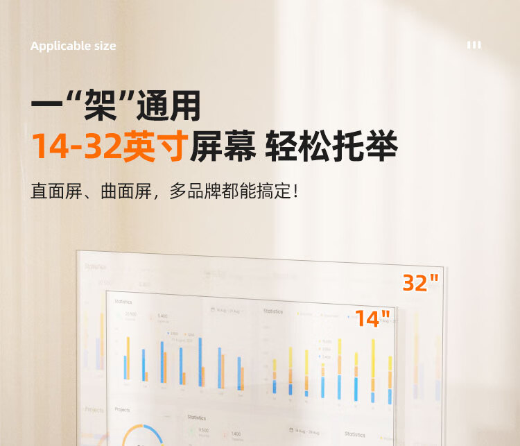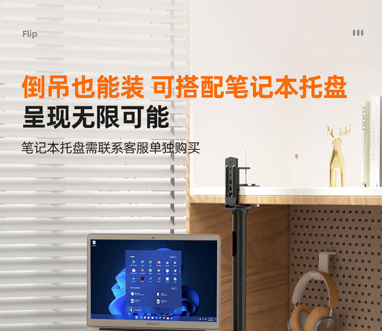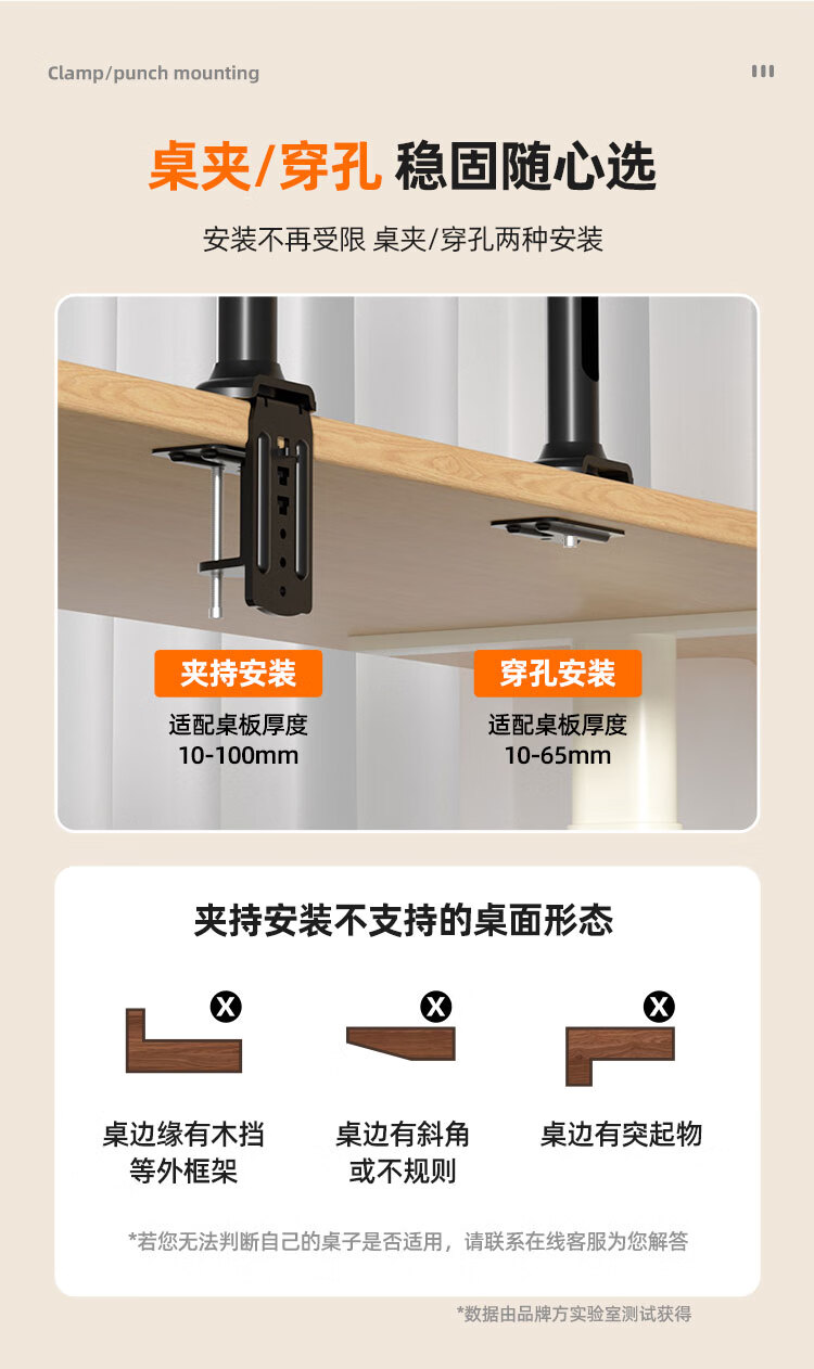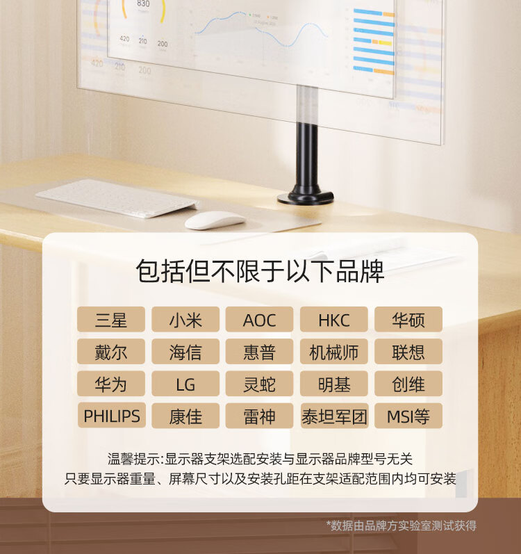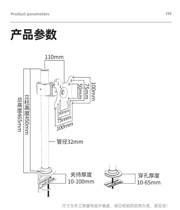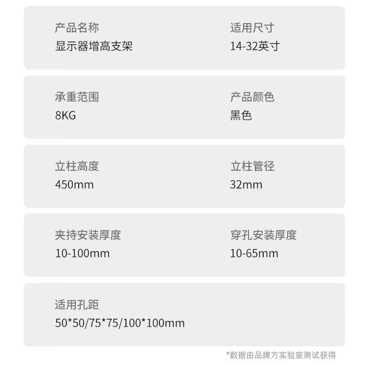恒变通用显示器支架臂桌面显示屏增高屏幕支撑架加高立柱vesa孔壁挂24/27/32/34英寸可倒挂 夹持/穿孔 75cm高立柱丨17-34英寸
