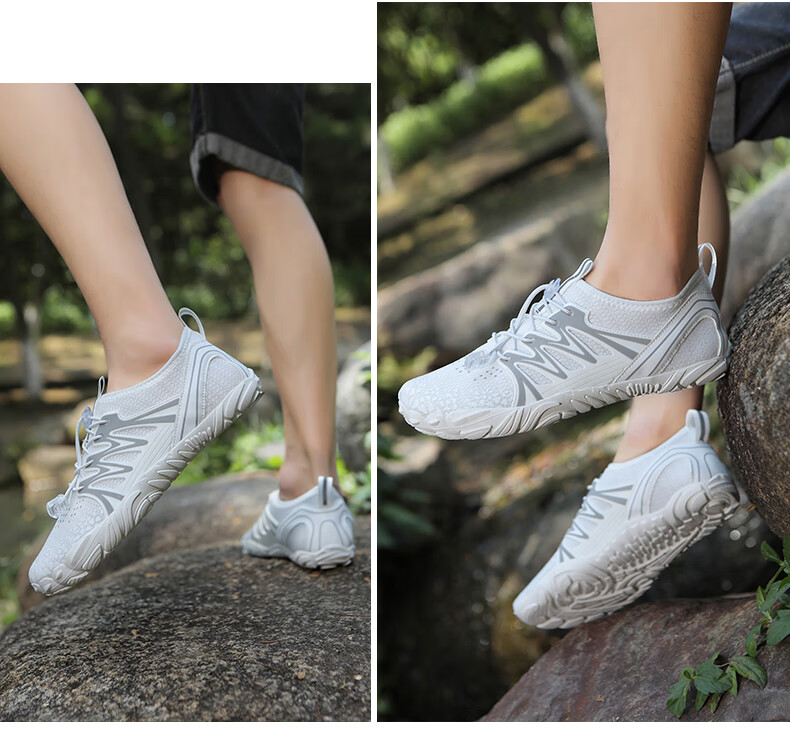 何佳功防割溯溪鞋男女涉水鞋厚底户外钓鱼徒步登山鞋防滑透气浮潜沙滩鞋 白色A616加厚底+排水孔 35