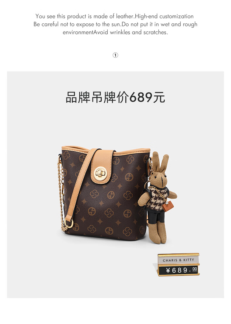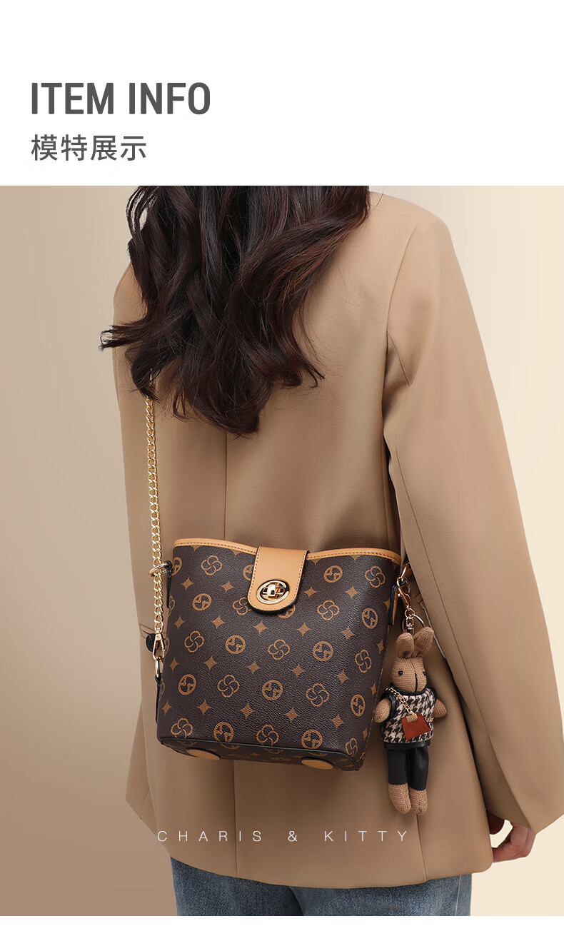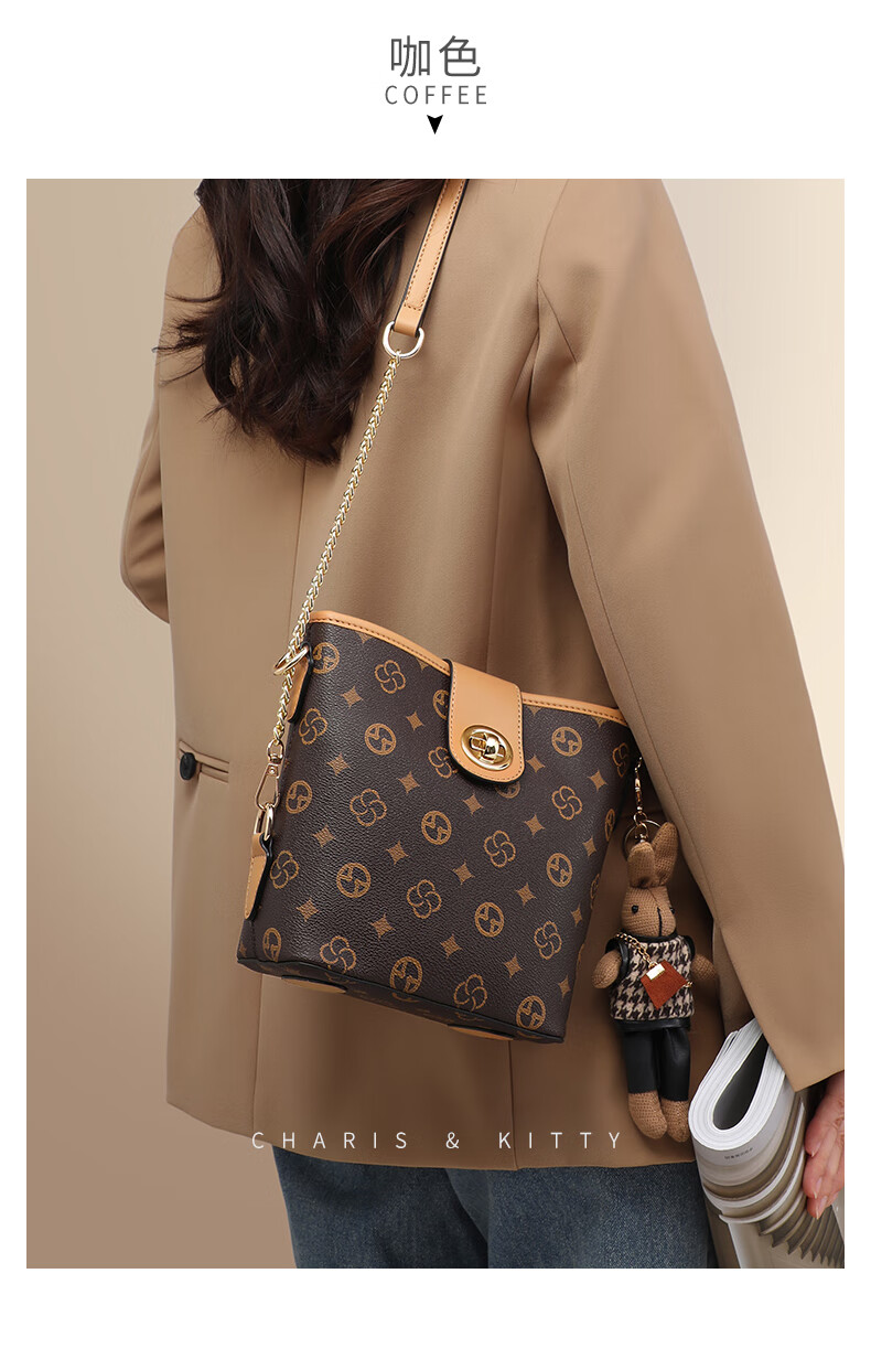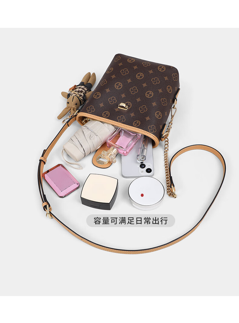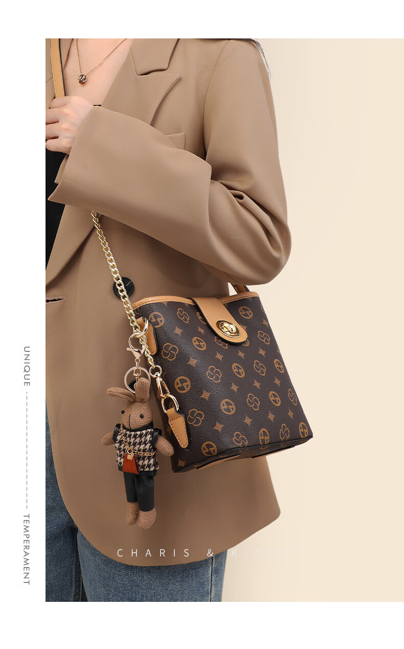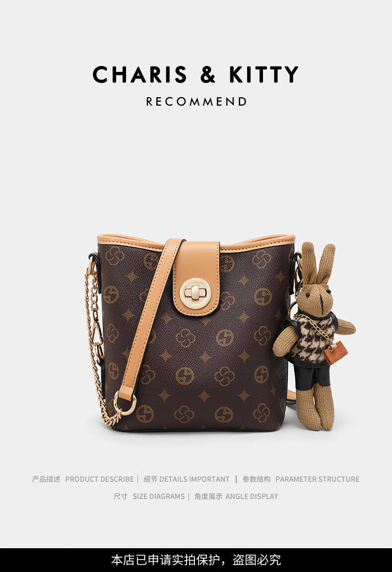 CharisKitty小c&k包包女款2025年新款通勤水桶包单肩斜挎女包生日圣诞节礼物 CK女包-咖色【送女友老婆女生礼物走心】