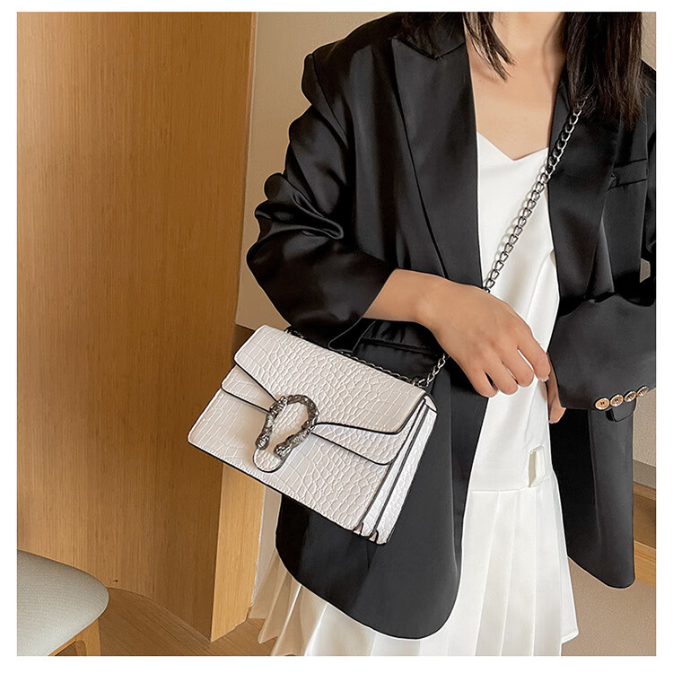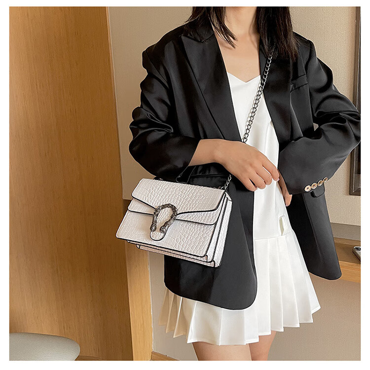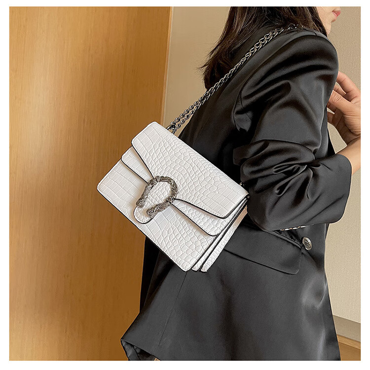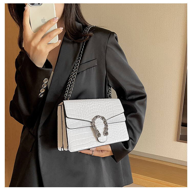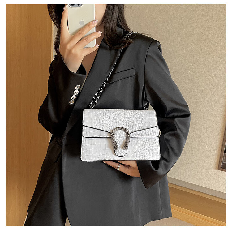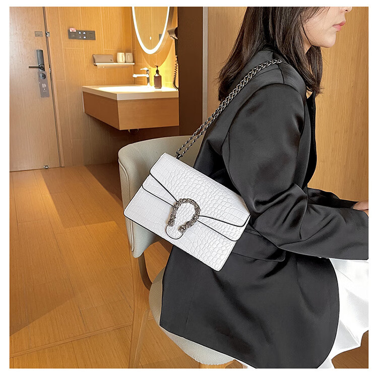 MK MILA2025新款女包复古潮流链条单肩包女时尚简约斜挎小方包 白色