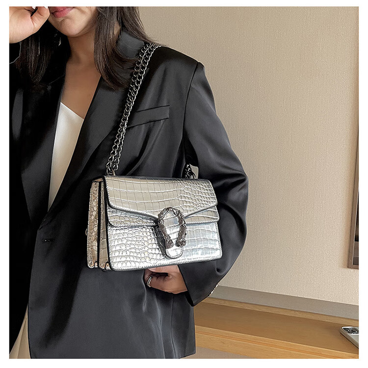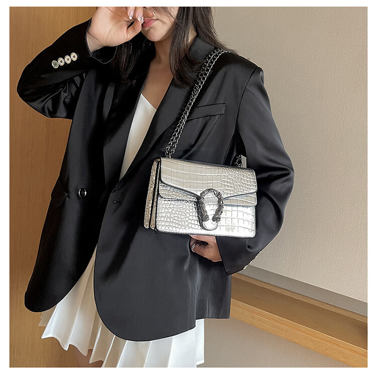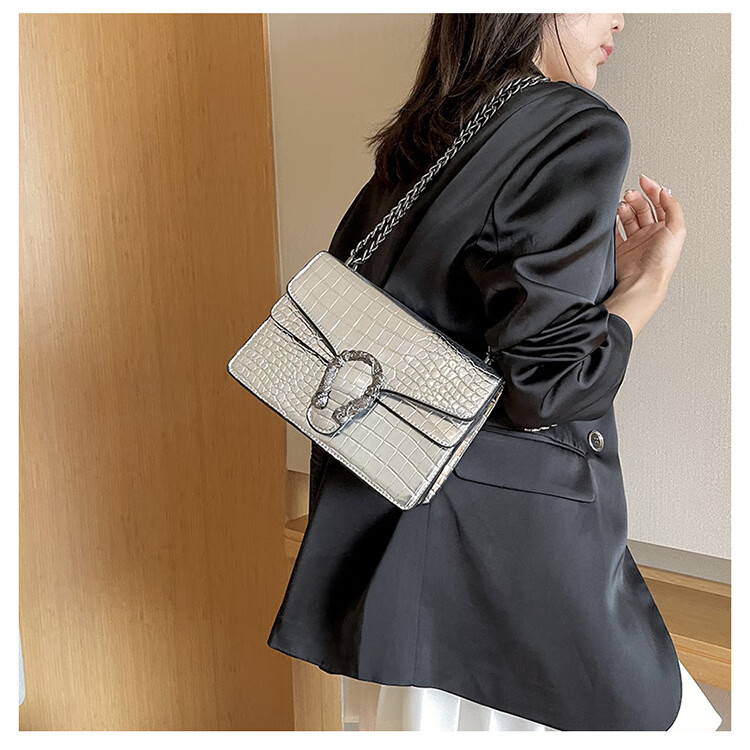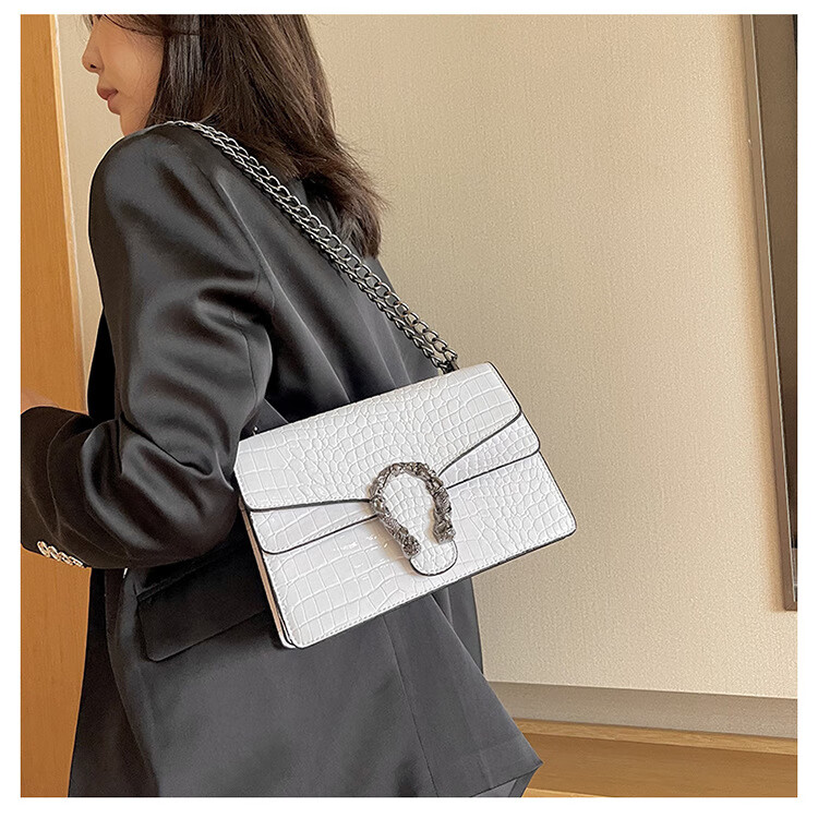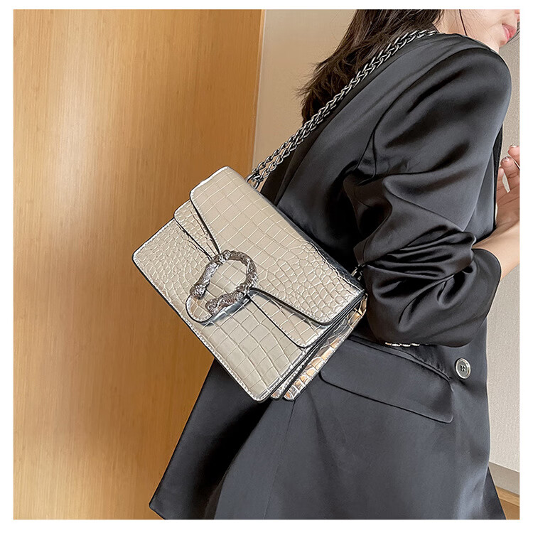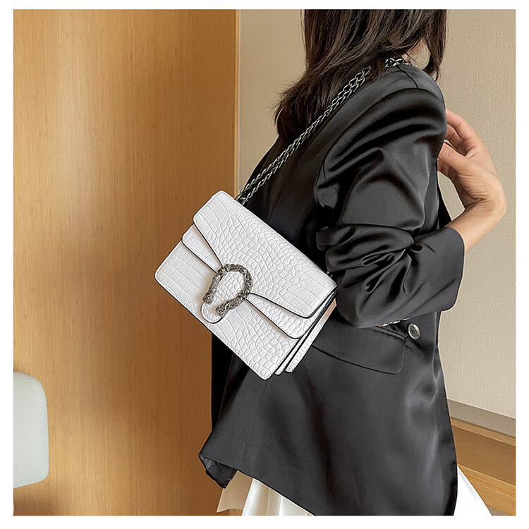 MK MILA2025新款女包复古潮流链条单肩包女时尚简约斜挎小方包 白色