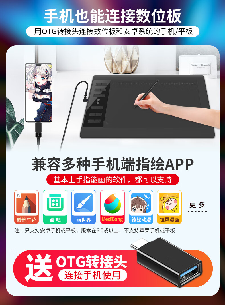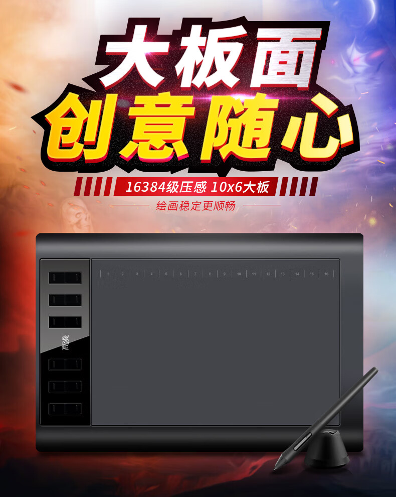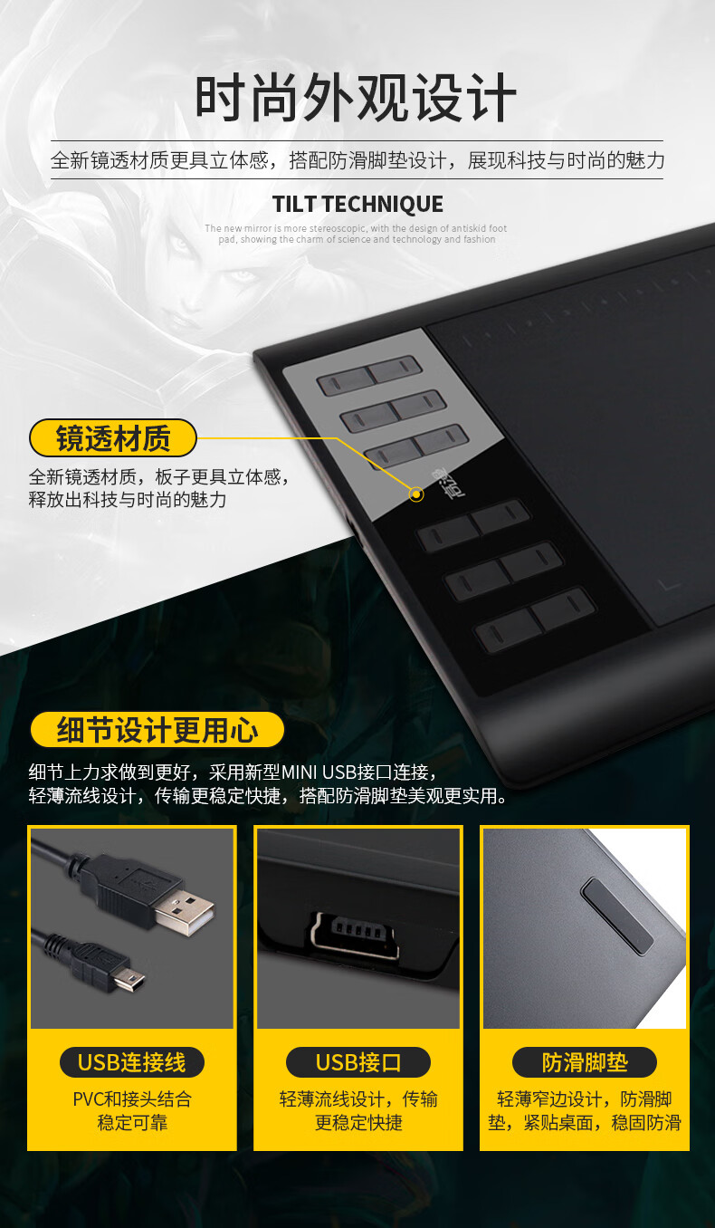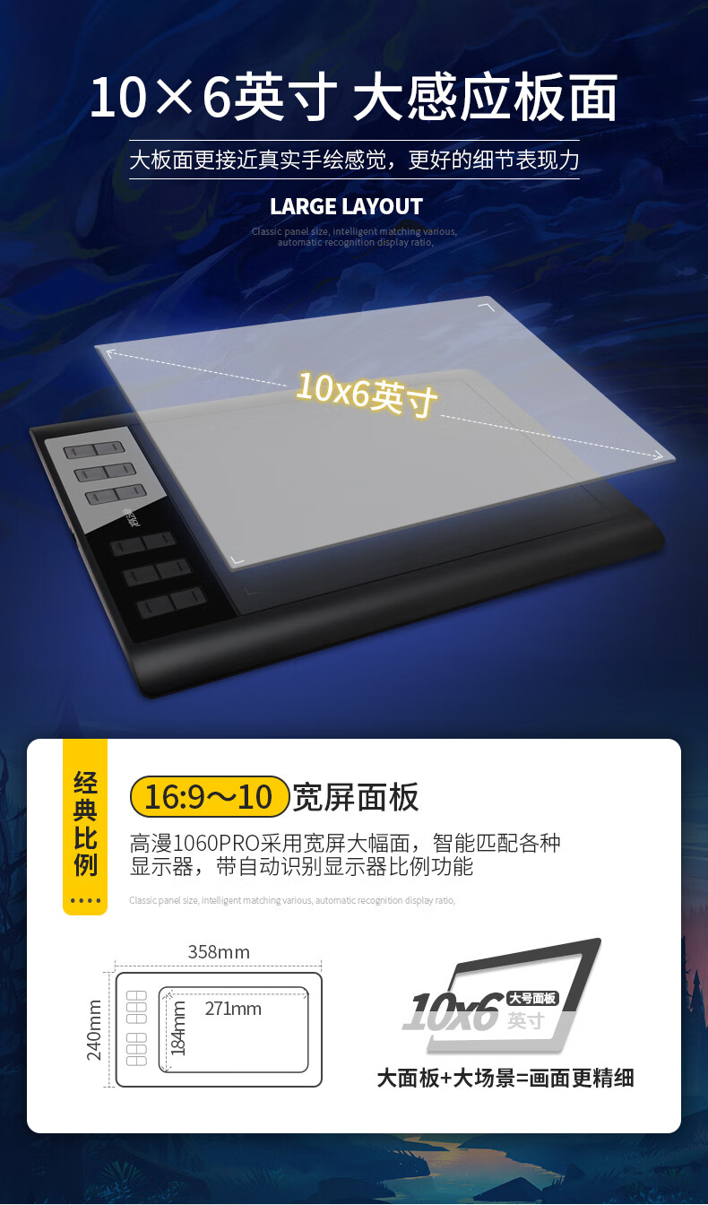 高漫1060PRO数位板手绘电脑绘图网课手写板字可连手机电子绘画板 黑色套3