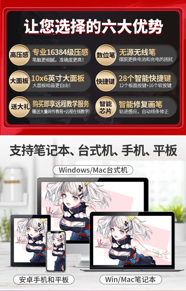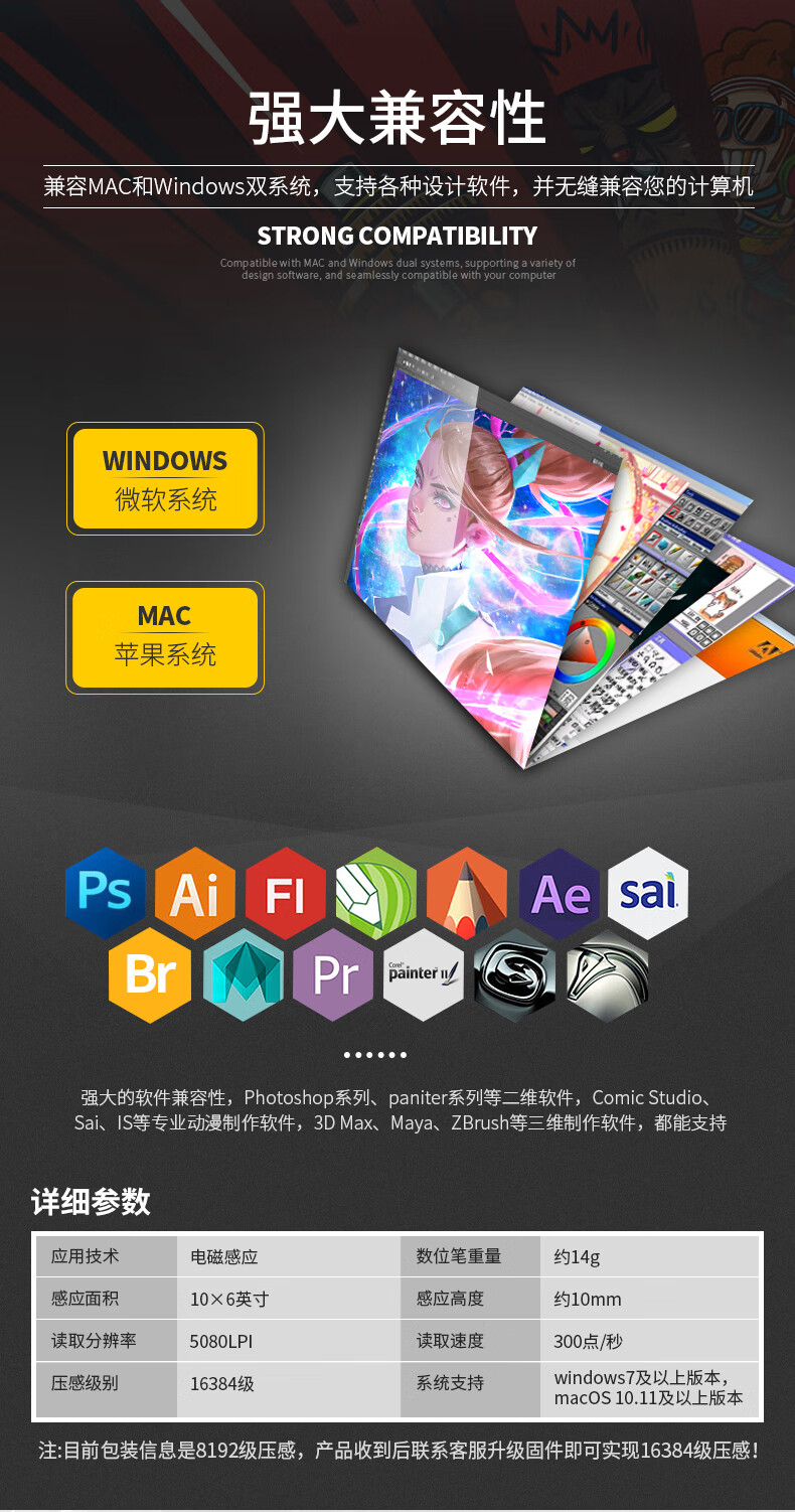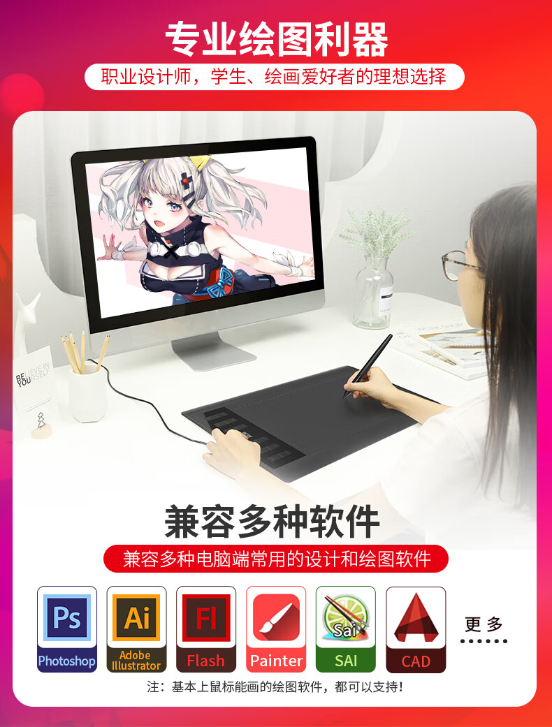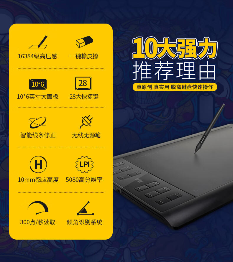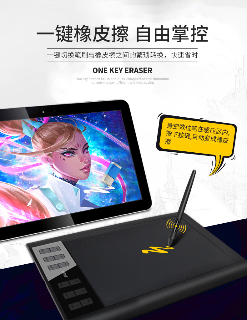 高漫1060PRO数位板手绘电脑绘图网课手写板字可连手机电子绘画板 黑色套3