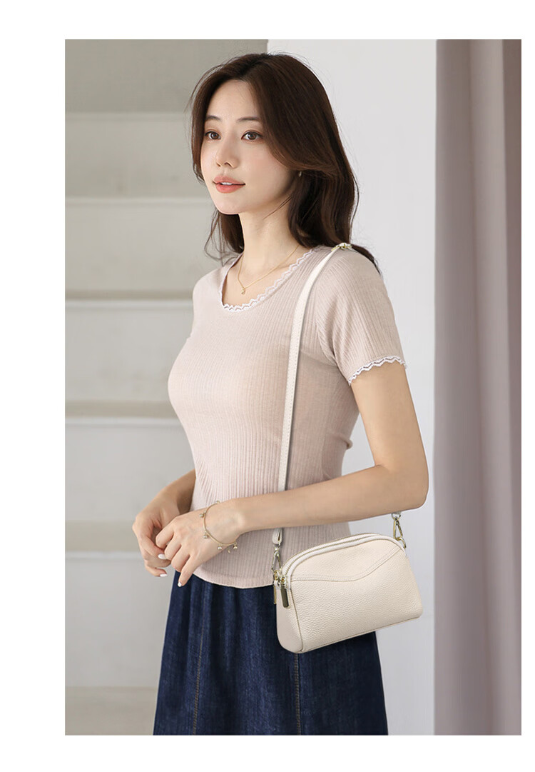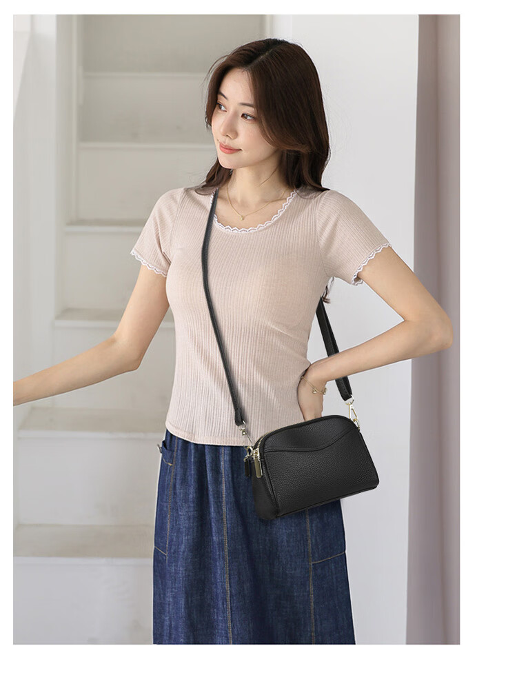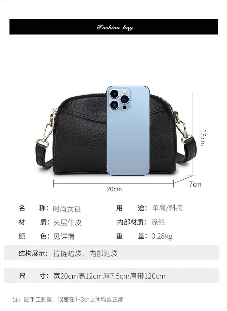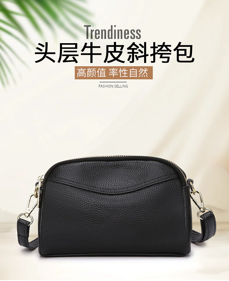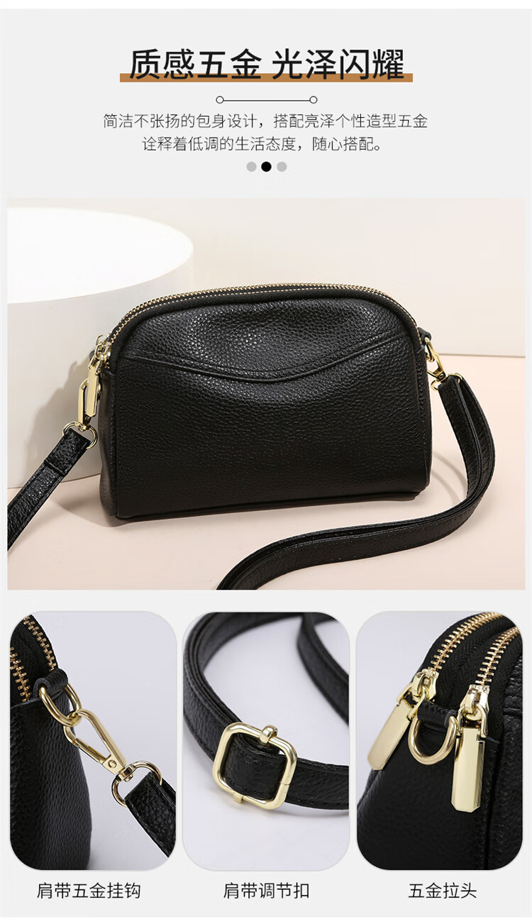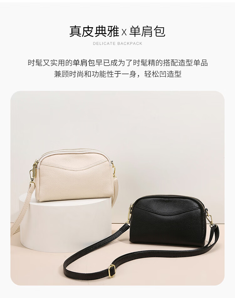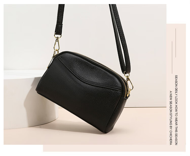 casa-kupsCK小包包女软牛皮2025新款时尚真皮单肩小斜挎包百搭贝壳包质感 黑色