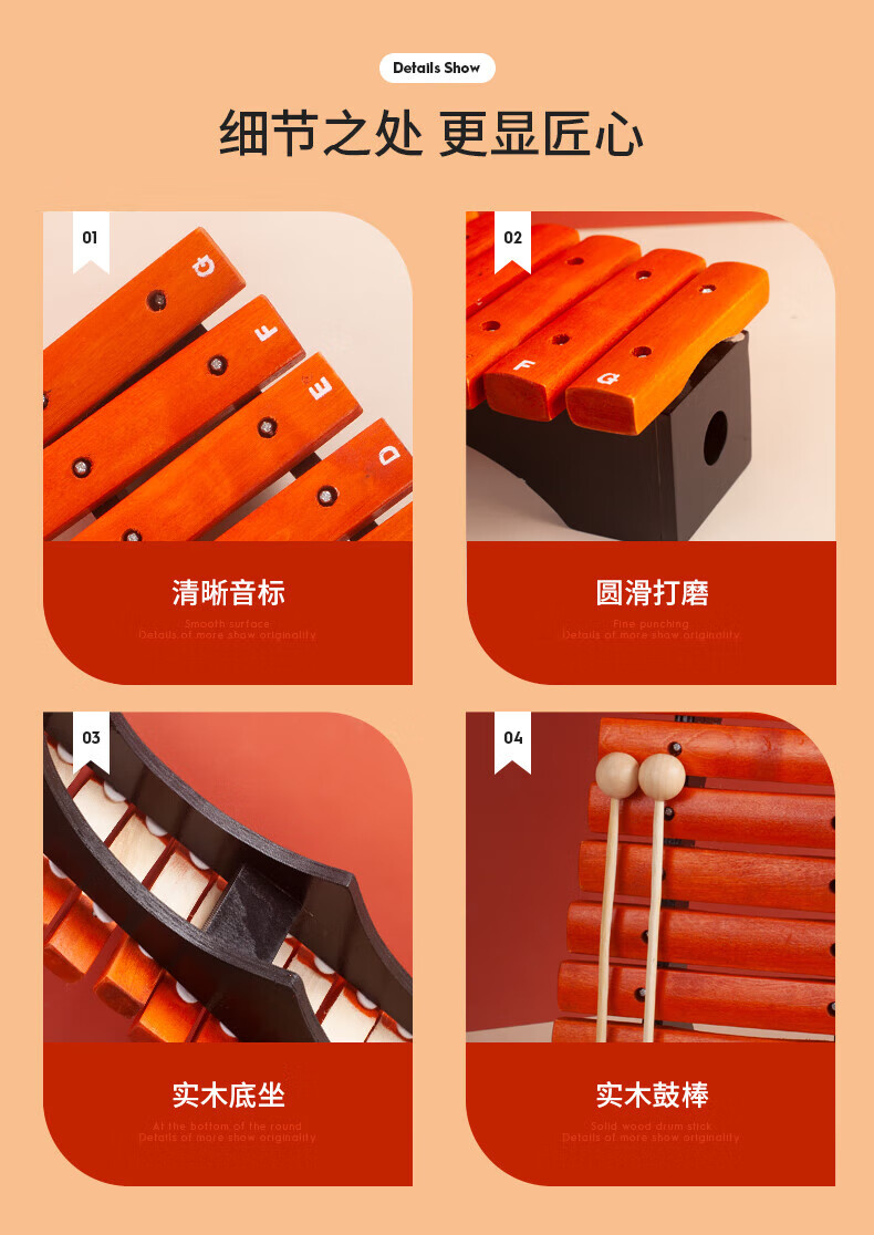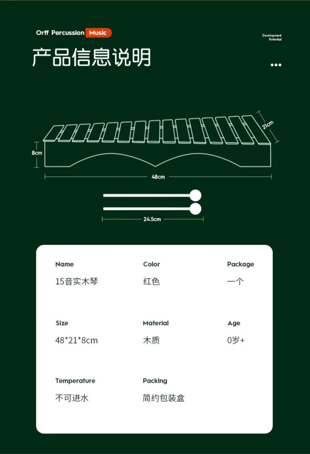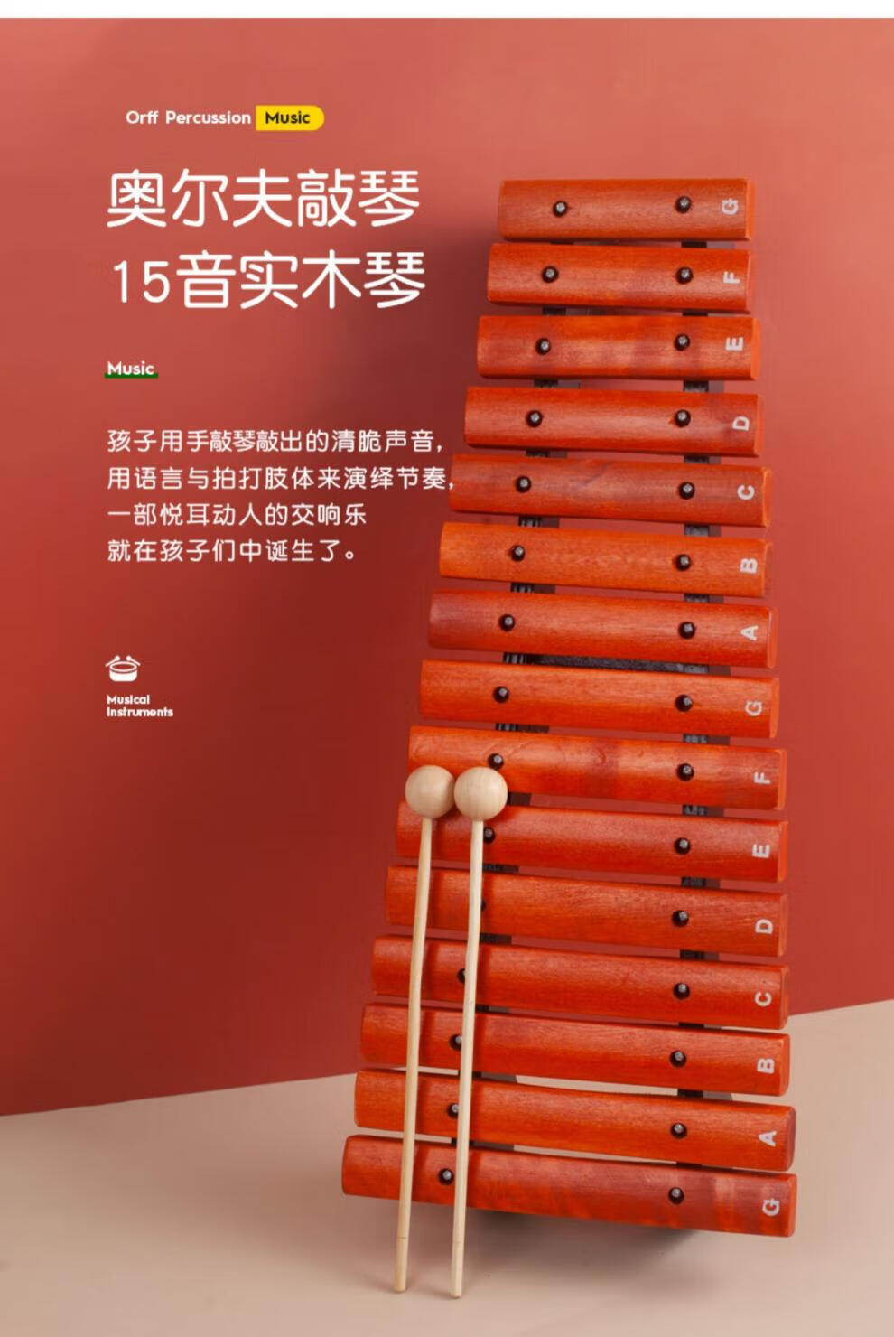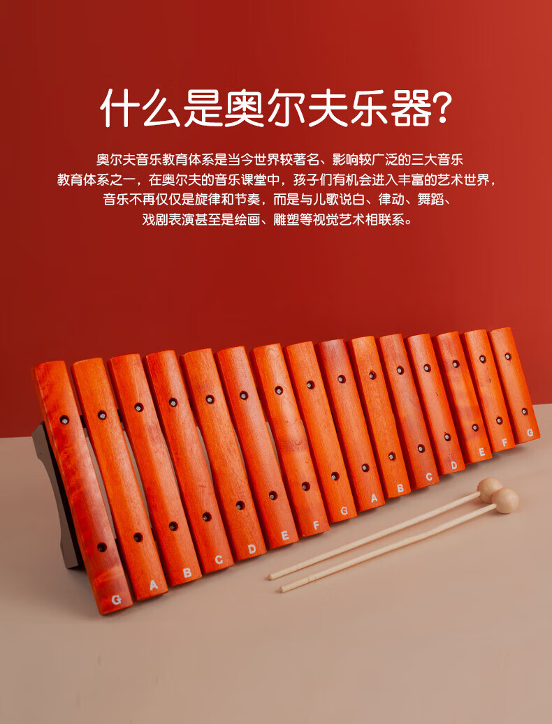 Helen Weir 15-tone red wooden xylophone Orff children's music percussion instrument kindergarten teaching aids 15-tone red wooden xylophone + sheet music