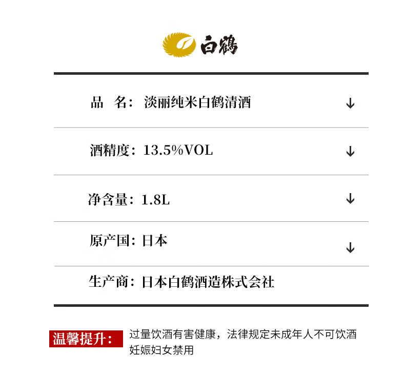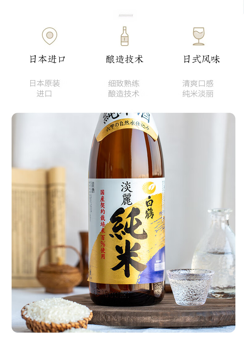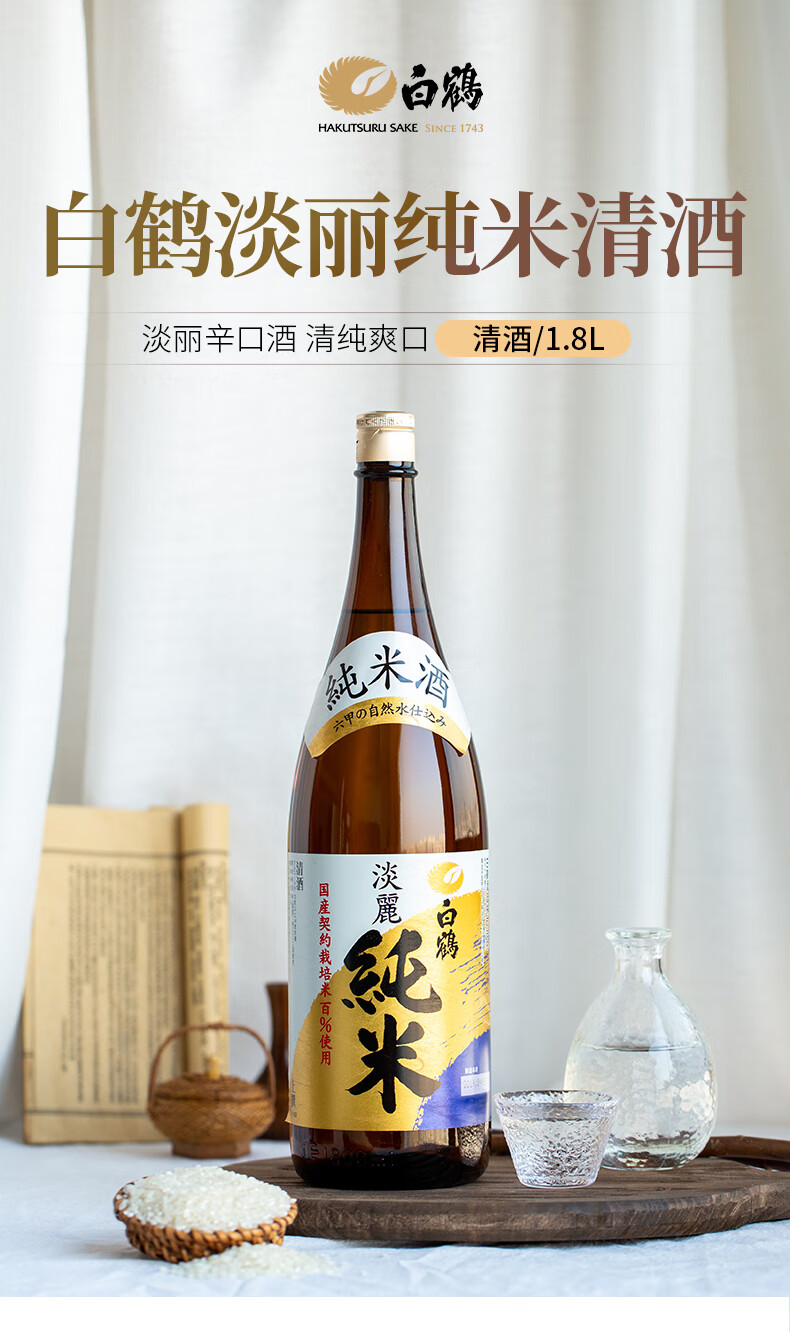 Hakutsuru Tanrei Junmai Sake Japanese sake imported low-alcohol fermented wine slightly intoxicating foreign wine 70% polished rice brewed liquor Hakutsuru Danrei Junmai Sake 1.8L box