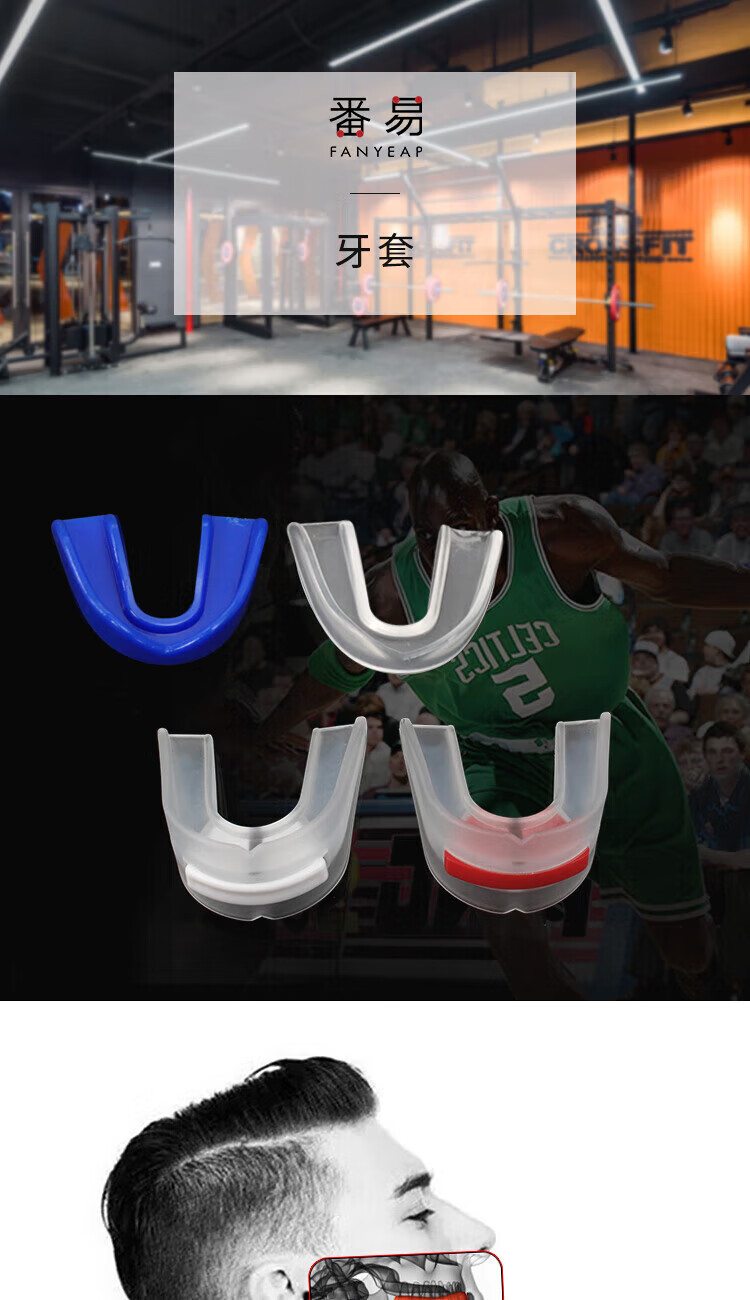 番易牙套A1p341-运动保护牙齿用具拳击比赛护齿套散打跆拳道用护 透明色单面护齿1个-均码
